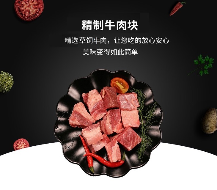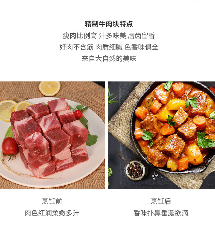 【恒都】精制牛肉块1000g 谷饲飘香牛肉排酸冷冻切块