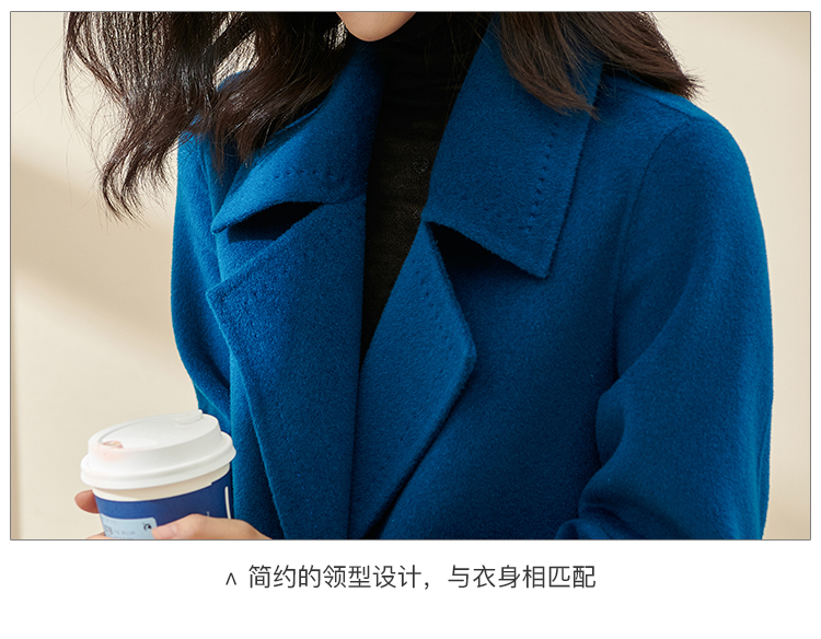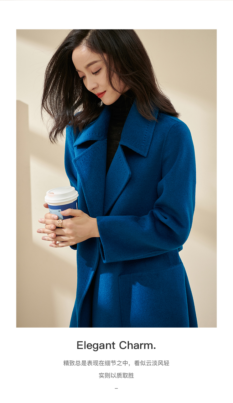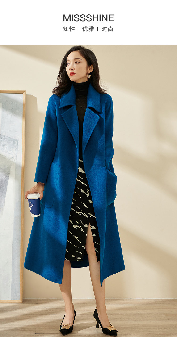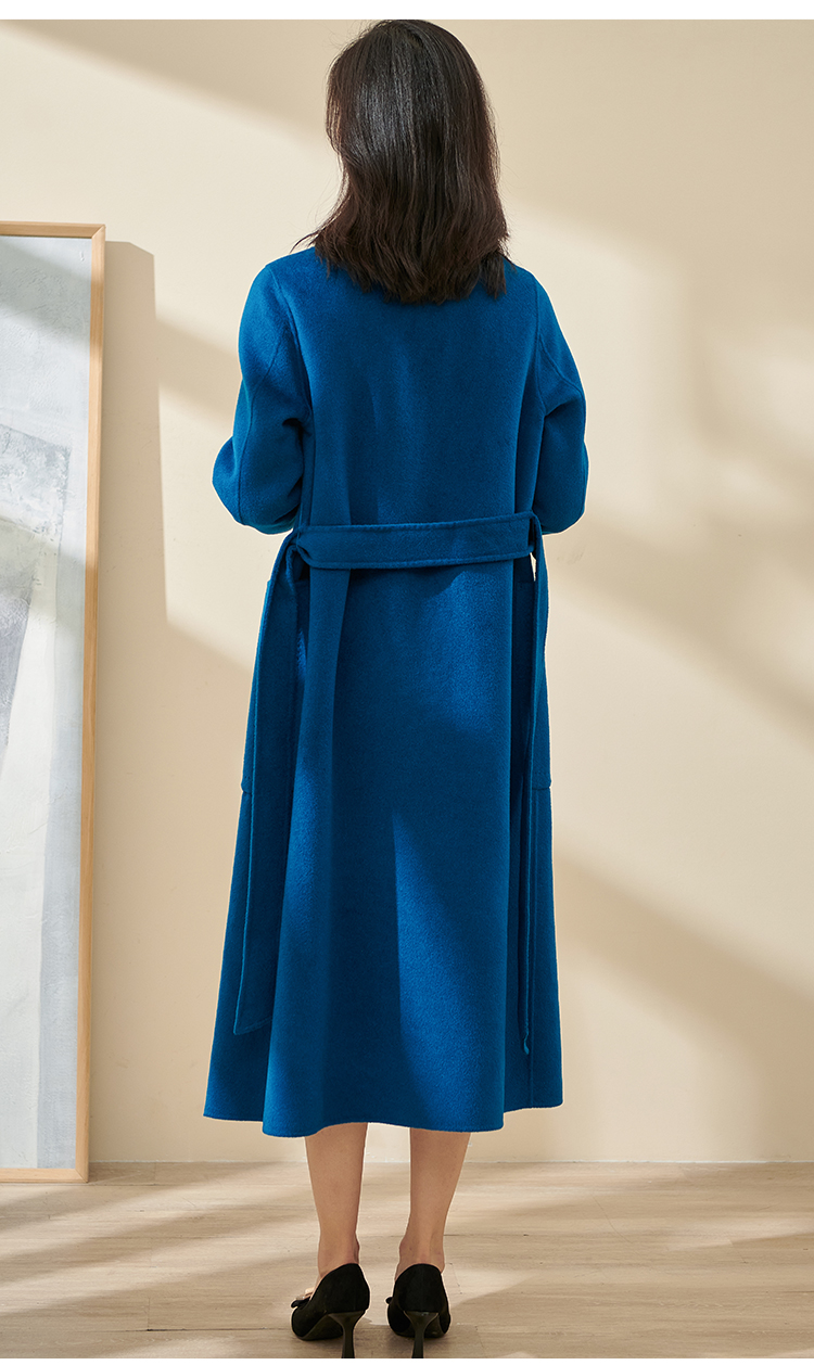 天丝羊毛双面呢 亲肤细软羊毛 克莱因蓝显白精致 减龄超好看气质长款收腰毛呢外套1550