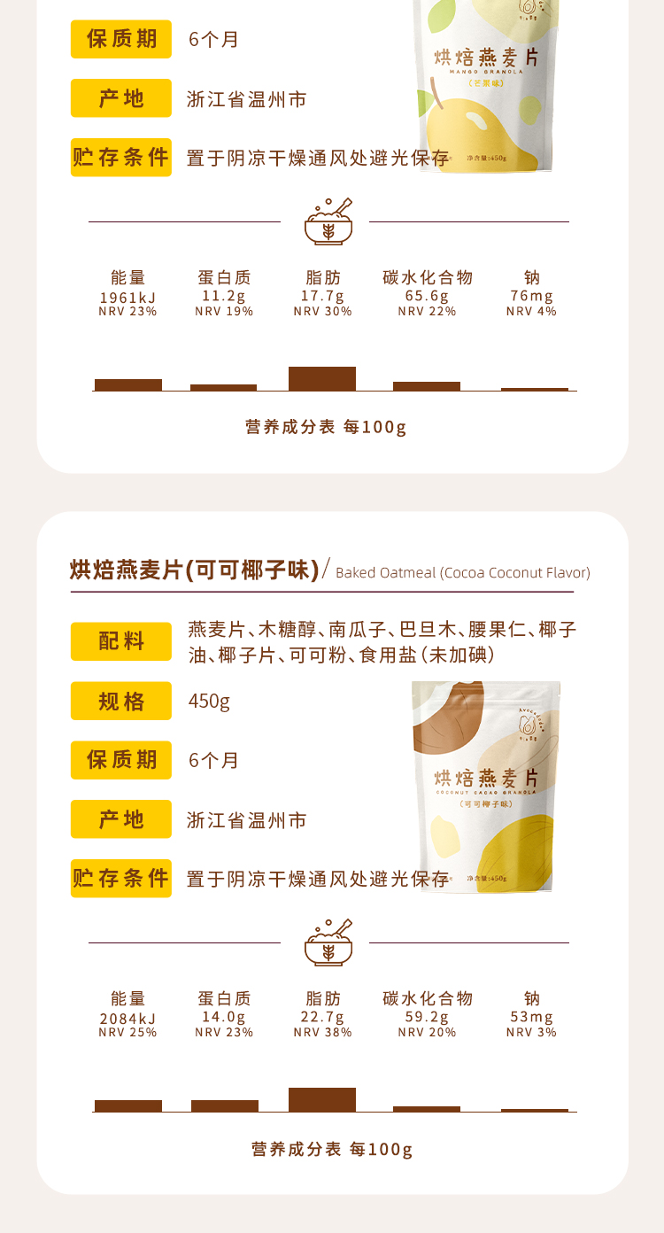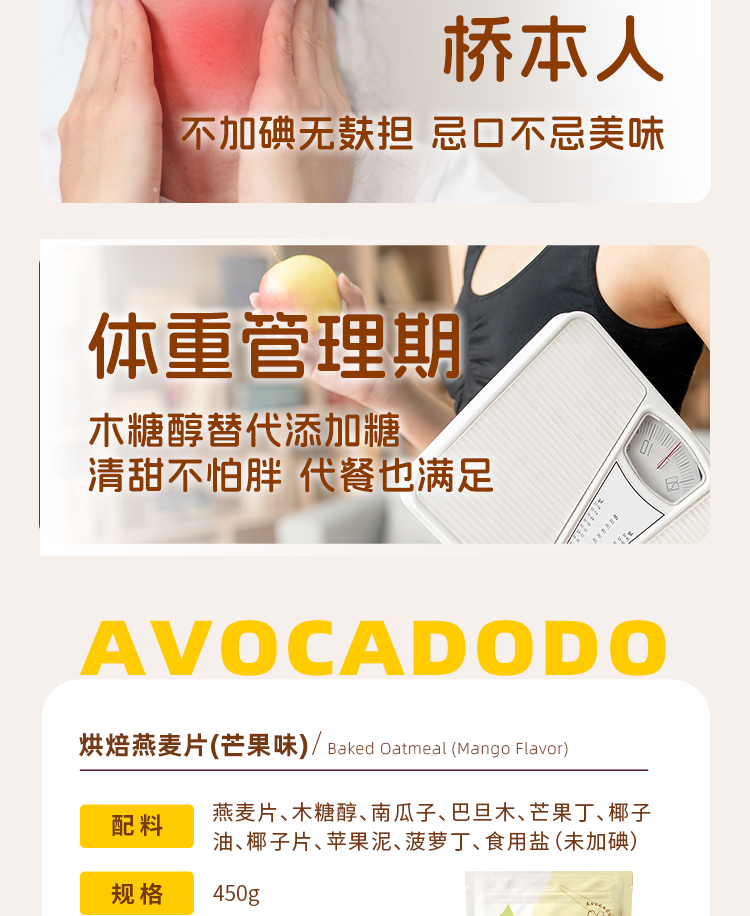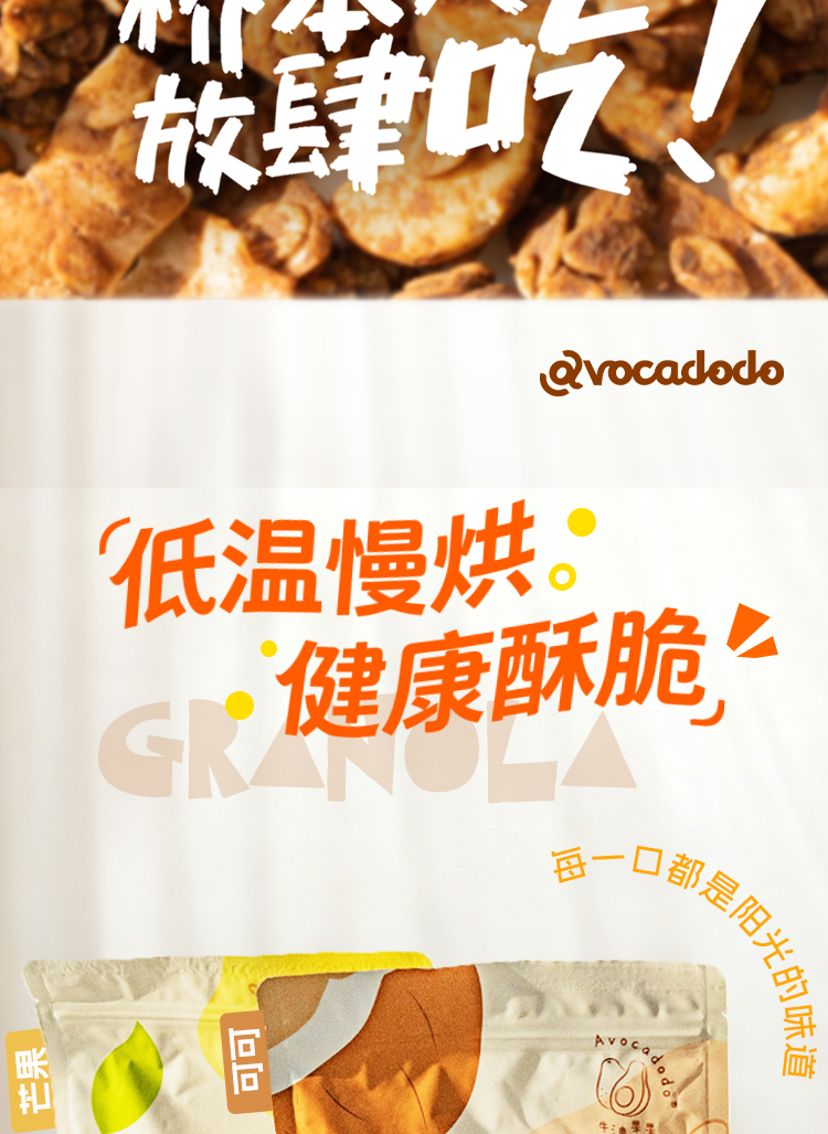 Avocadodo烘焙燕麦片格兰诺拉水果坚果干吃早餐冲饮麸质蛋奶无敏