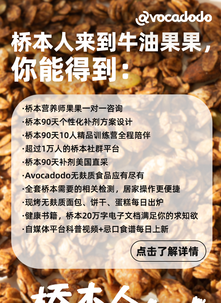 - 牛油果果健康管理有机食品旗舰店是为桥本甲状腺炎患者服务的小天地,大家可以在这里买到无麸质食品,忌口替代品,还有90天疗程需要的补剂。