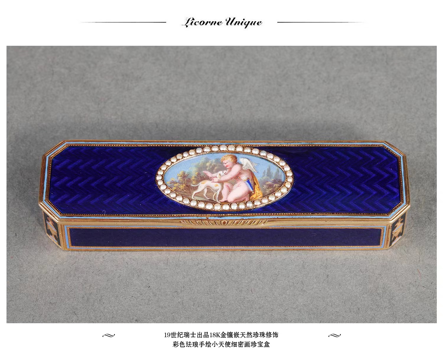 独角鹿西洋古董珍宝盒首饰盒18K金镶天然珍珠彩色珐琅手绘细密画