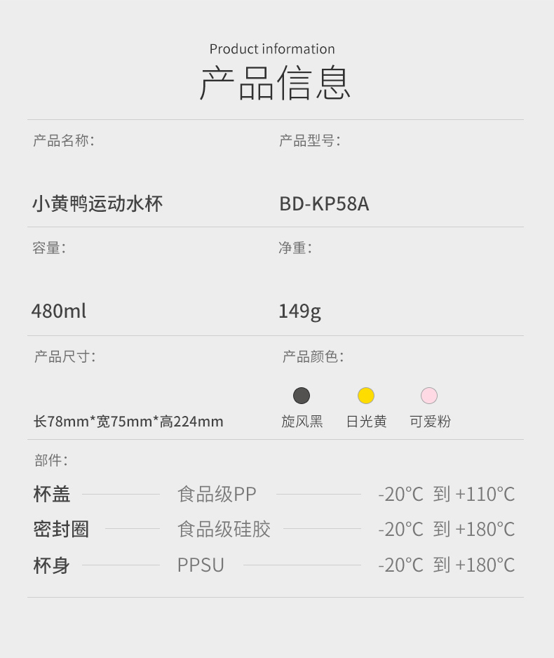 【专柜同款精品】BD-KP58A B.Duck运动水杯480ml(直饮盖)
