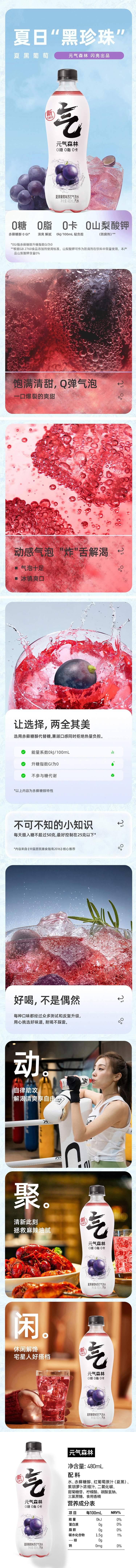 元气森林 苏打气泡水饮料汽水无糖480ml*15瓶 夏黑葡萄味(现金价)