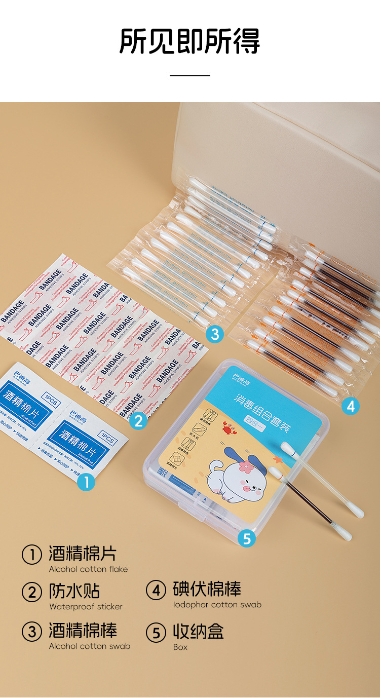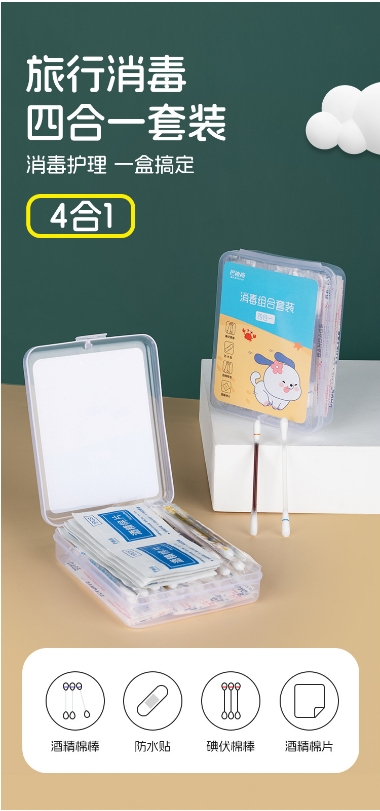 旅行消毒应急四件套 家用户外应急盒碘伏棉签75%酒精棉片防水贴3.227