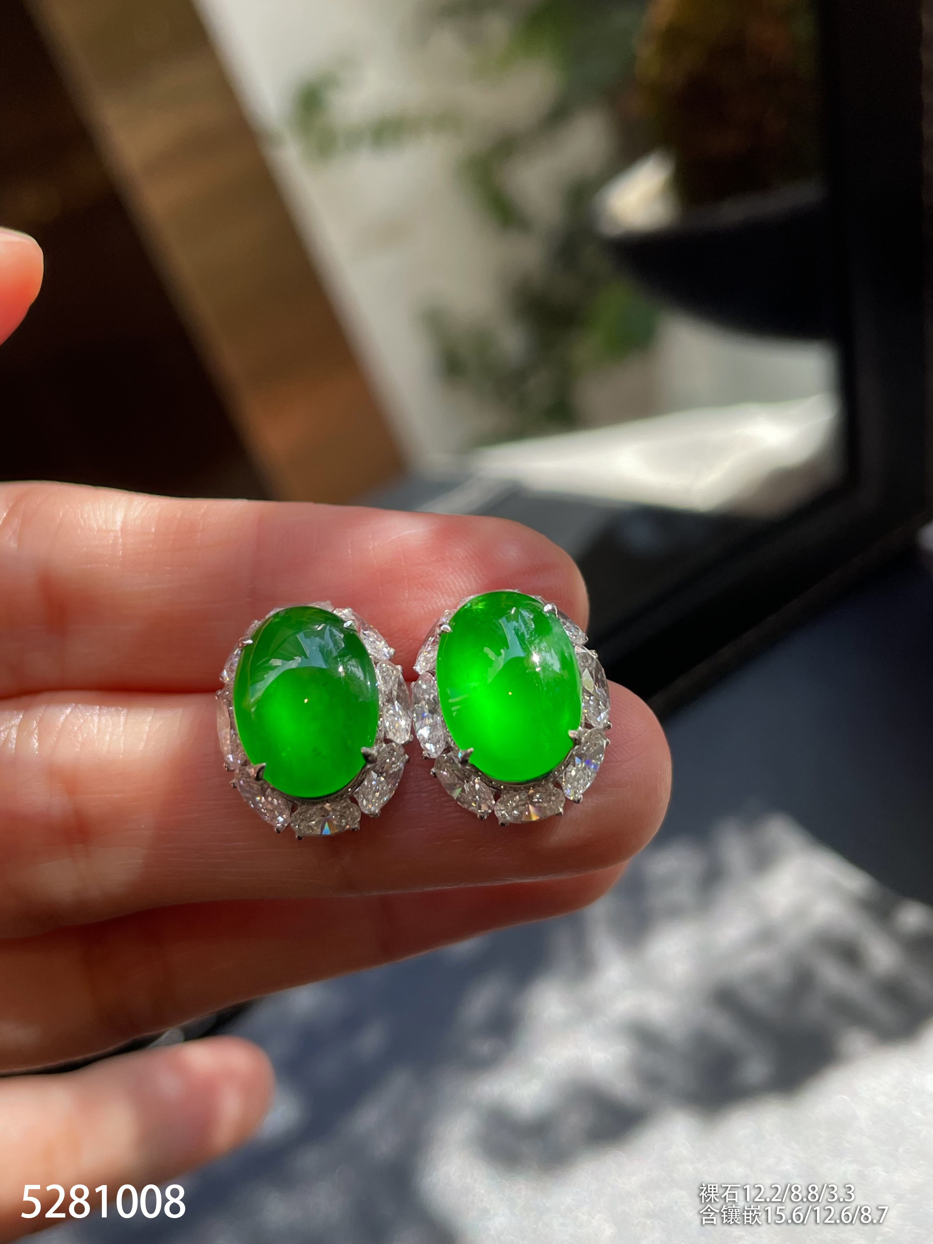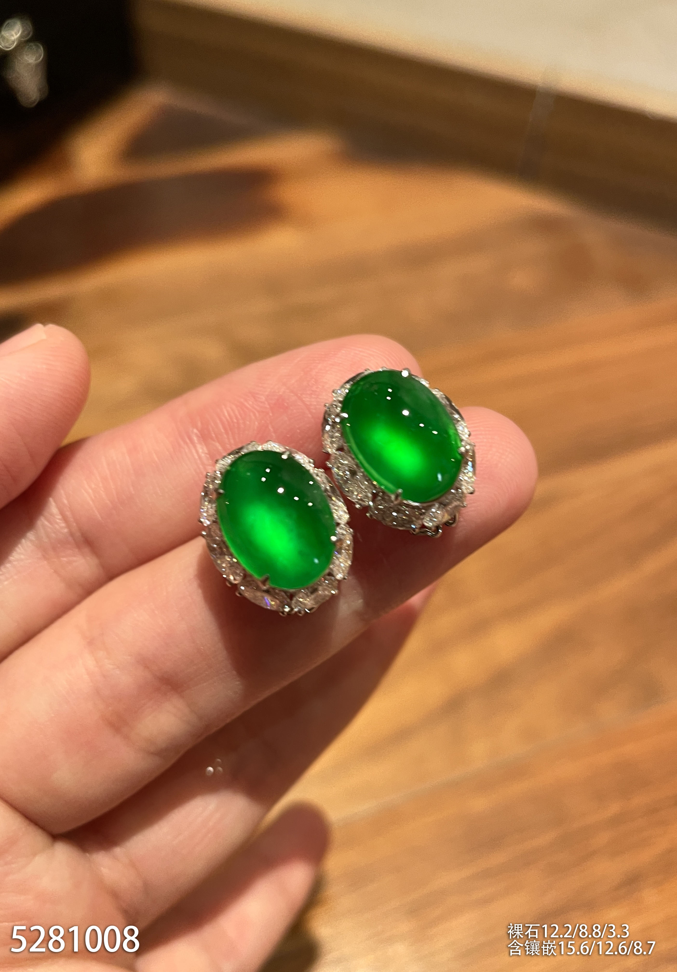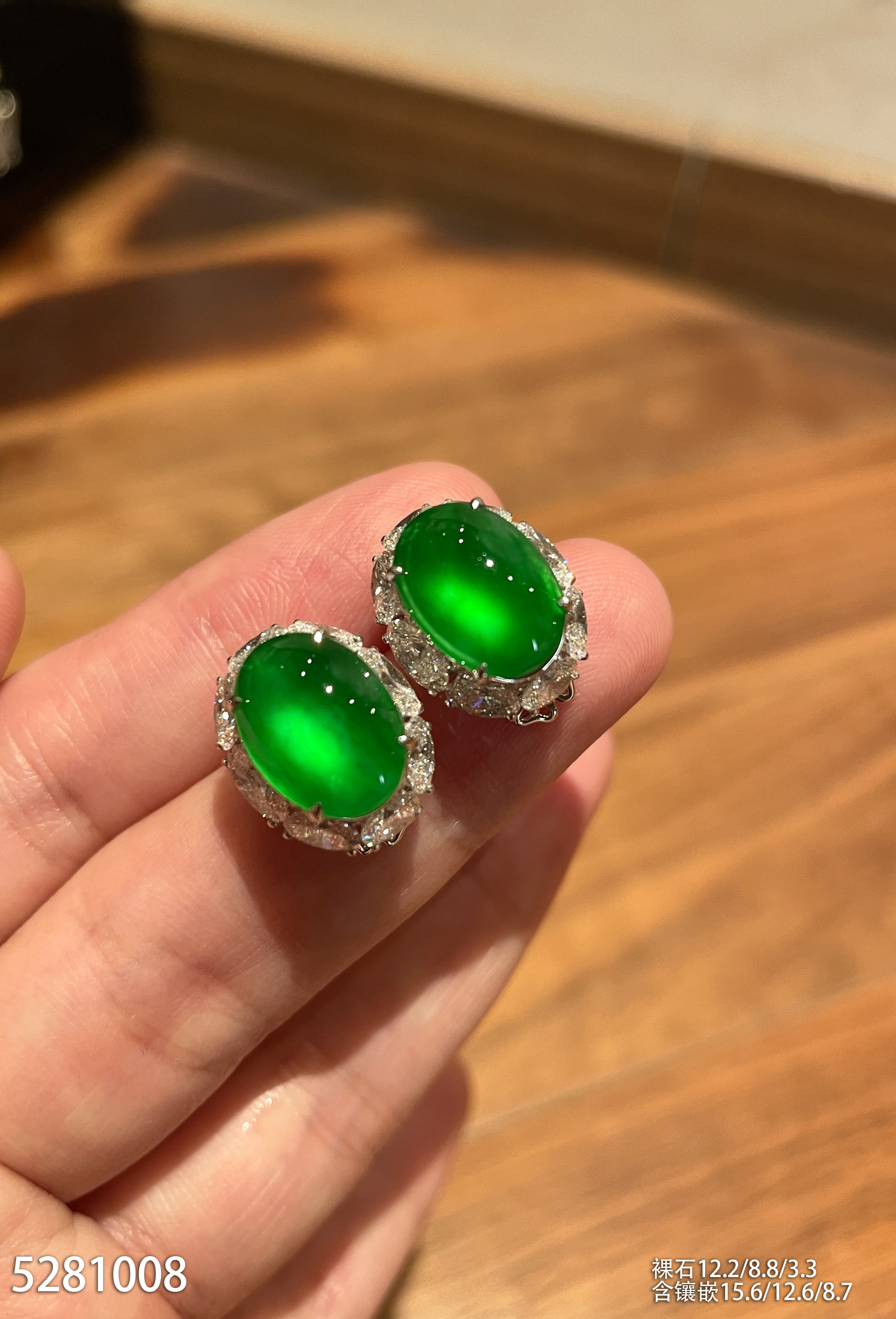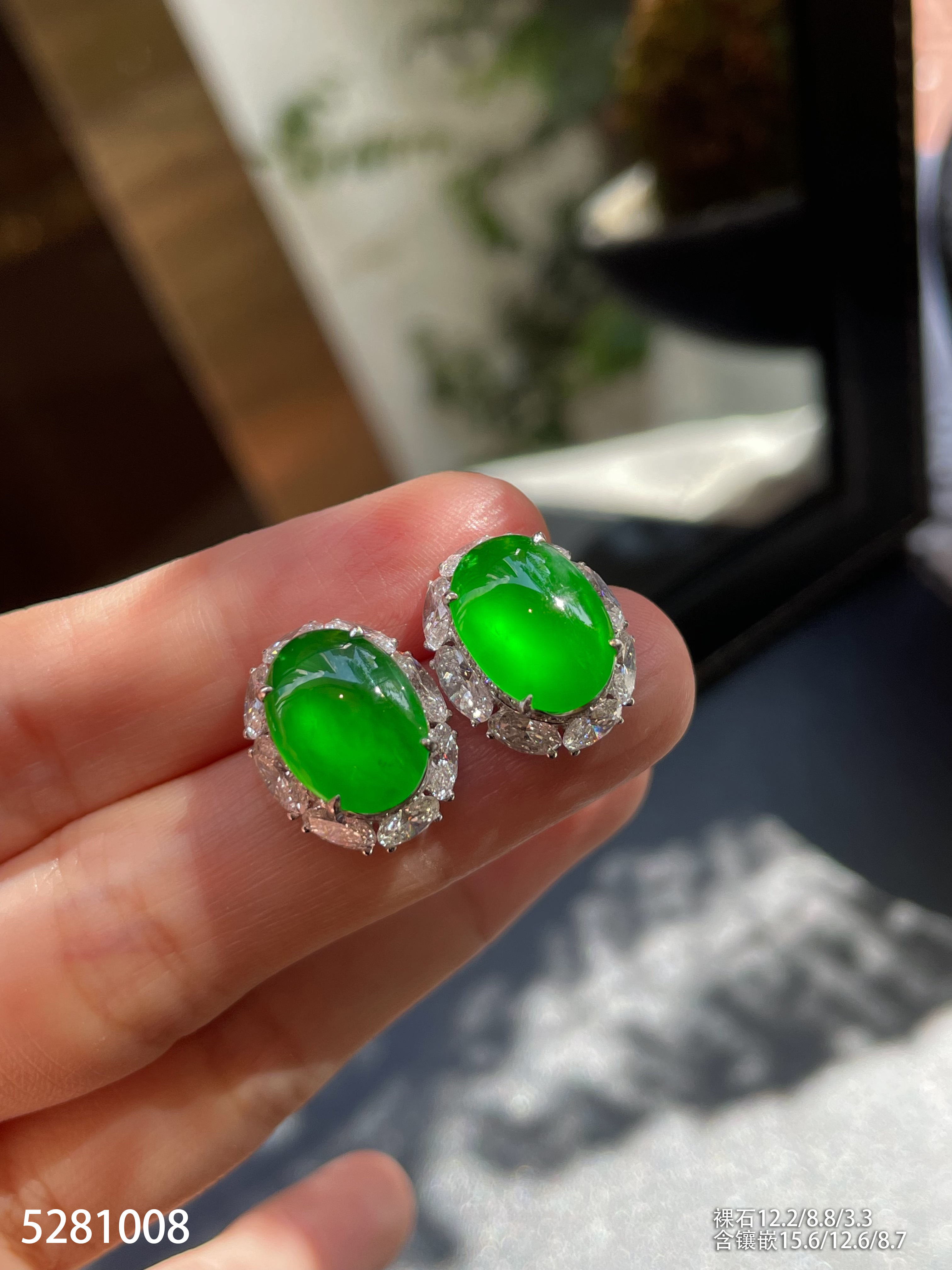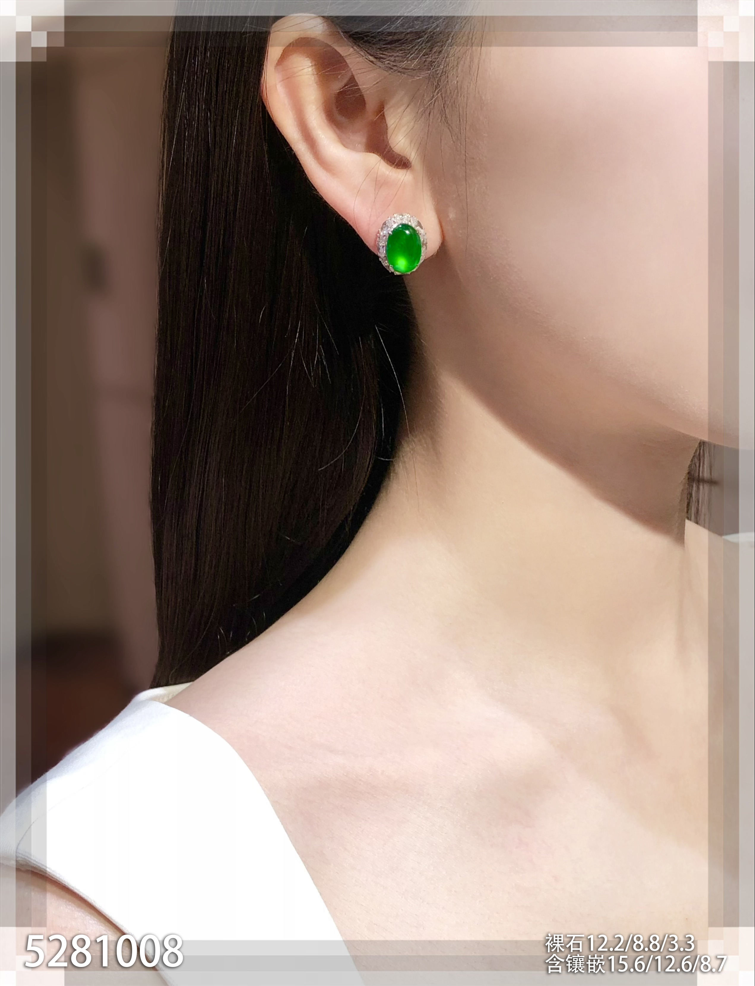 玻璃种黄阳蛋面耳钉【5281008】具体价格微信咨询