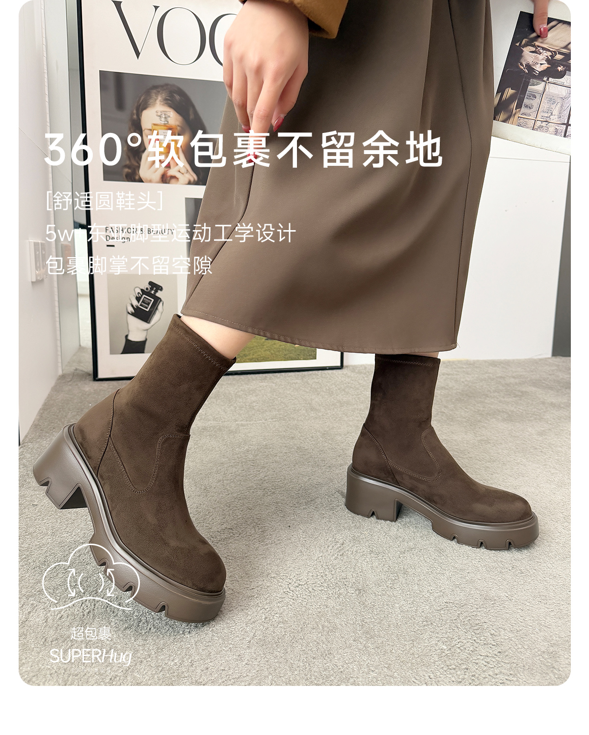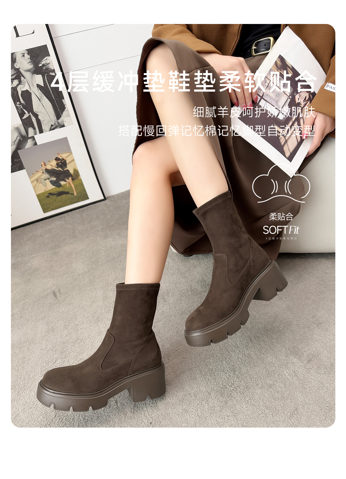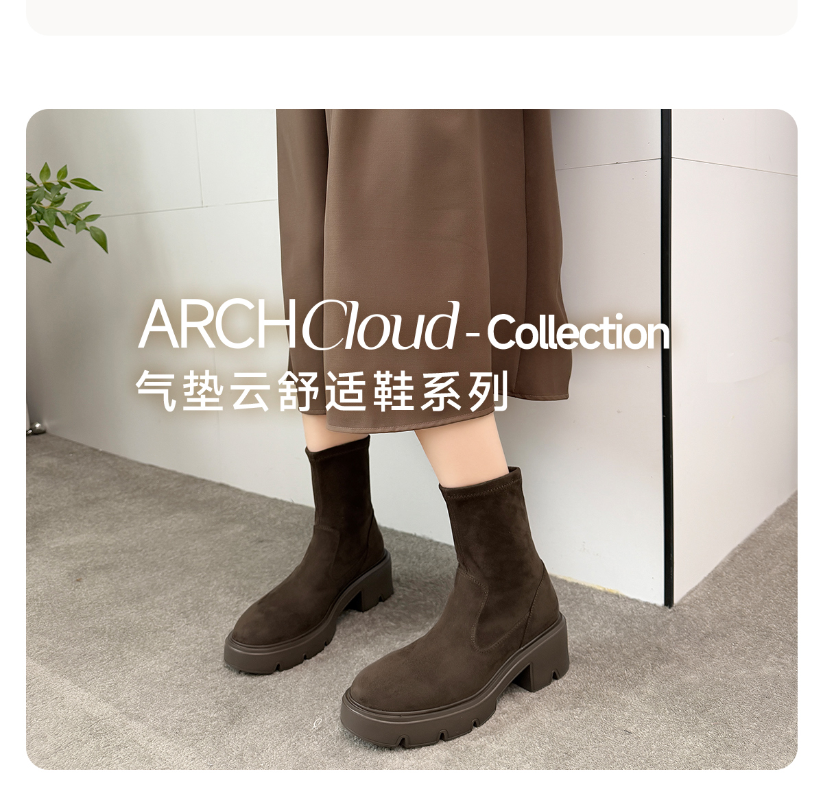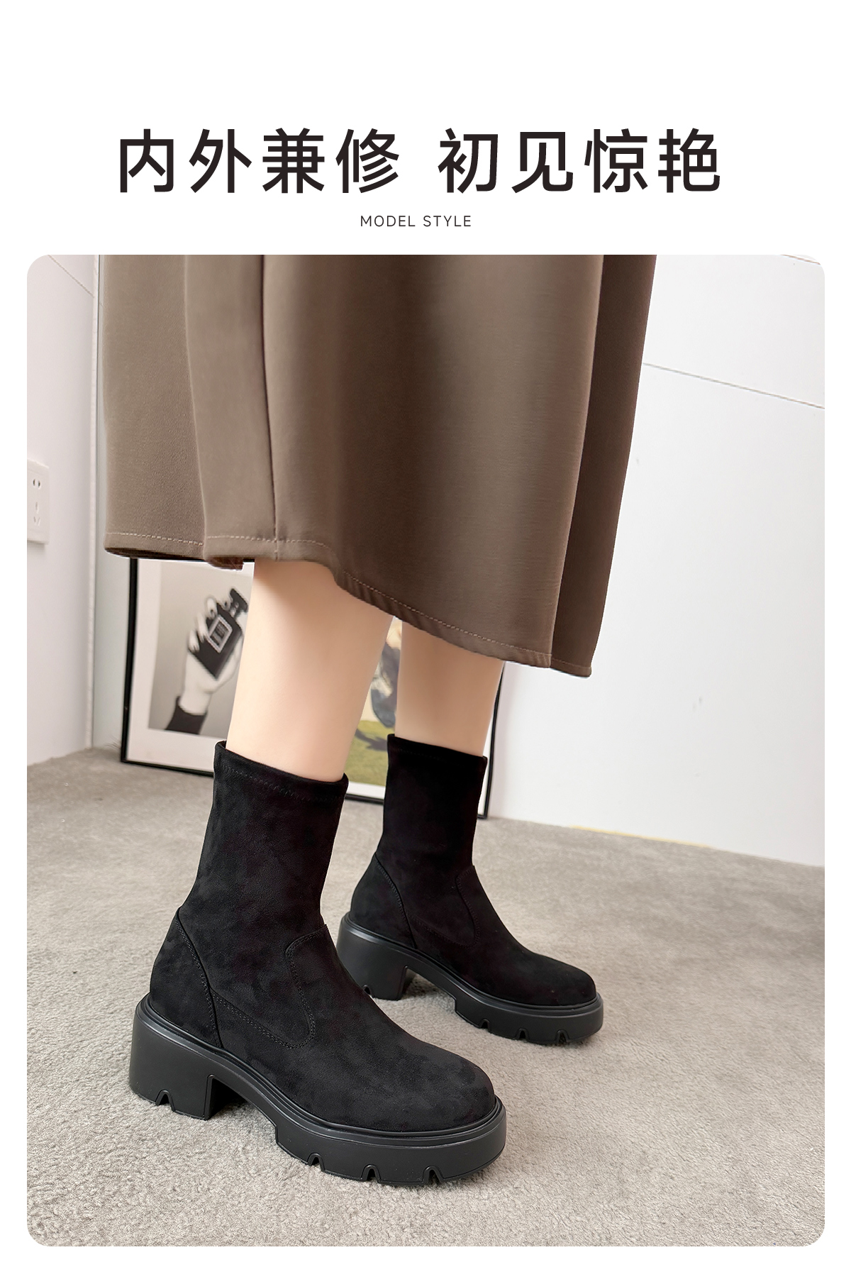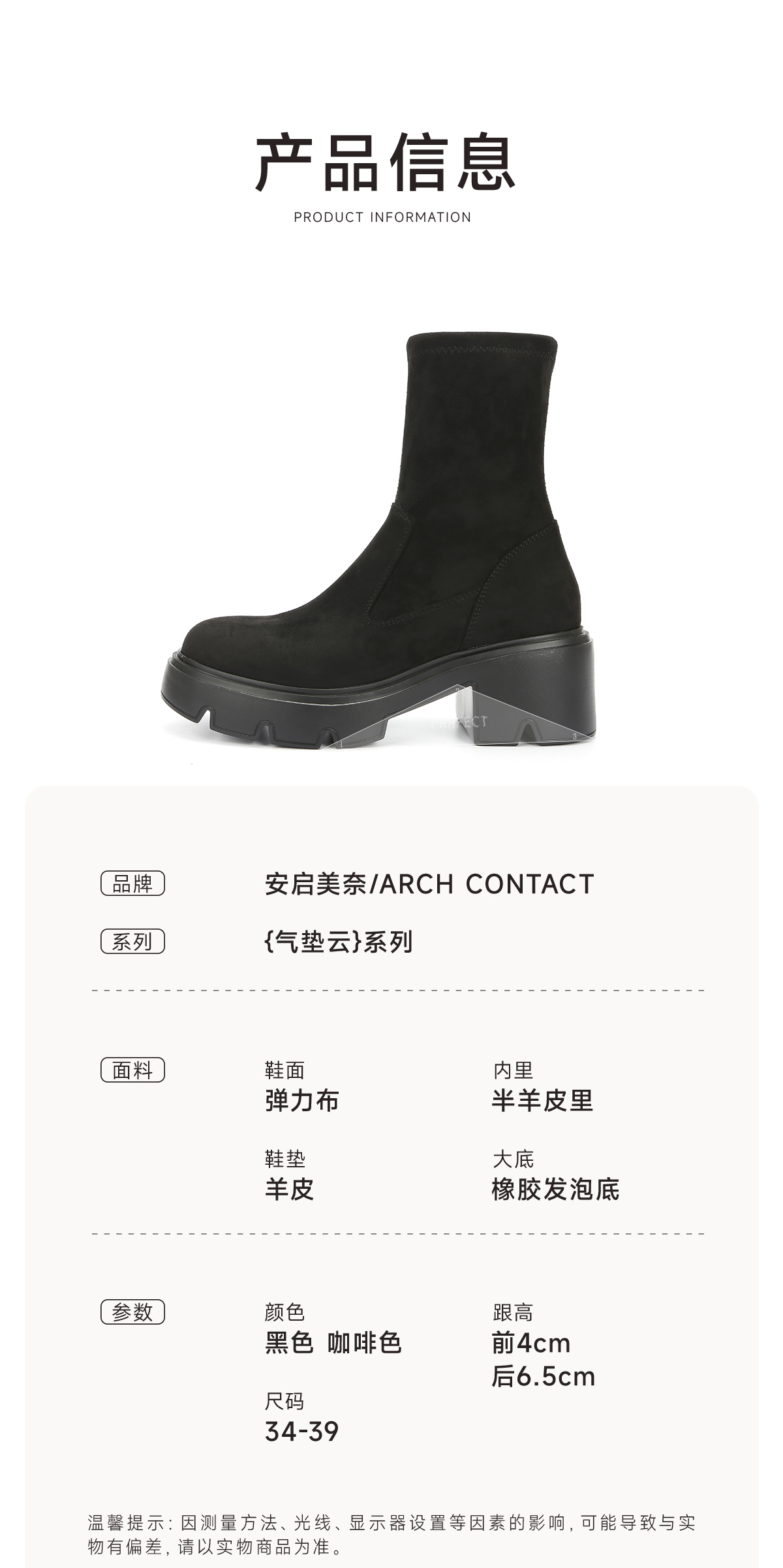 ARCHCONTACT安启美奈圆头厚底百搭瘦瘦靴53074
