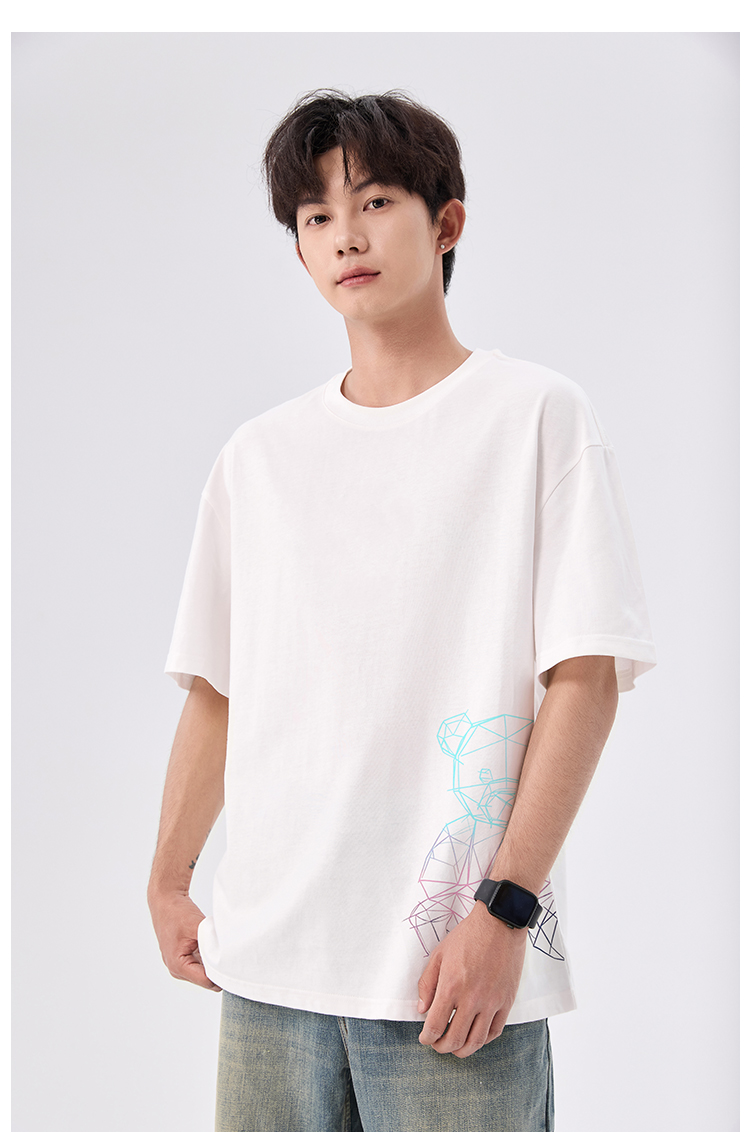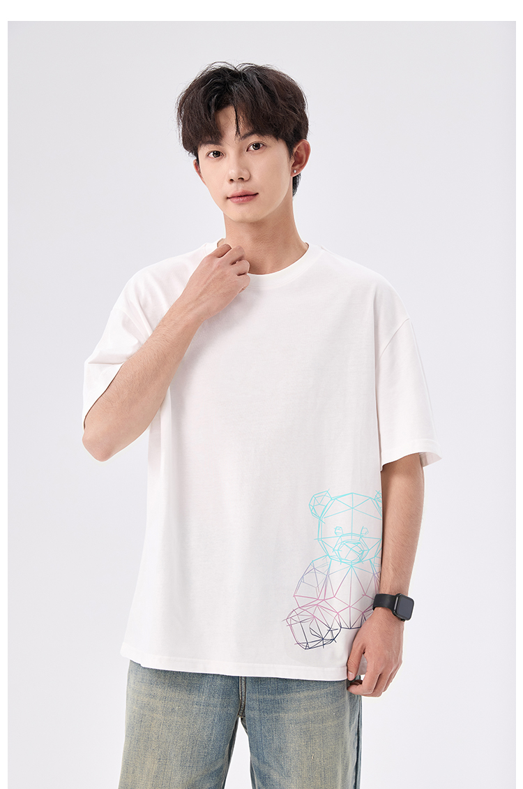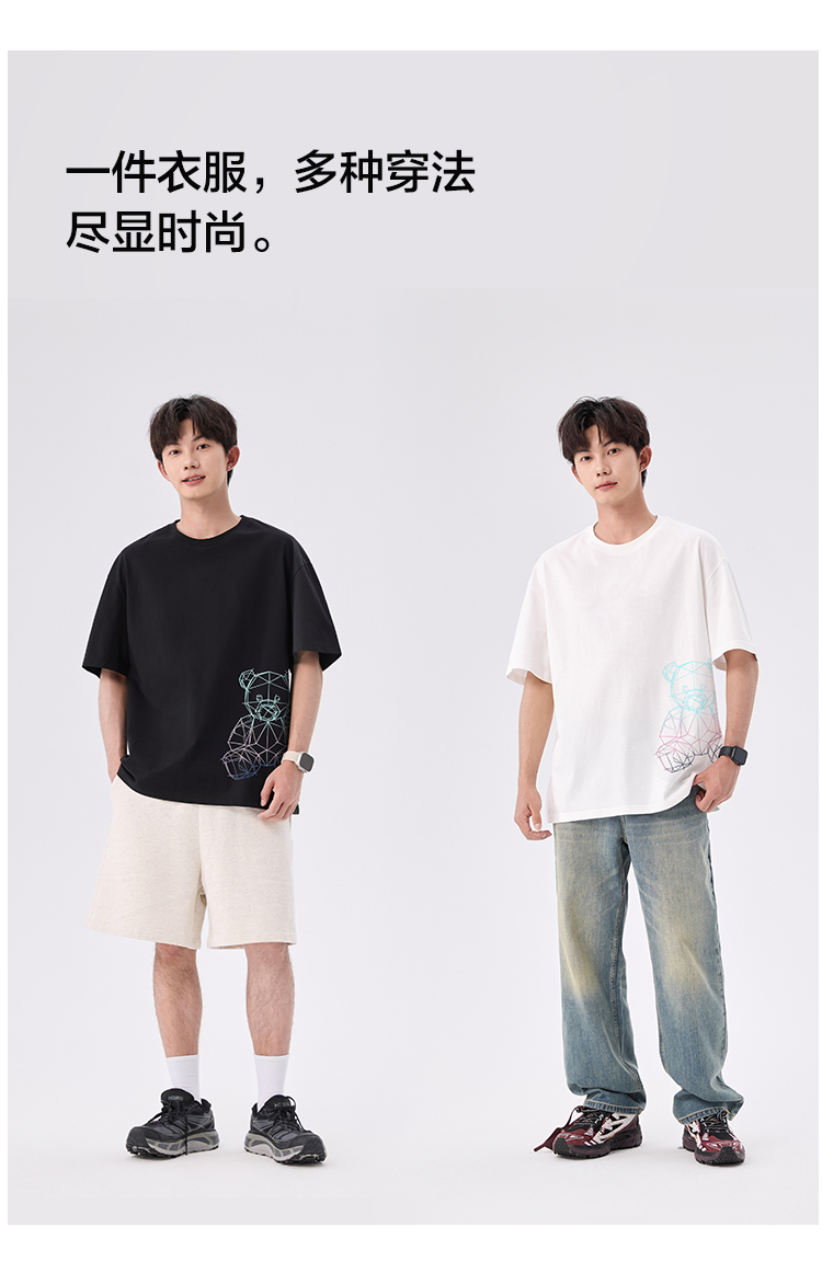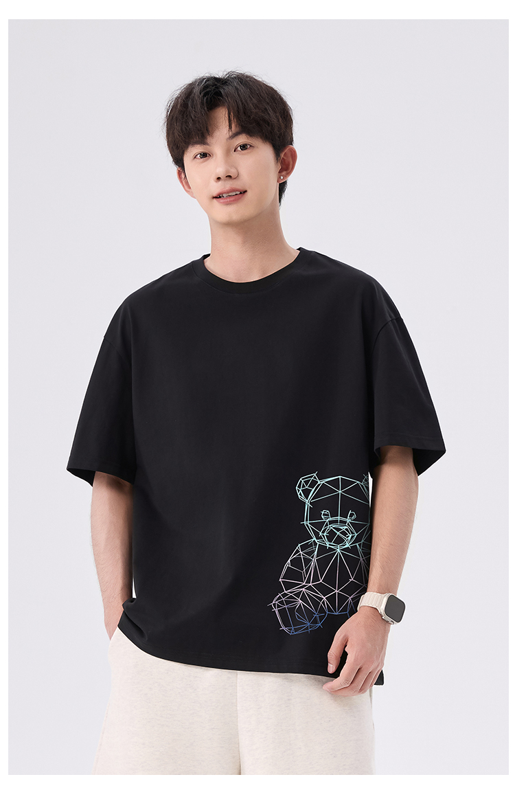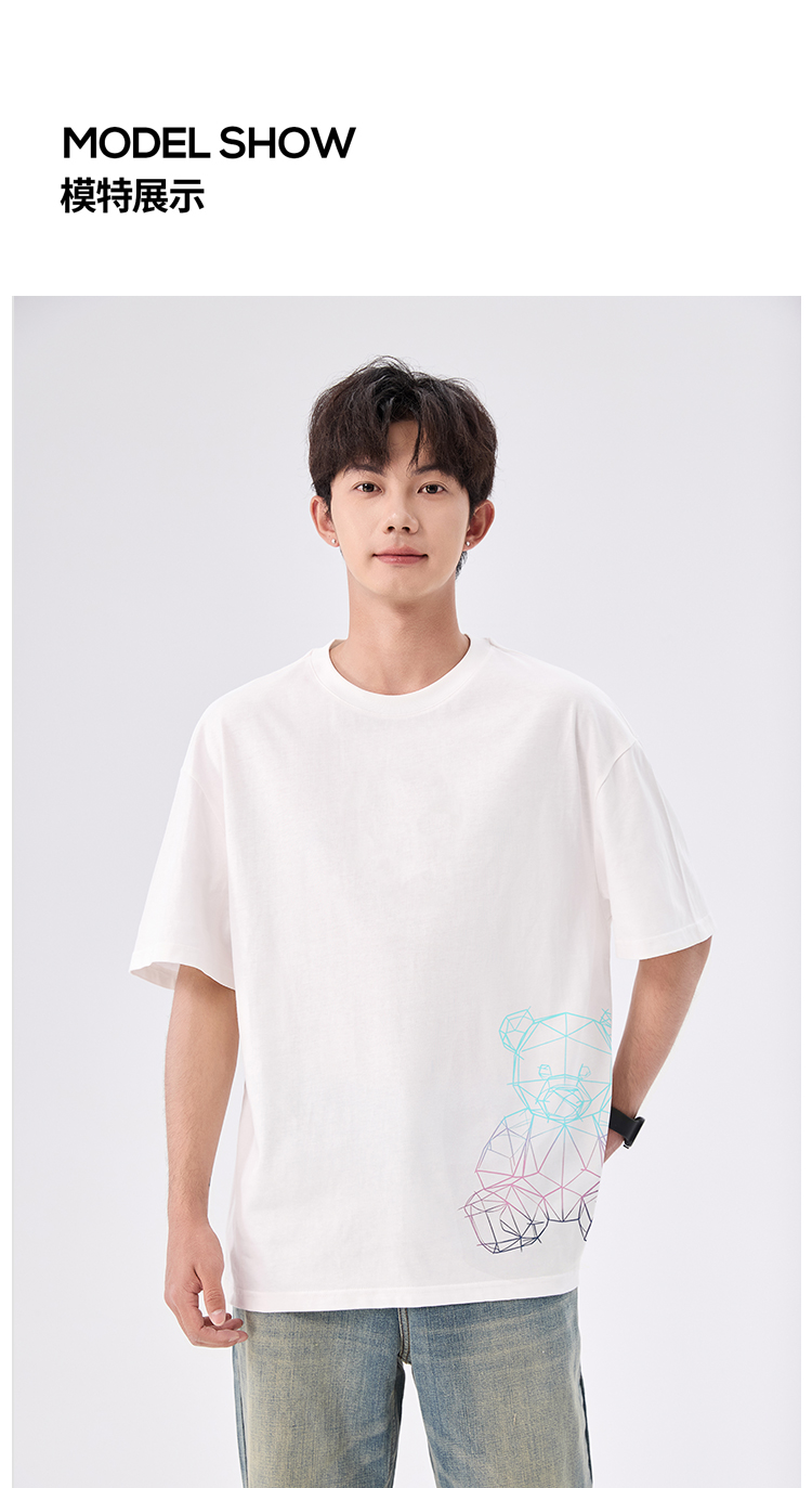 gxgjeans男装 【100%棉重磅】宽松百搭男士短袖25夏款小熊印花T恤男K&C