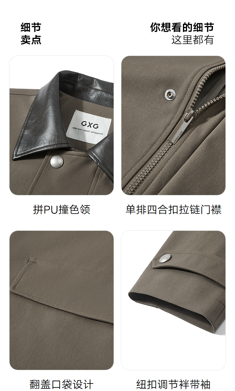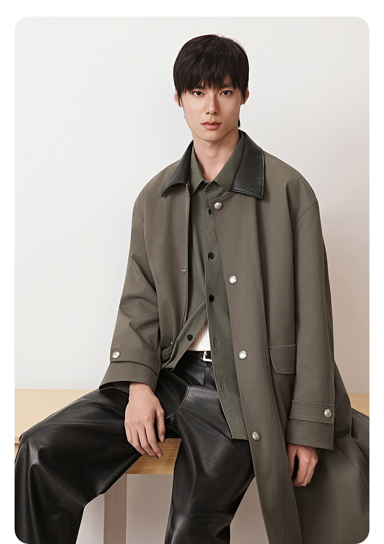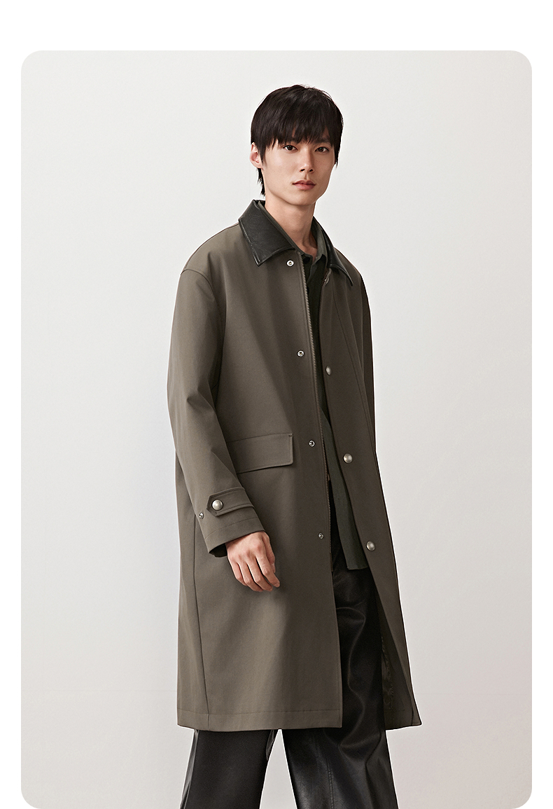 GXG男装 挺括定染精纺经典翻领单排扣廓形长款风衣 2025秋季热卖