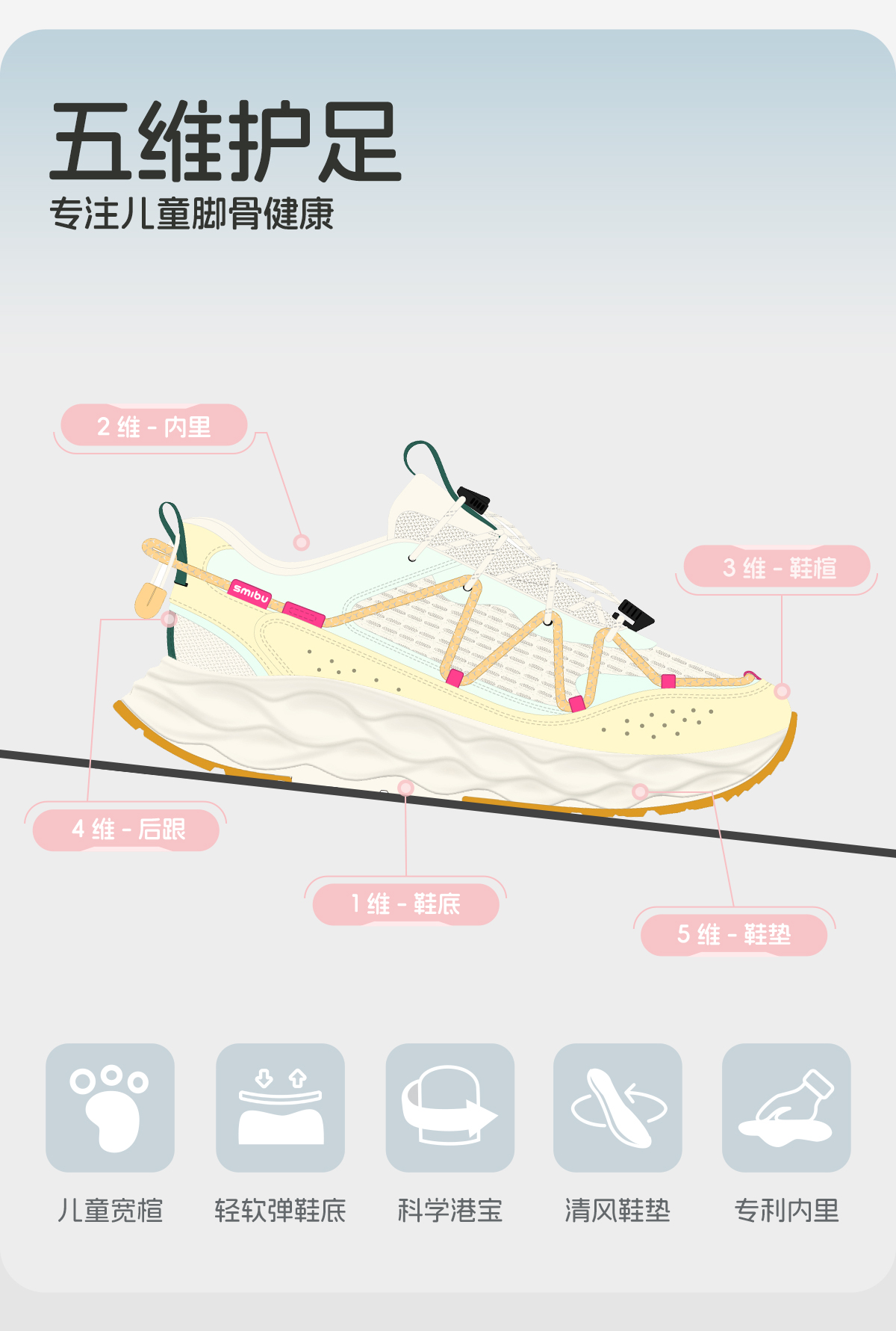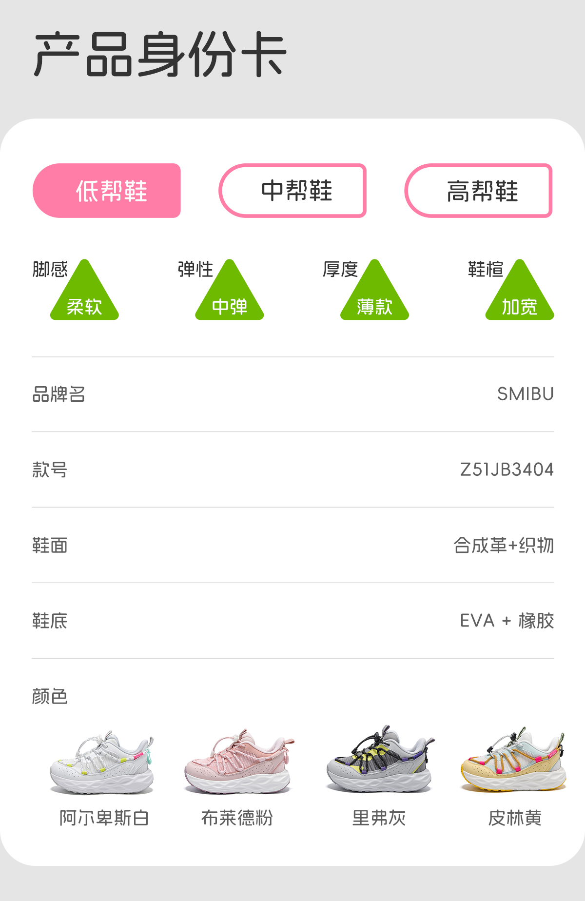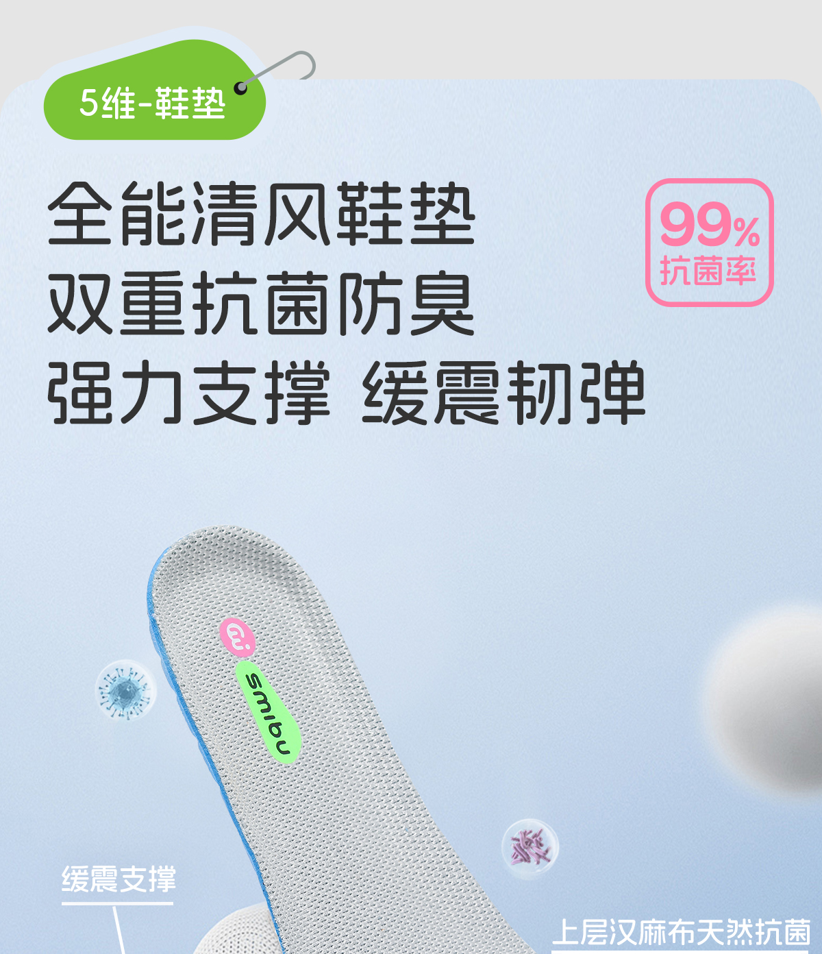 SMIBU男女中大童春秋0压感远行休闲板鞋缓震减压跑步运动鞋Z51JB3404【2603好鞋子】
