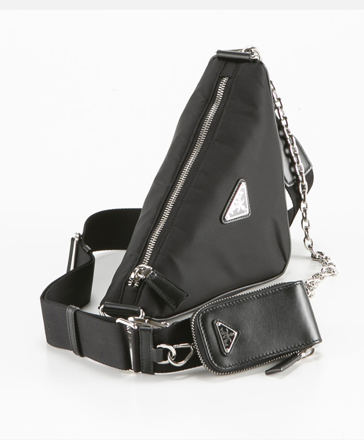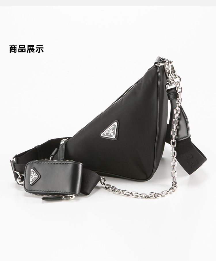 【二】PRADA 普拉达 女士皮革珐琅金属三角形徽标三角子母单肩包 黑色 1BH190 RDLN F0002 N2M
