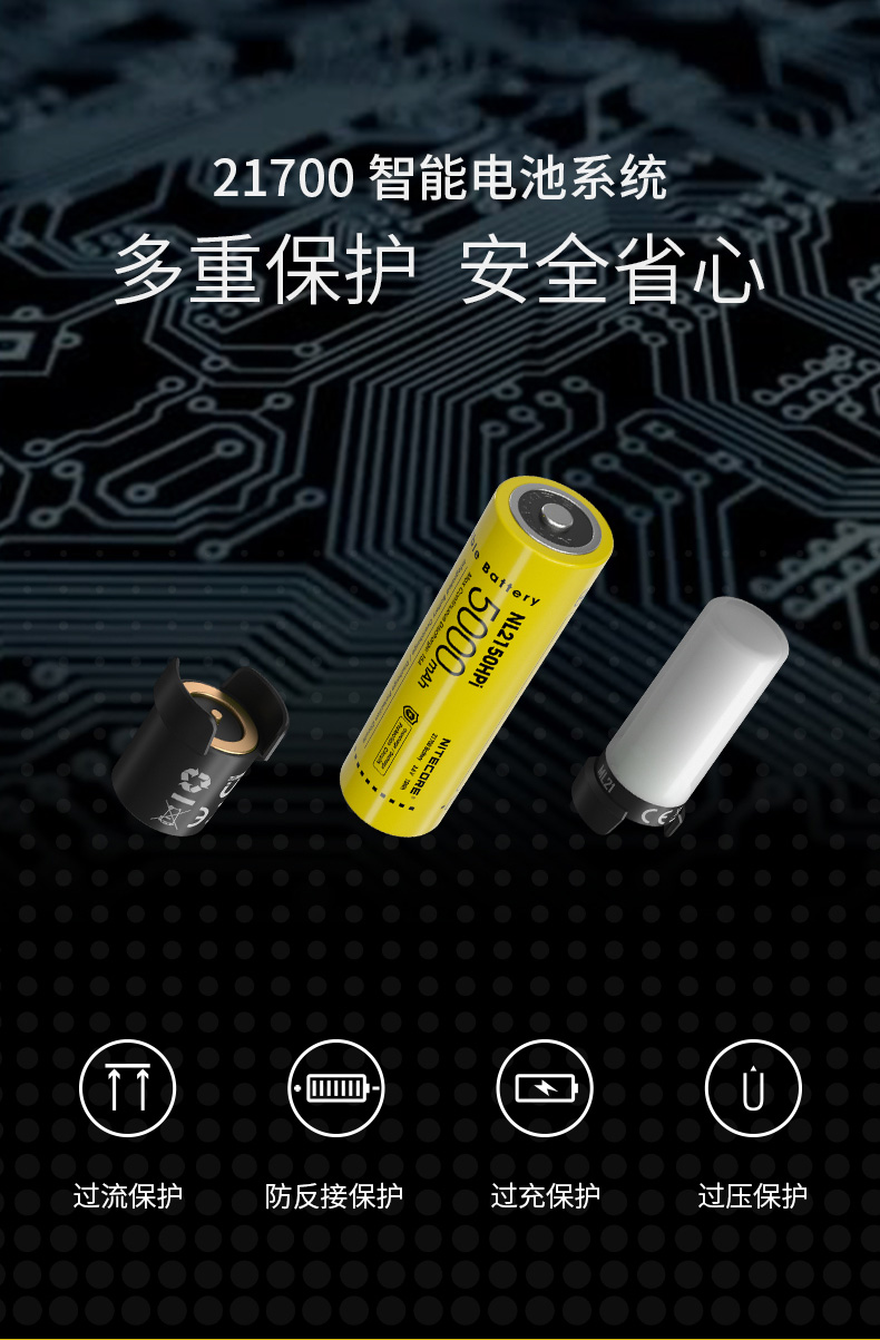 动爱好者的必备照明工具。NITECORE 奈特科尔智能锂电池充电器和电池品类由平安保险全球承保,在