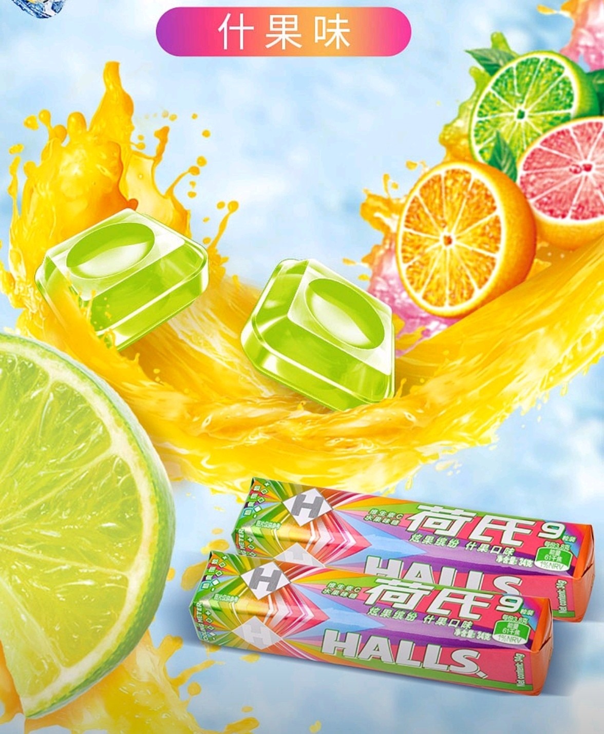 - **规格**:34g装、约20颗、小包装、便携装- **口味**:什果味、水果混合、多口味、薄荷味- **用途**:日常清新、口气清新、去异味、提神- **场景词**:办公室、宿舍、车里、约会前、饭后- 捌玖邻超市 (微信公众号认证)
