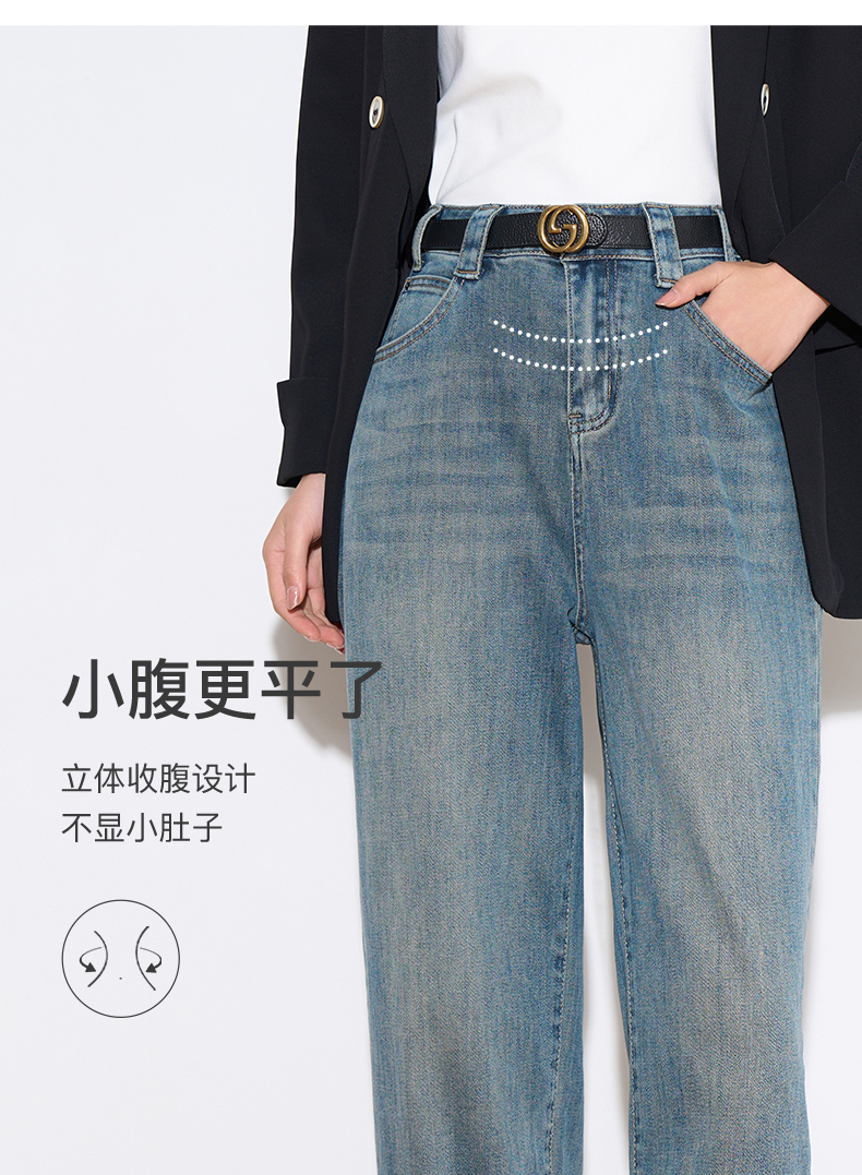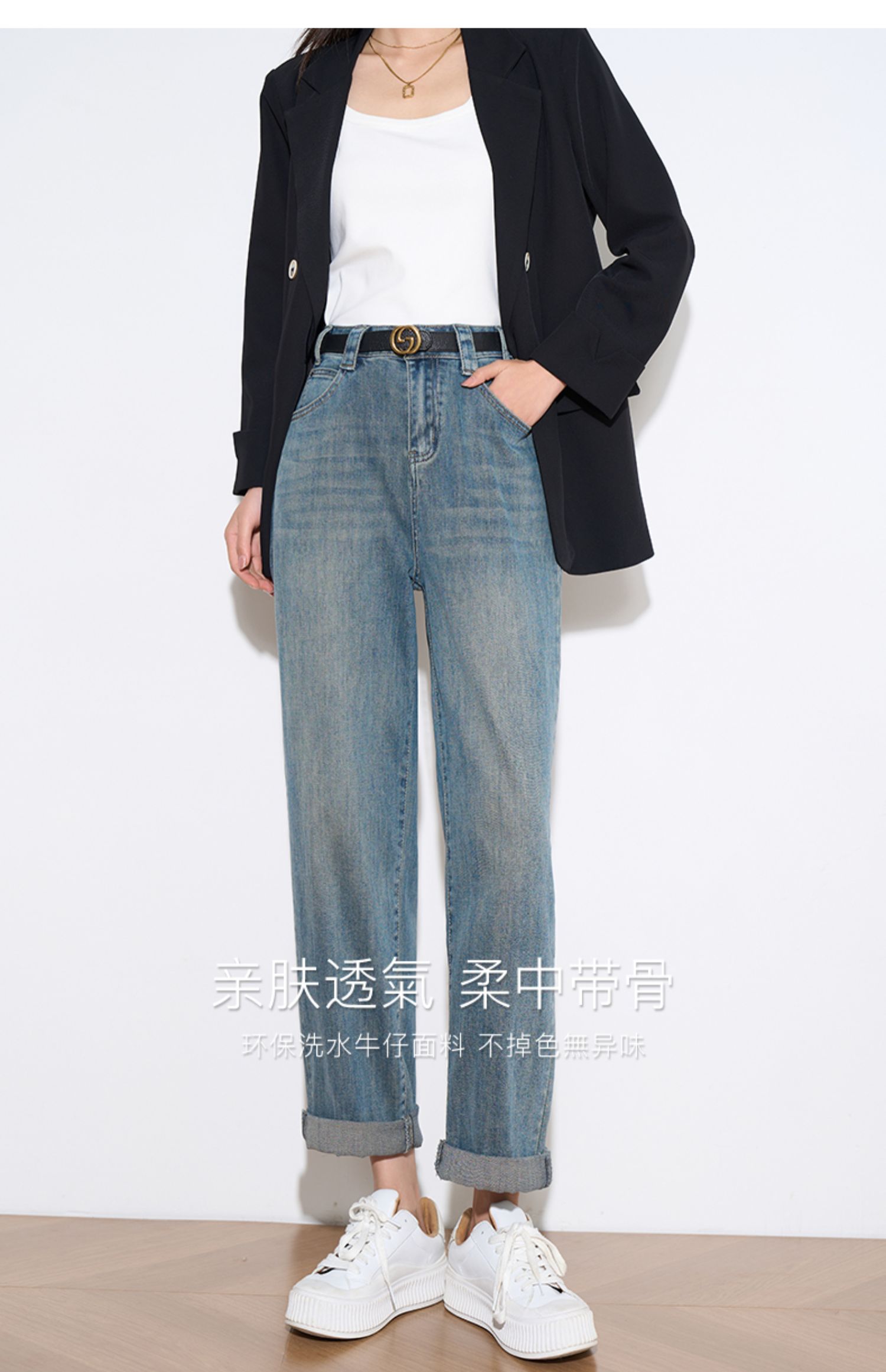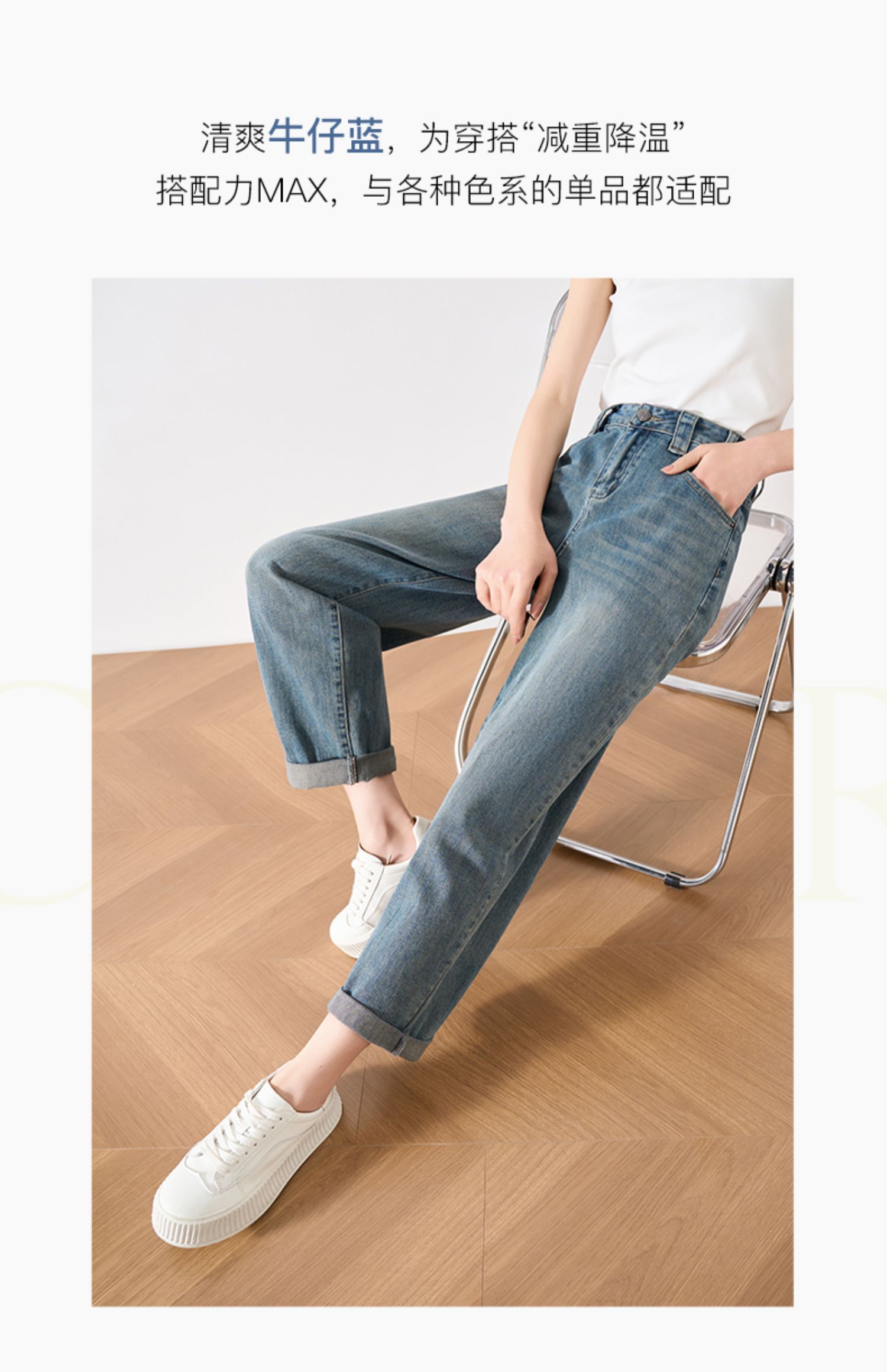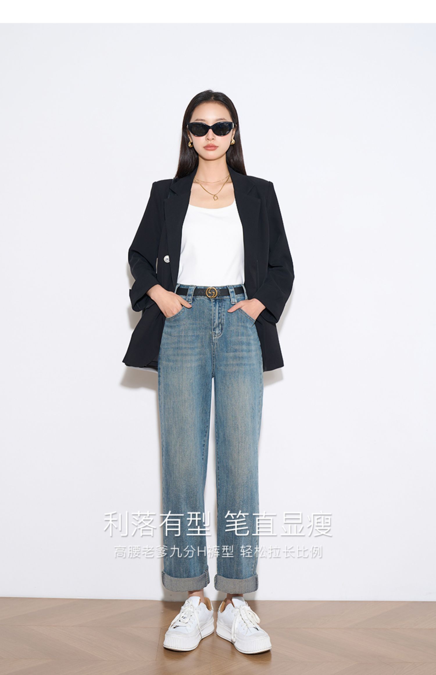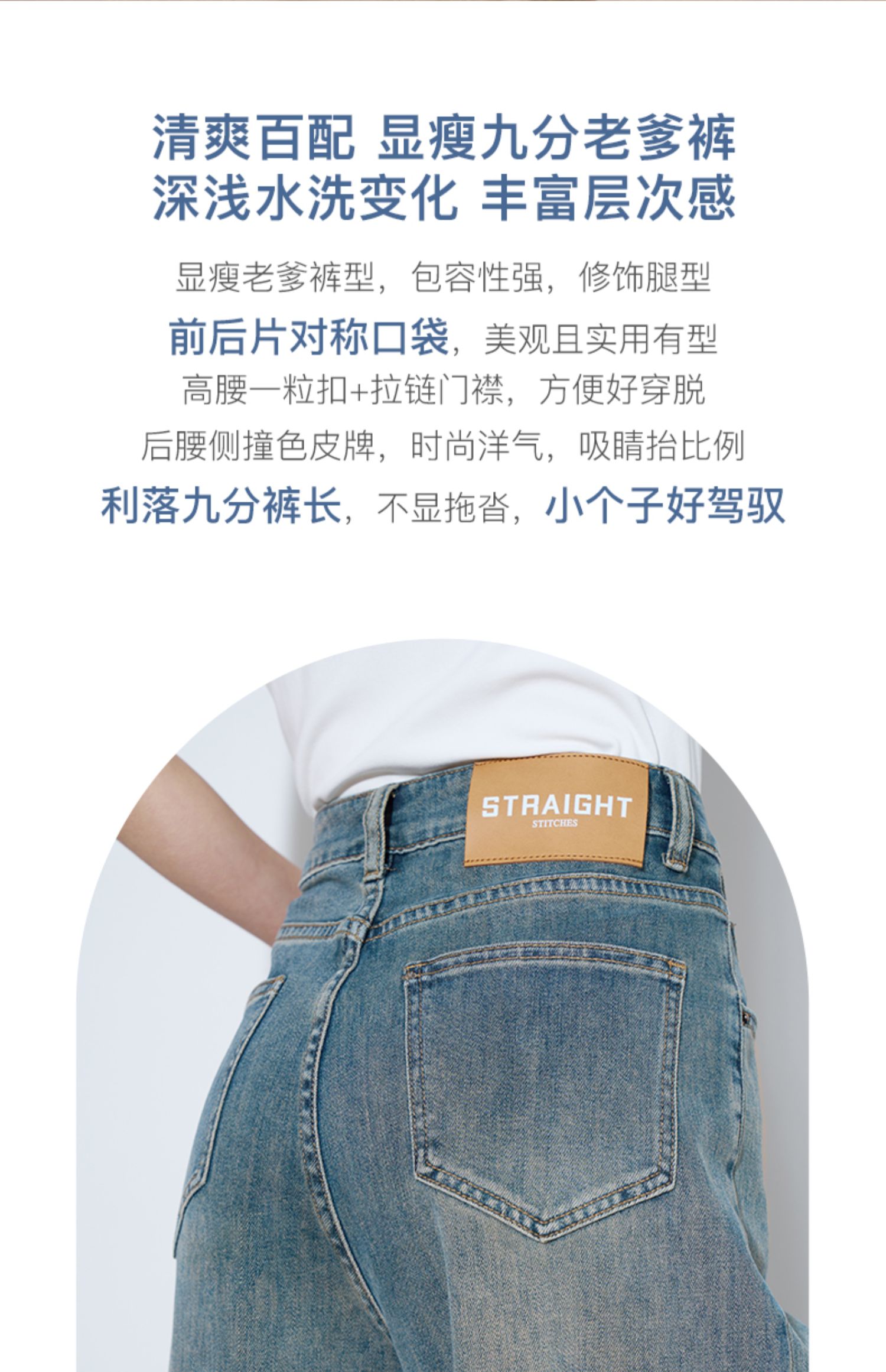OLrain欧芮儿水洗蓝牛仔裤女春季2024年新款通勤休闲九分老爹裤