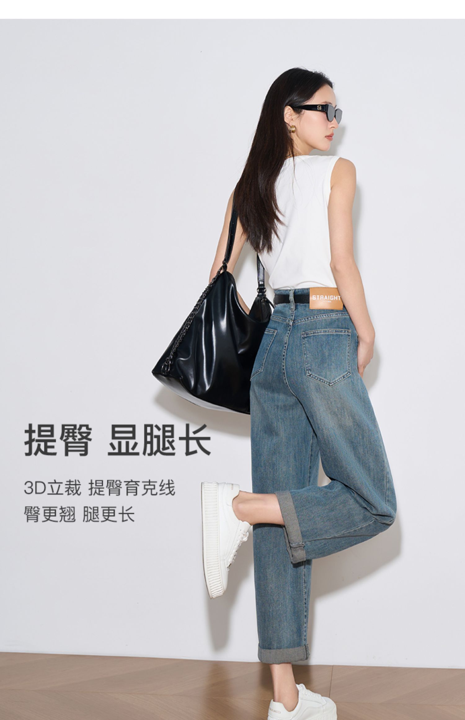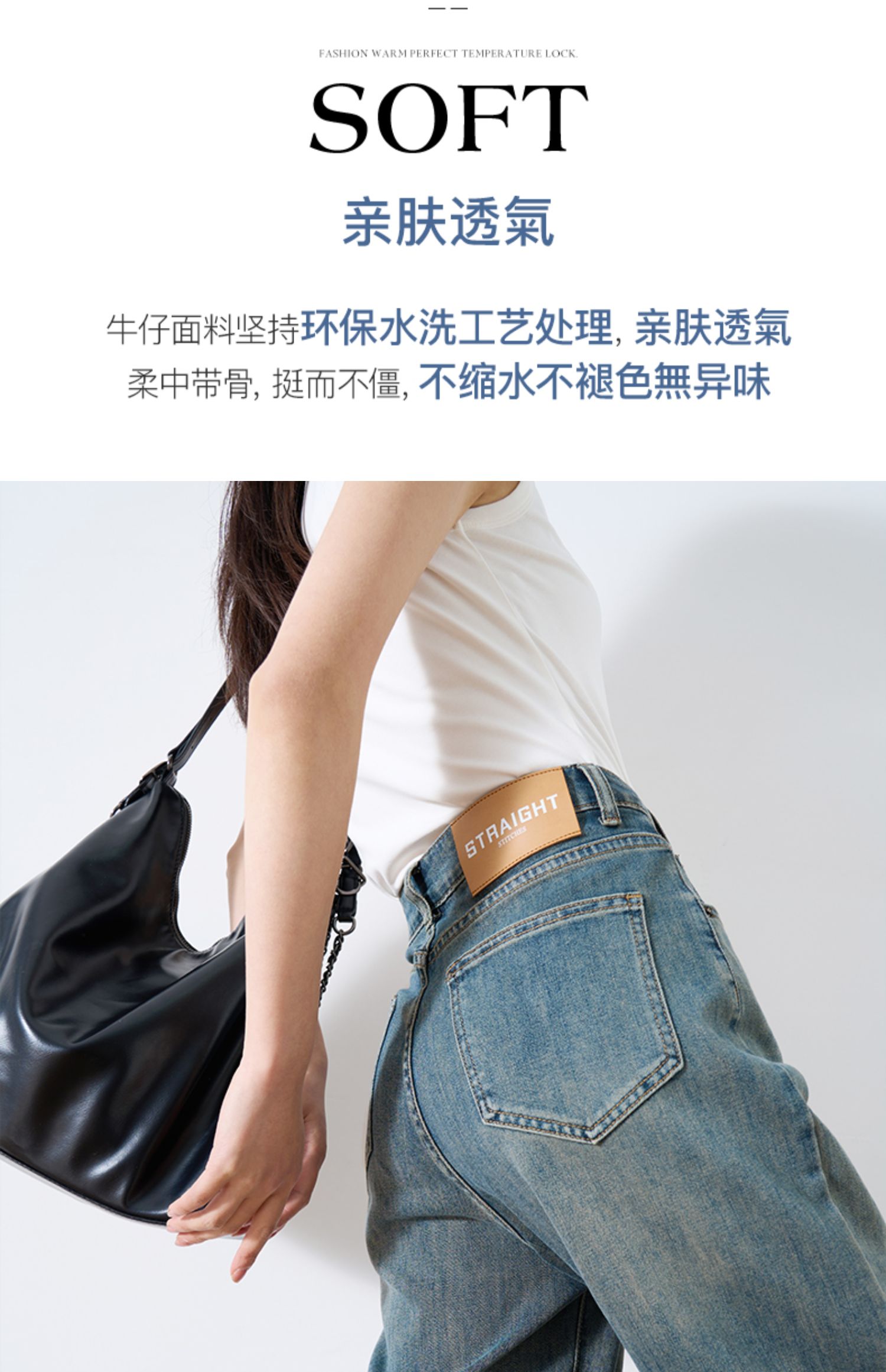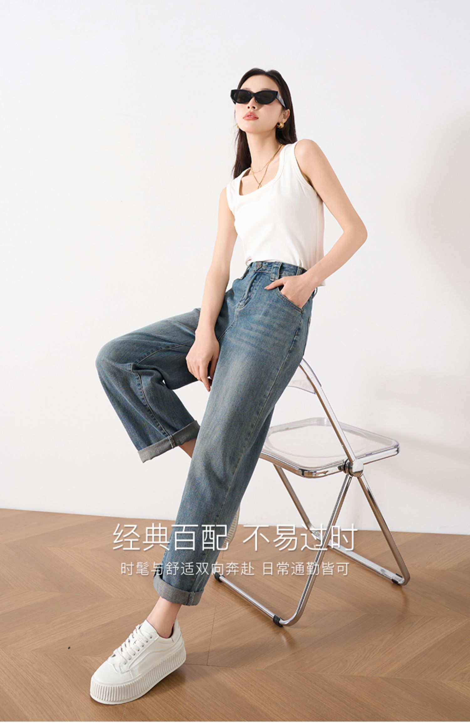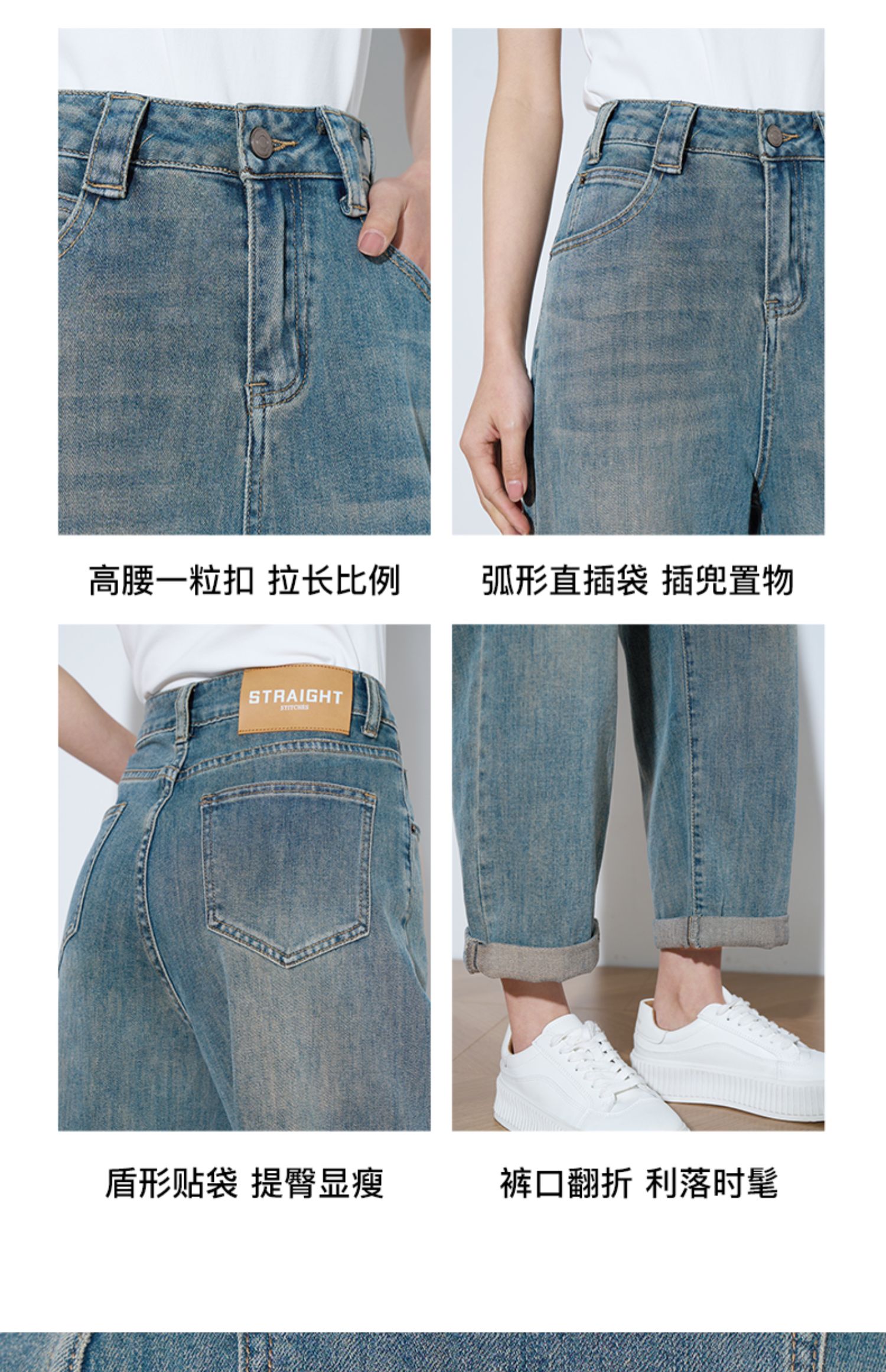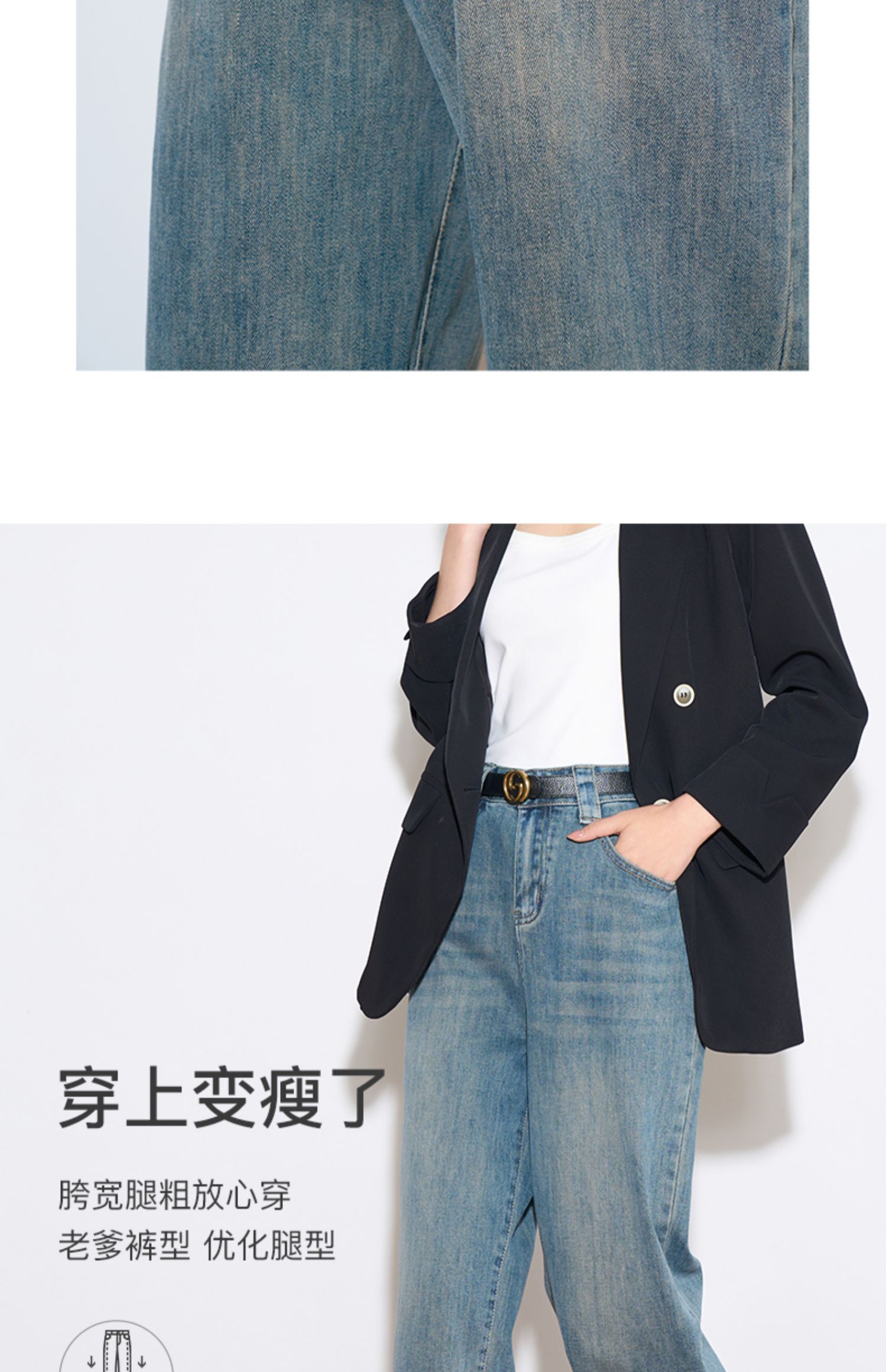 OLrain欧芮儿水洗蓝牛仔裤女春季2024年新款通勤休闲九分老爹裤