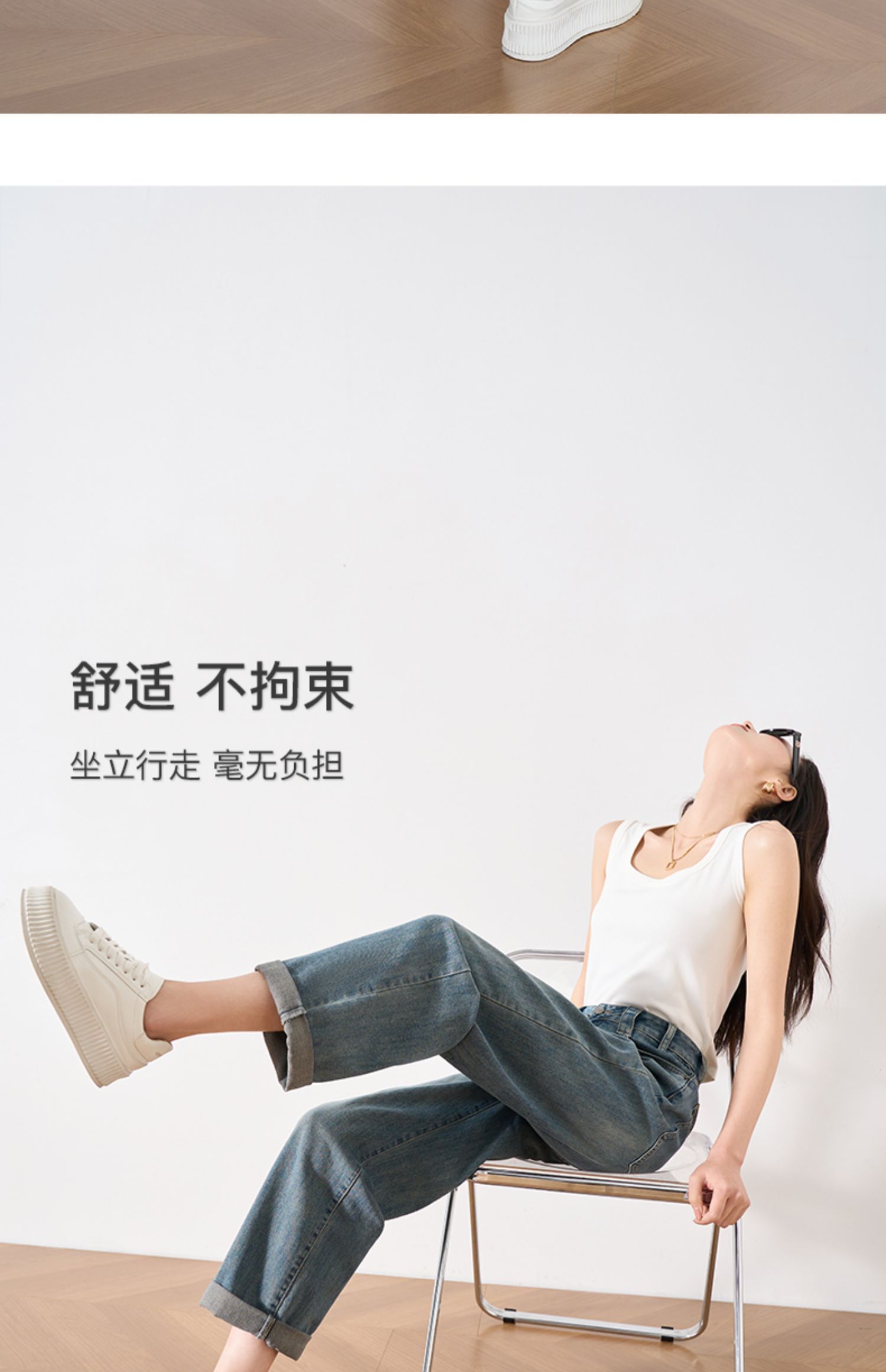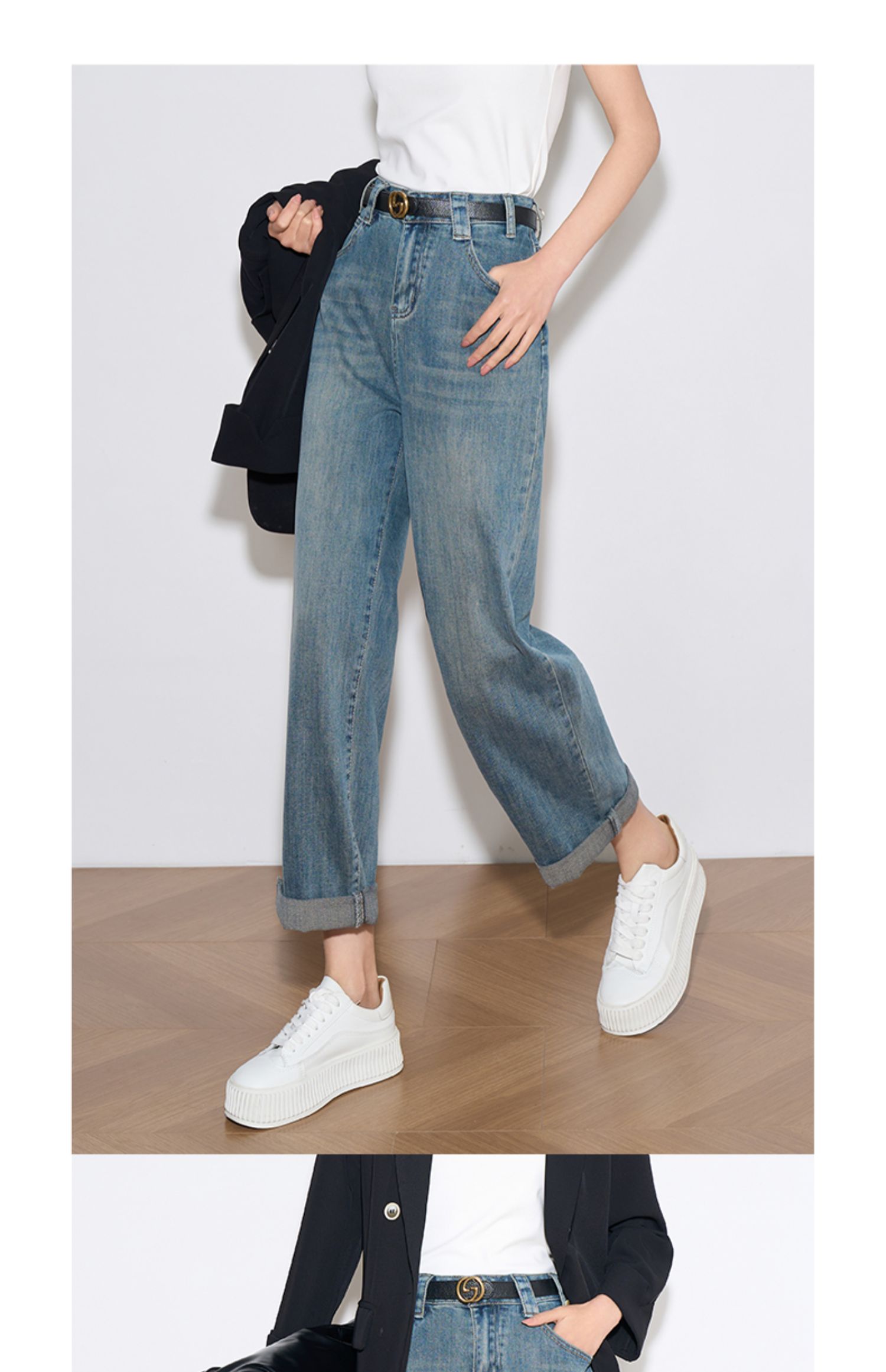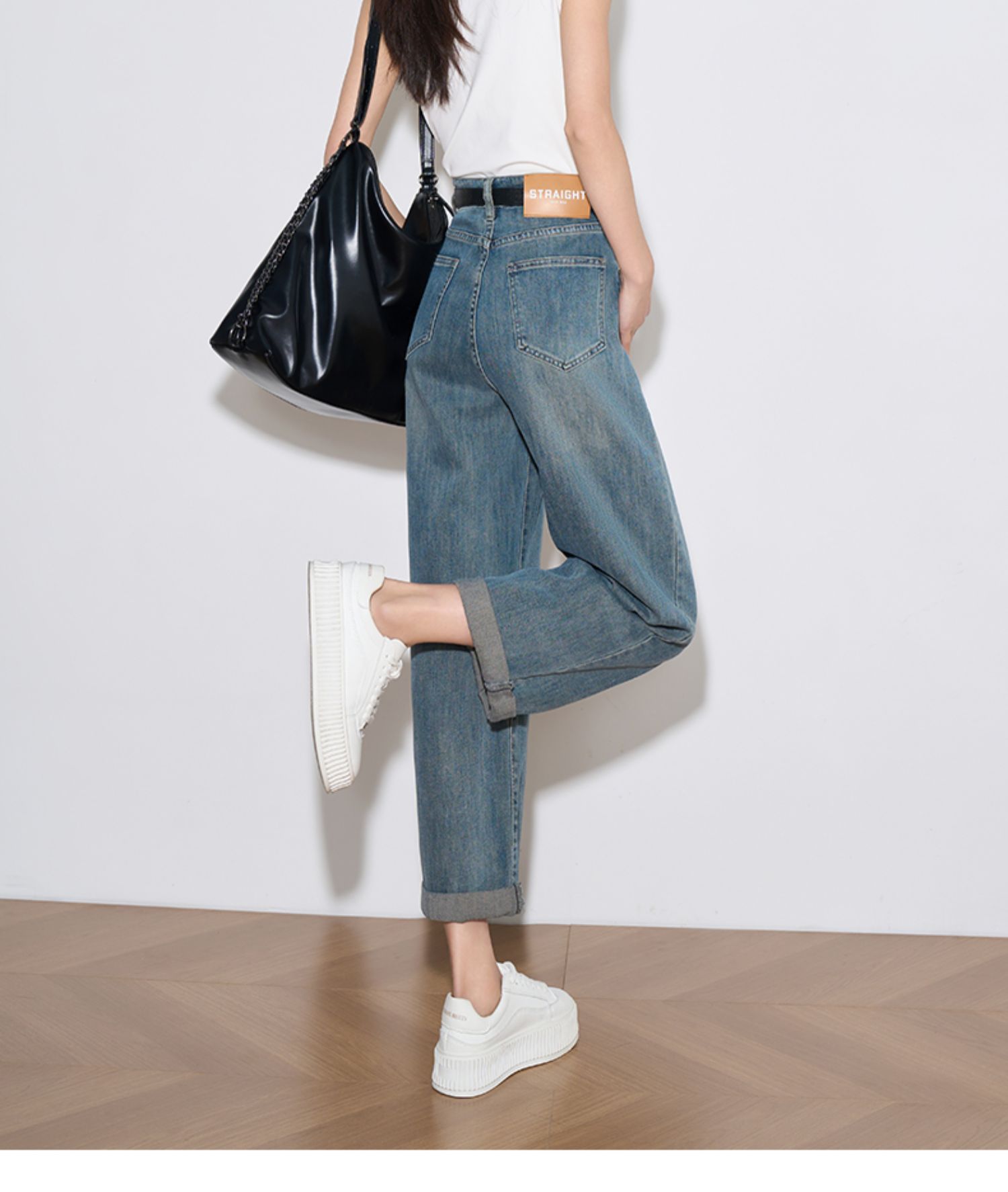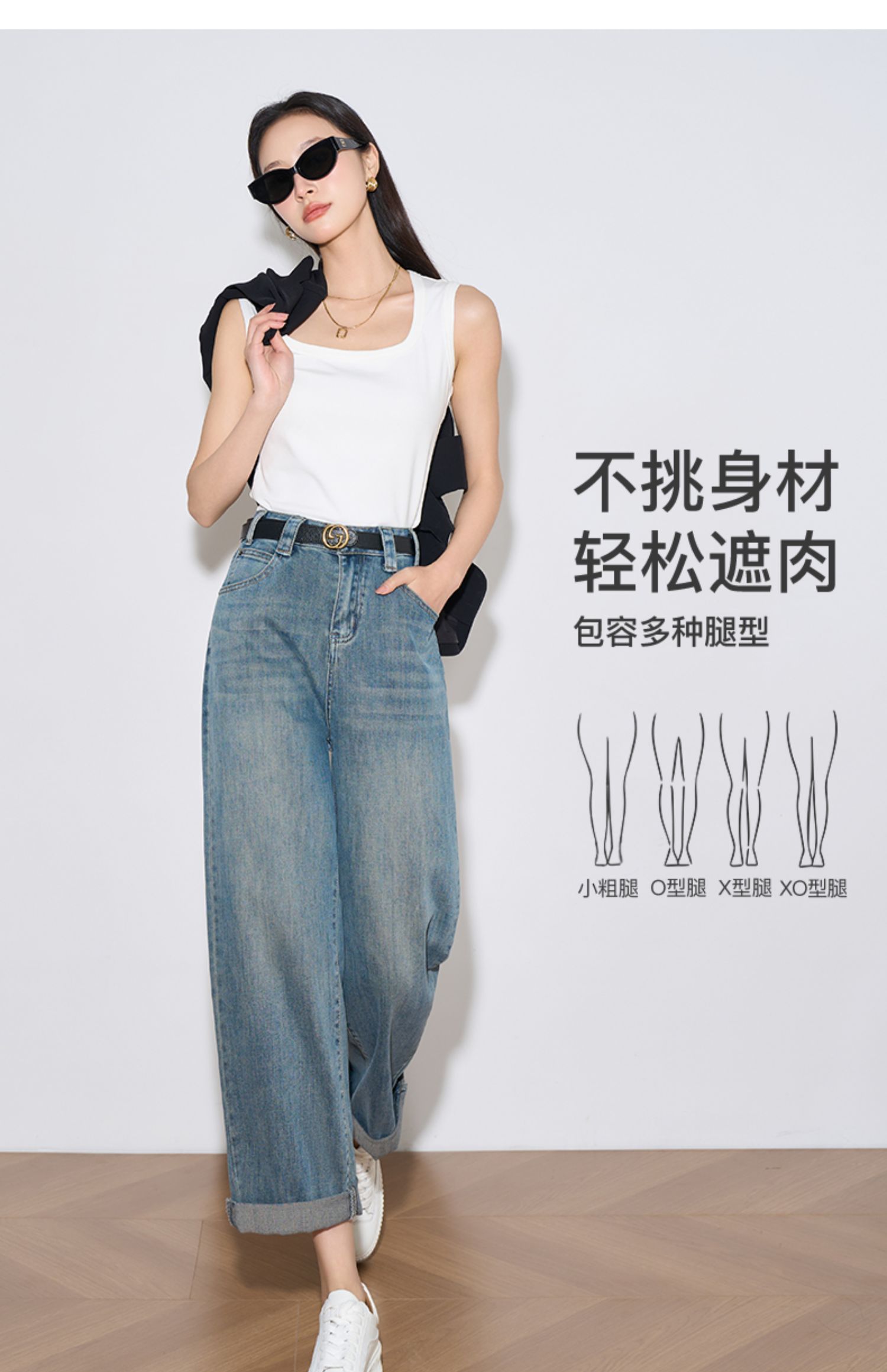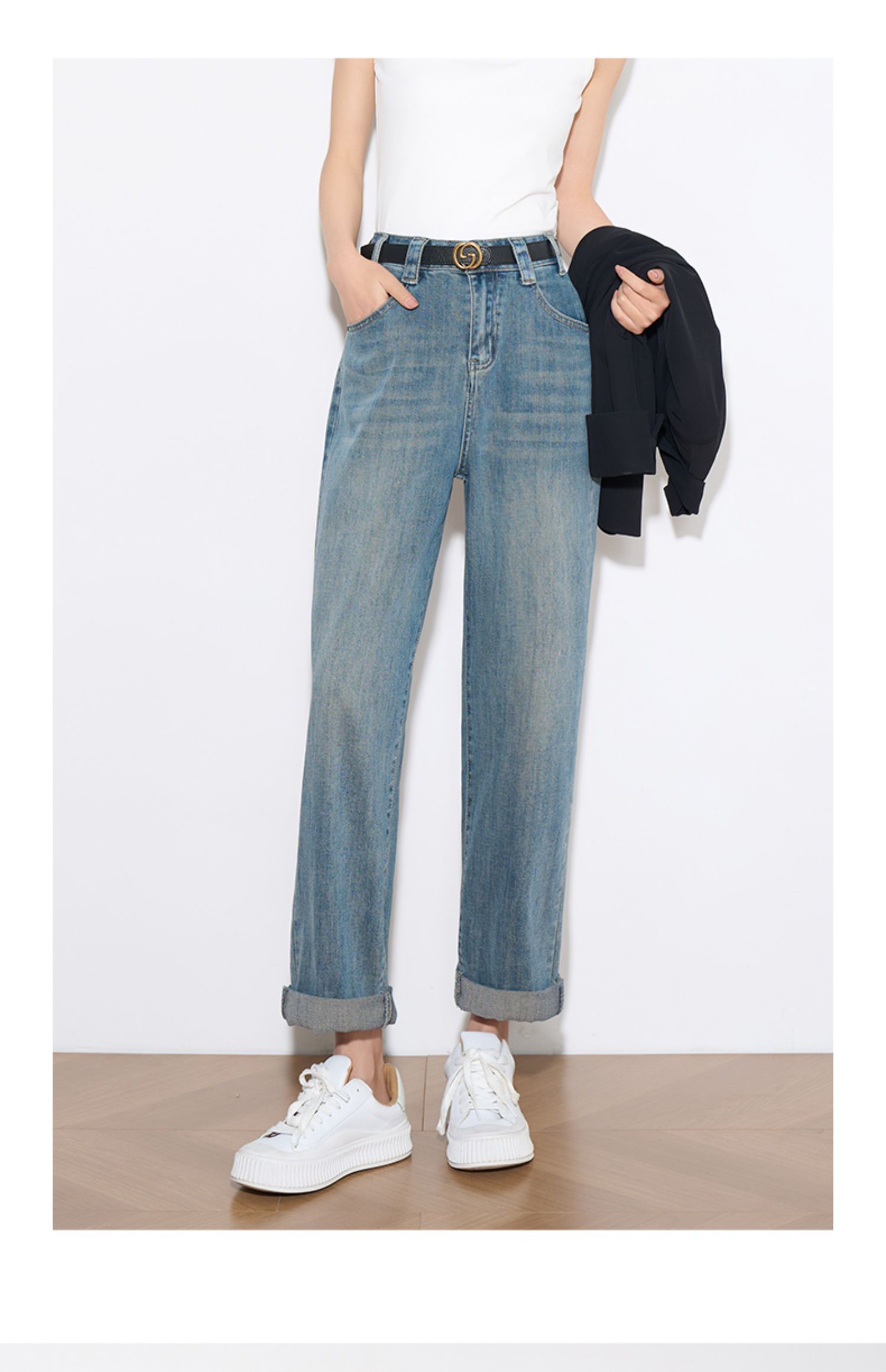 OLrain欧芮儿水洗蓝牛仔裤女春季2024年新款通勤休闲九分老爹裤