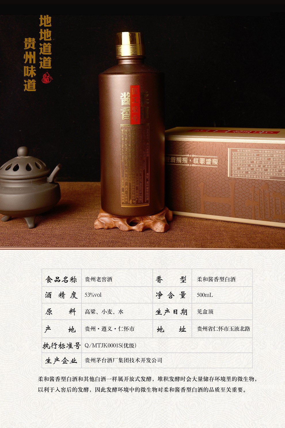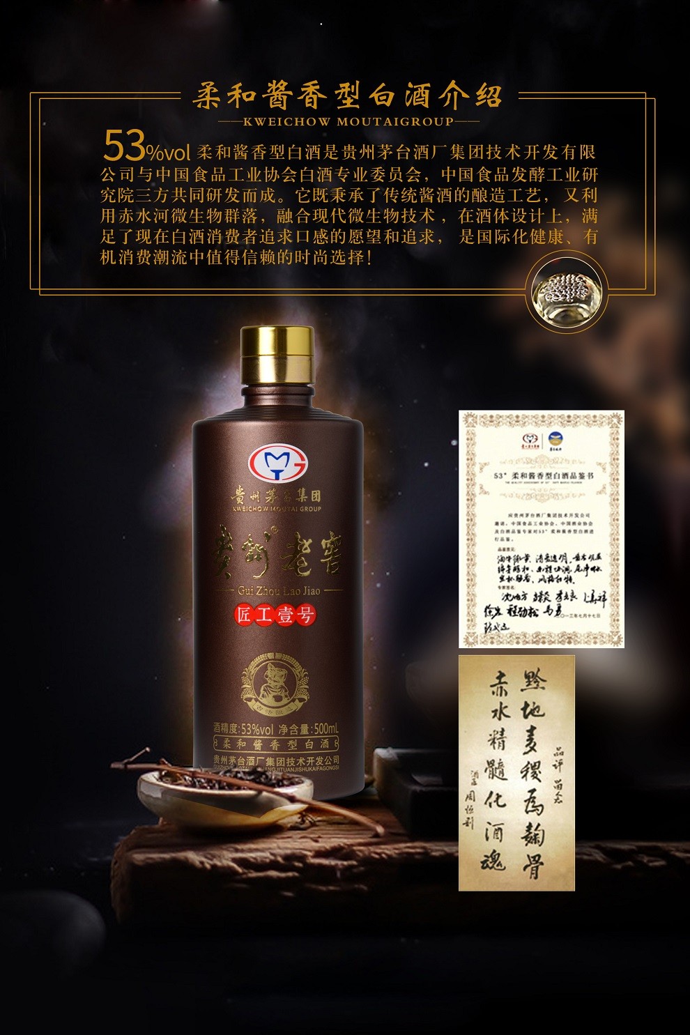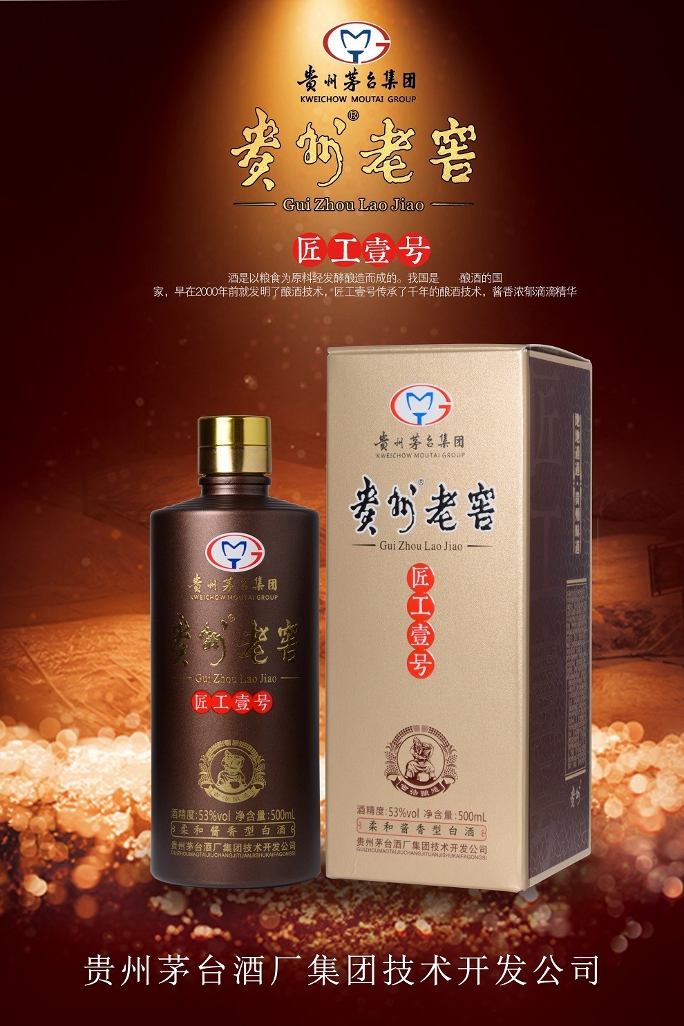 【贵州茅台集团】贵州老窖匠工壹号53度柔和酱香型白酒礼盒装