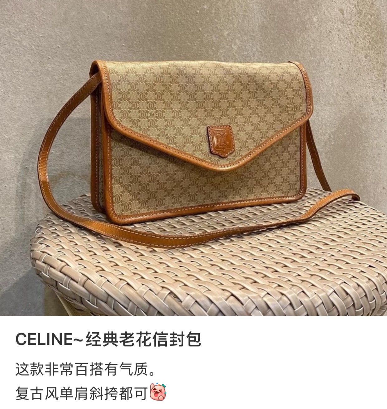 小红书种草的很多,是Celin*中古系列里面最火的一个款!简洁大方干净利索的外表一看就特别帅特别cool,可盐可甜的那种,特别的耐看百搭!