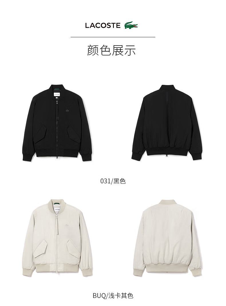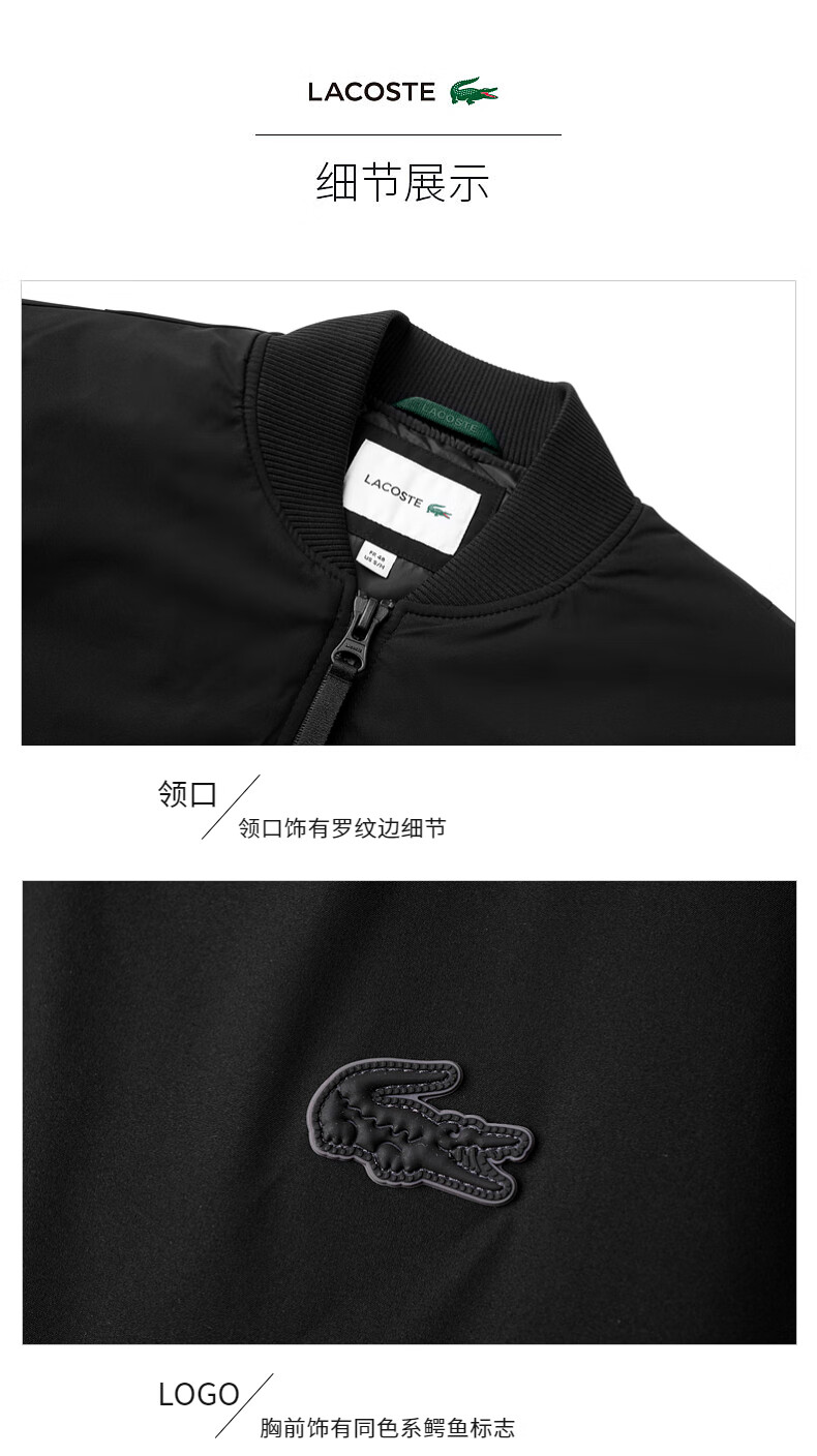 Lacoste法国鳄鱼男装新款时尚潮流休闲舒适棉服外套BH5956-98
