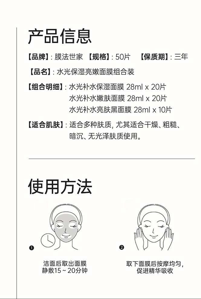 【补水季丨¥79/50片】膜法世家水光保湿亮嫩面膜组合50片装