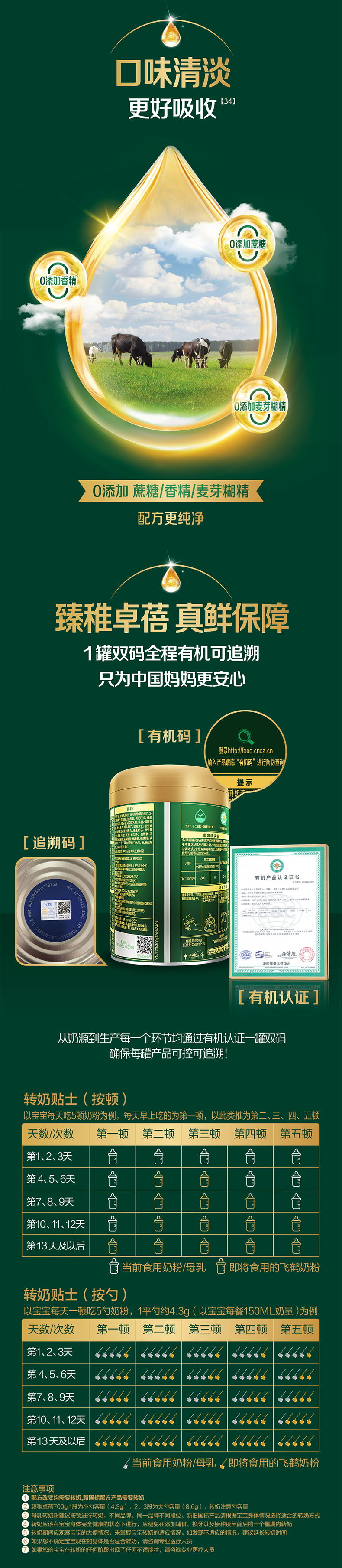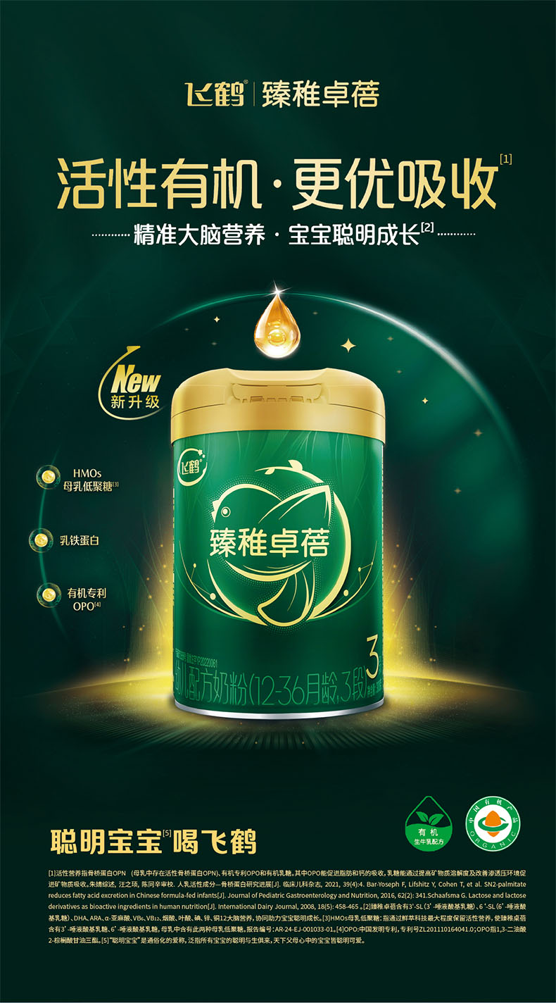飞鹤臻稚卓蓓有机幼儿配方奶粉听装3段700g