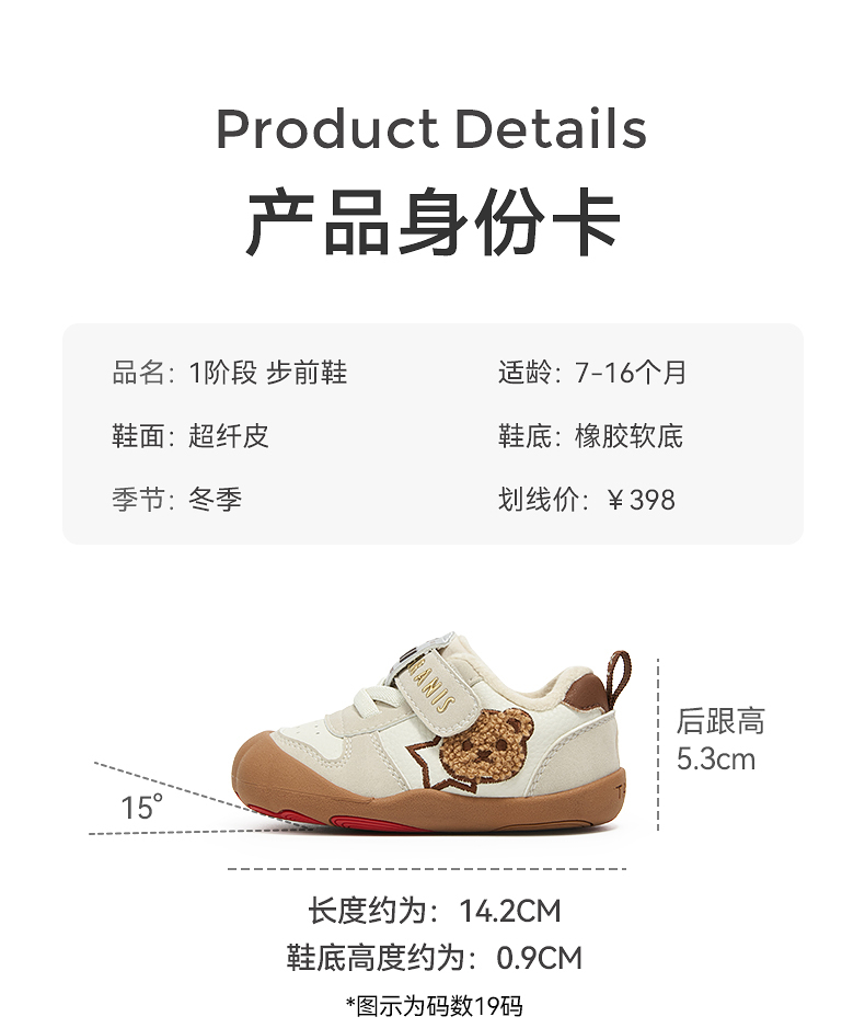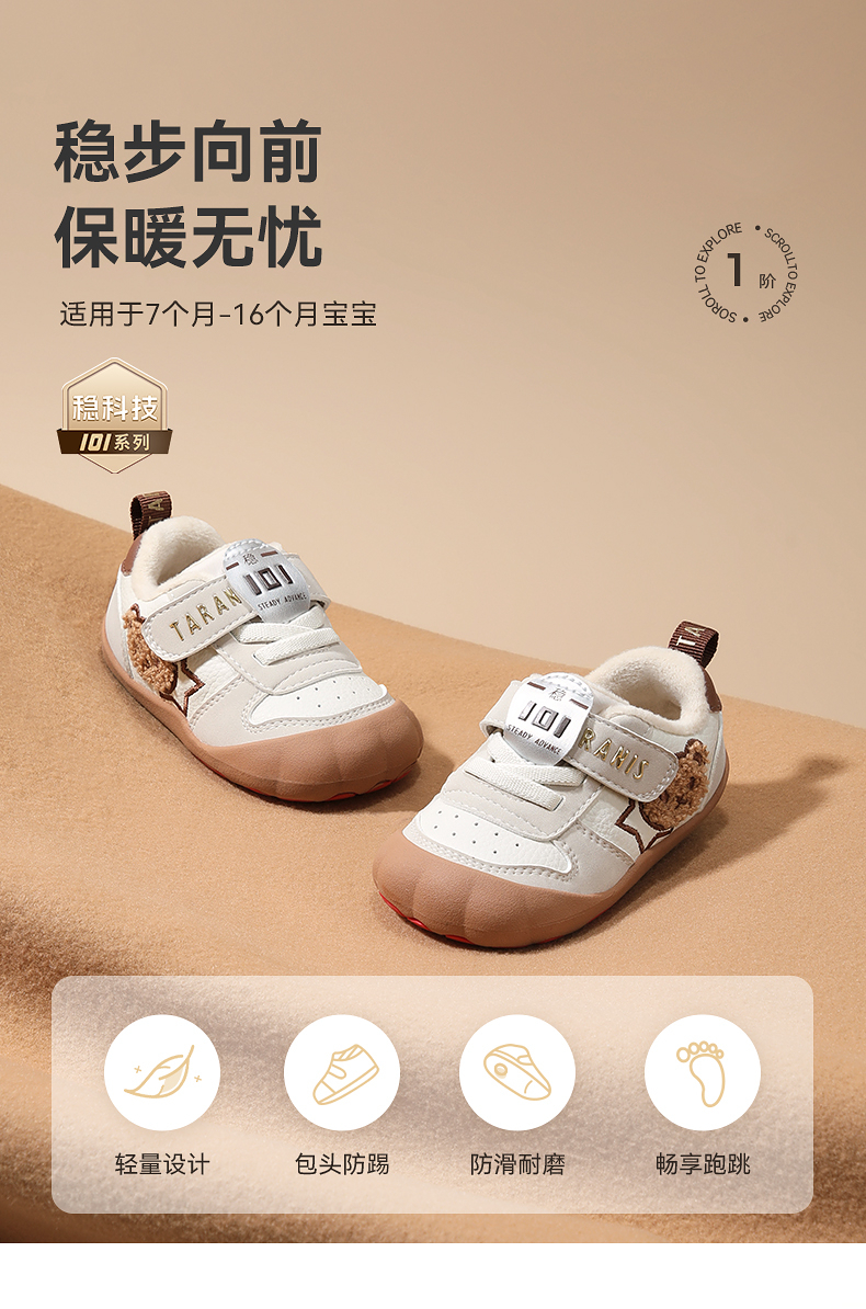 泰兰尼斯101步前鞋秋季新款包头防踢婴儿鞋男宝宝加绒保暖女童鞋T24B5D6658