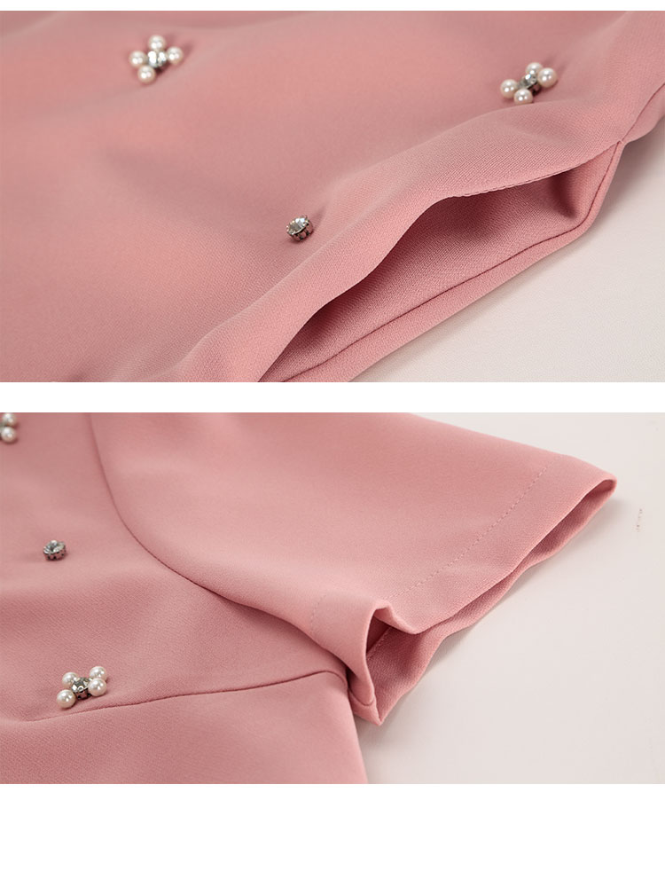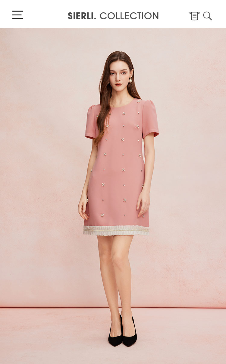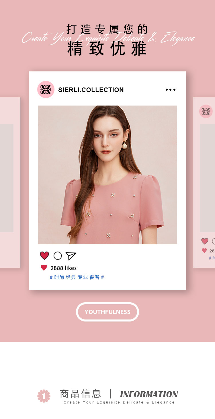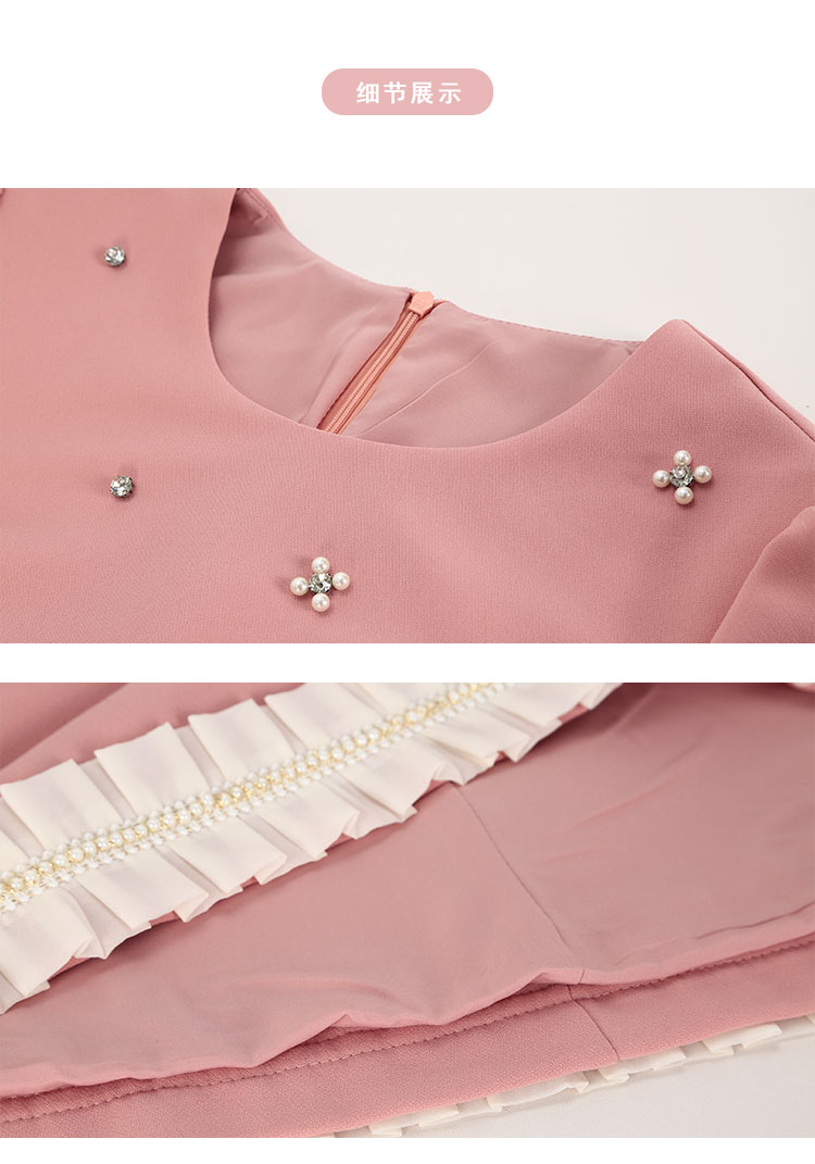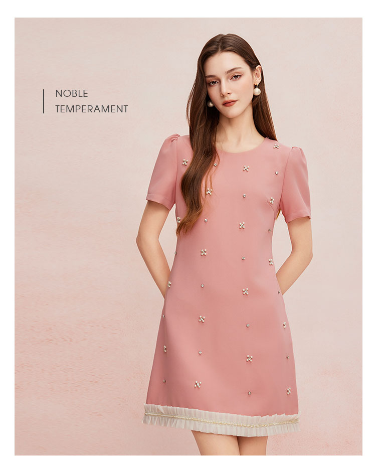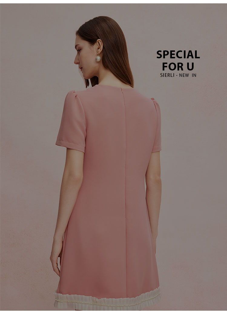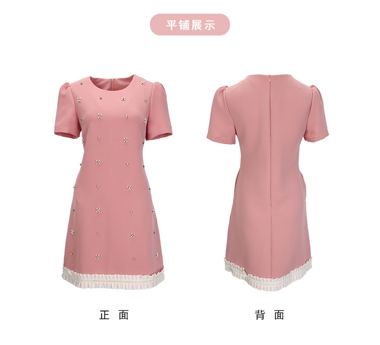 QF8A4斯尔丽2025夏季新款镶钻撞色压褶边显瘦连衣裙