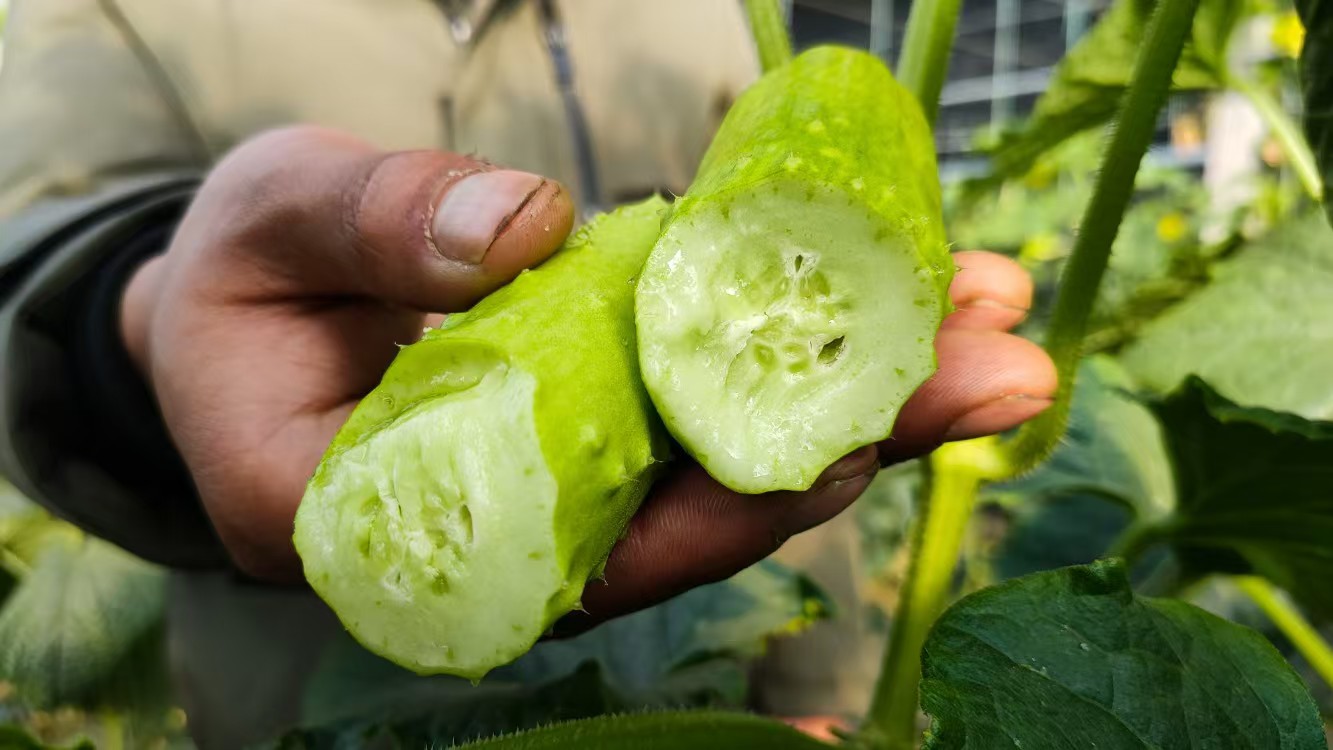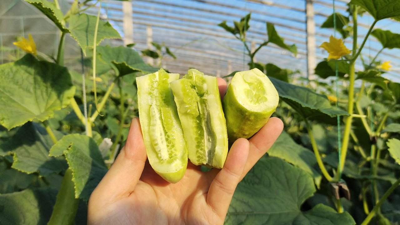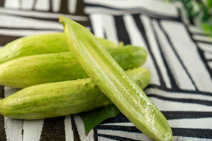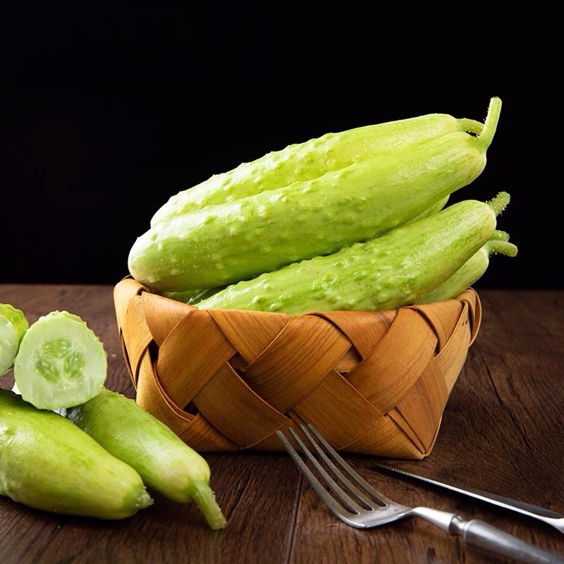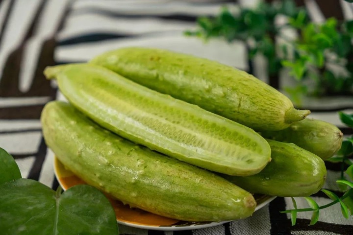 3.海阳白黄瓜色泽晶莹剔透,绿中带白,白中透绿,宛若润玉