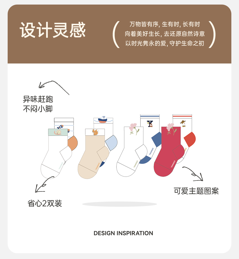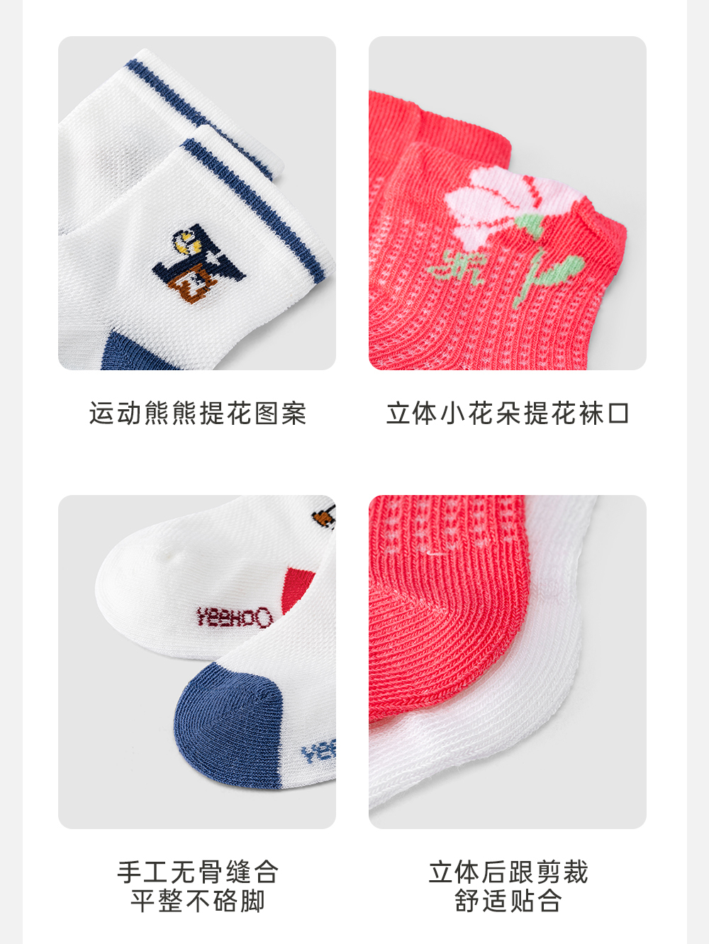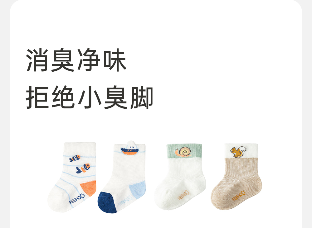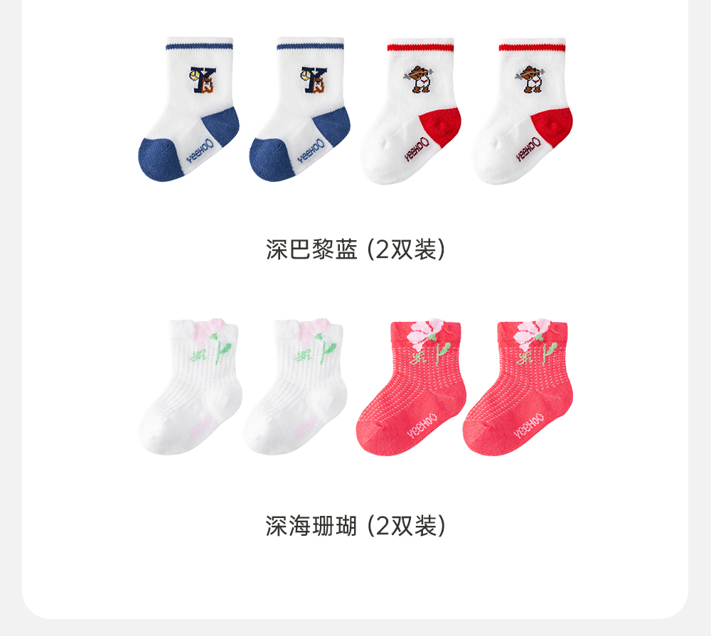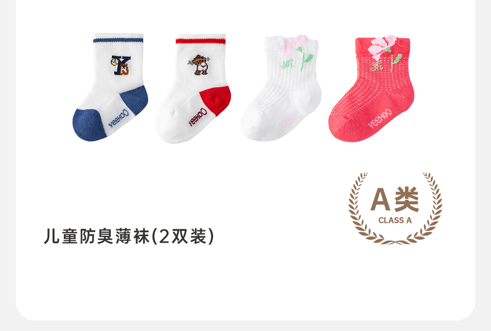 英氏儿童袜子夏季婴幼儿透气防臭薄袜两双装2024新款YIWAJ2Q062A