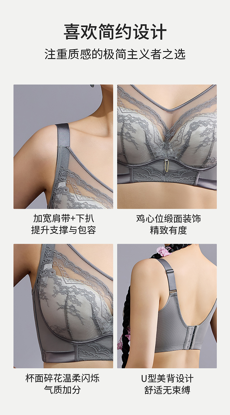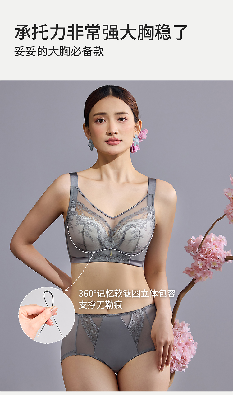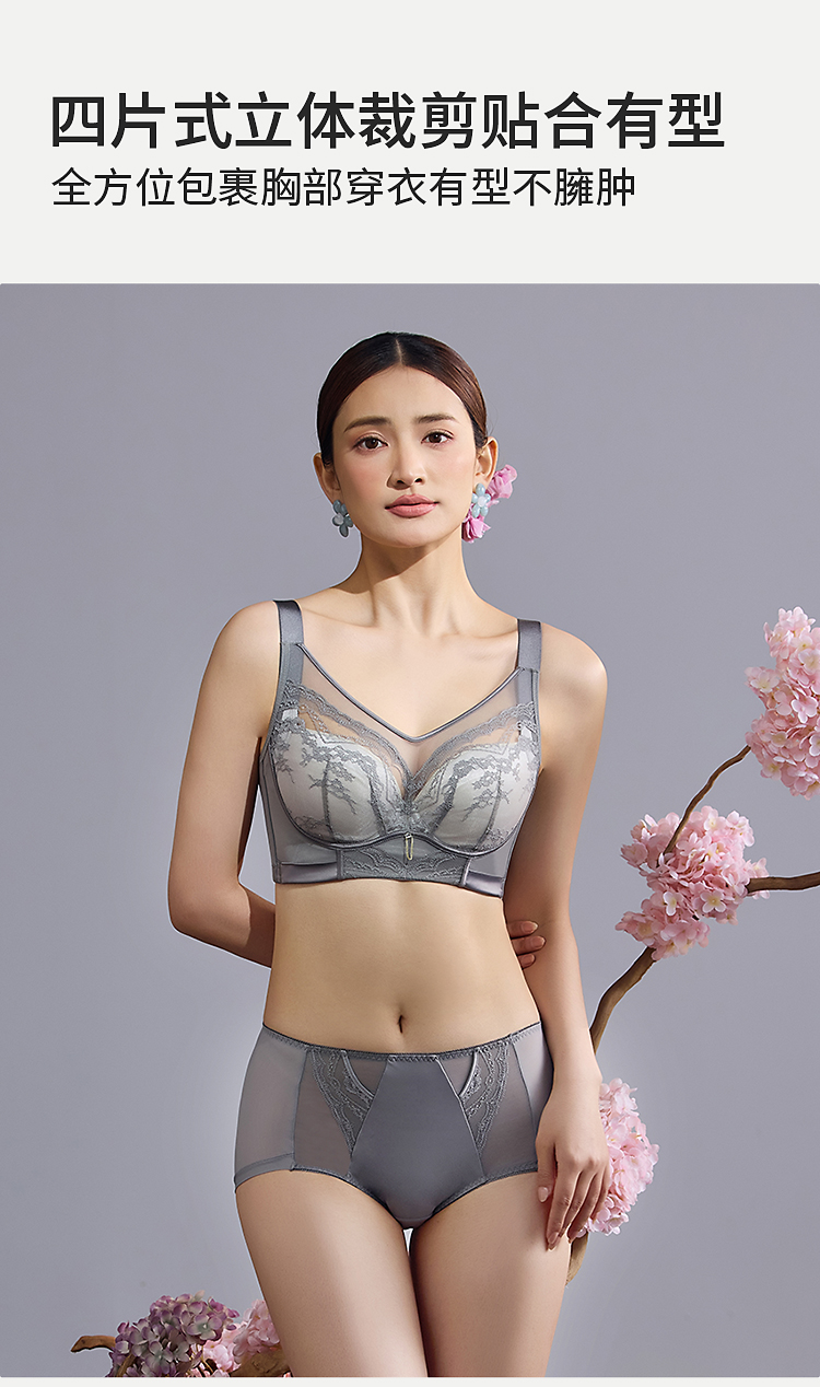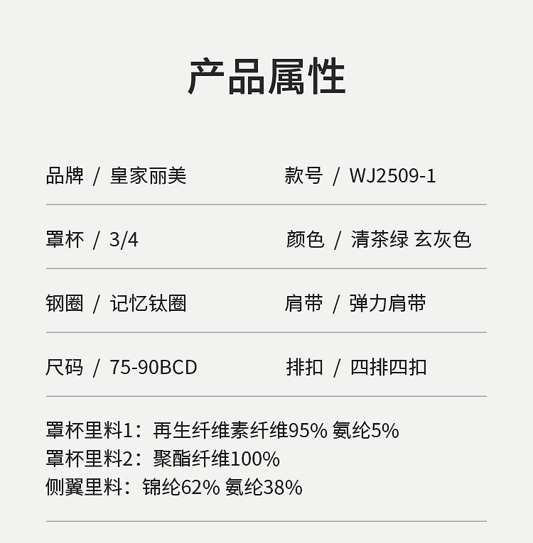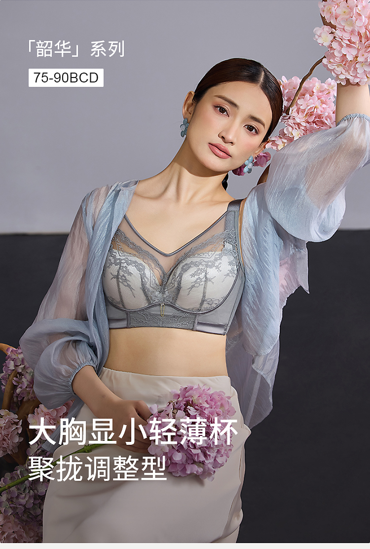 皇家丽美韶华系列大胸显小文胸 轻薄杯 360° 记忆软钢圈 高侧比收副乳 BCD 杯内衣WJ2509-1