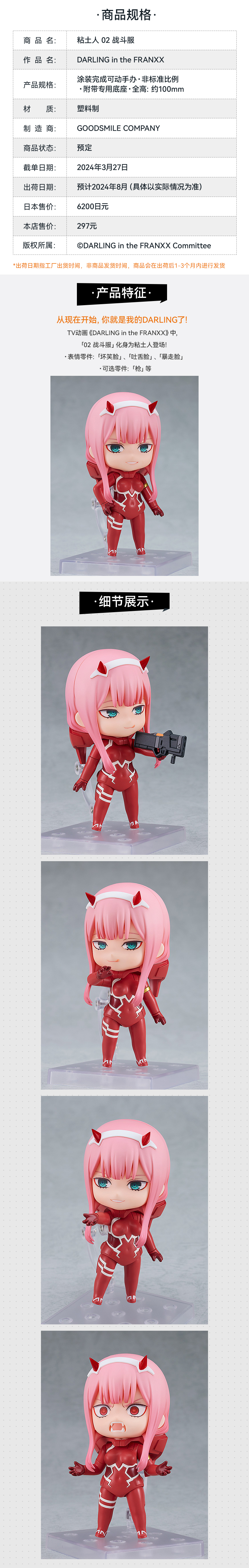【GSC现货】粘土人 02 战斗服Ver.DARLING in the FRANXX