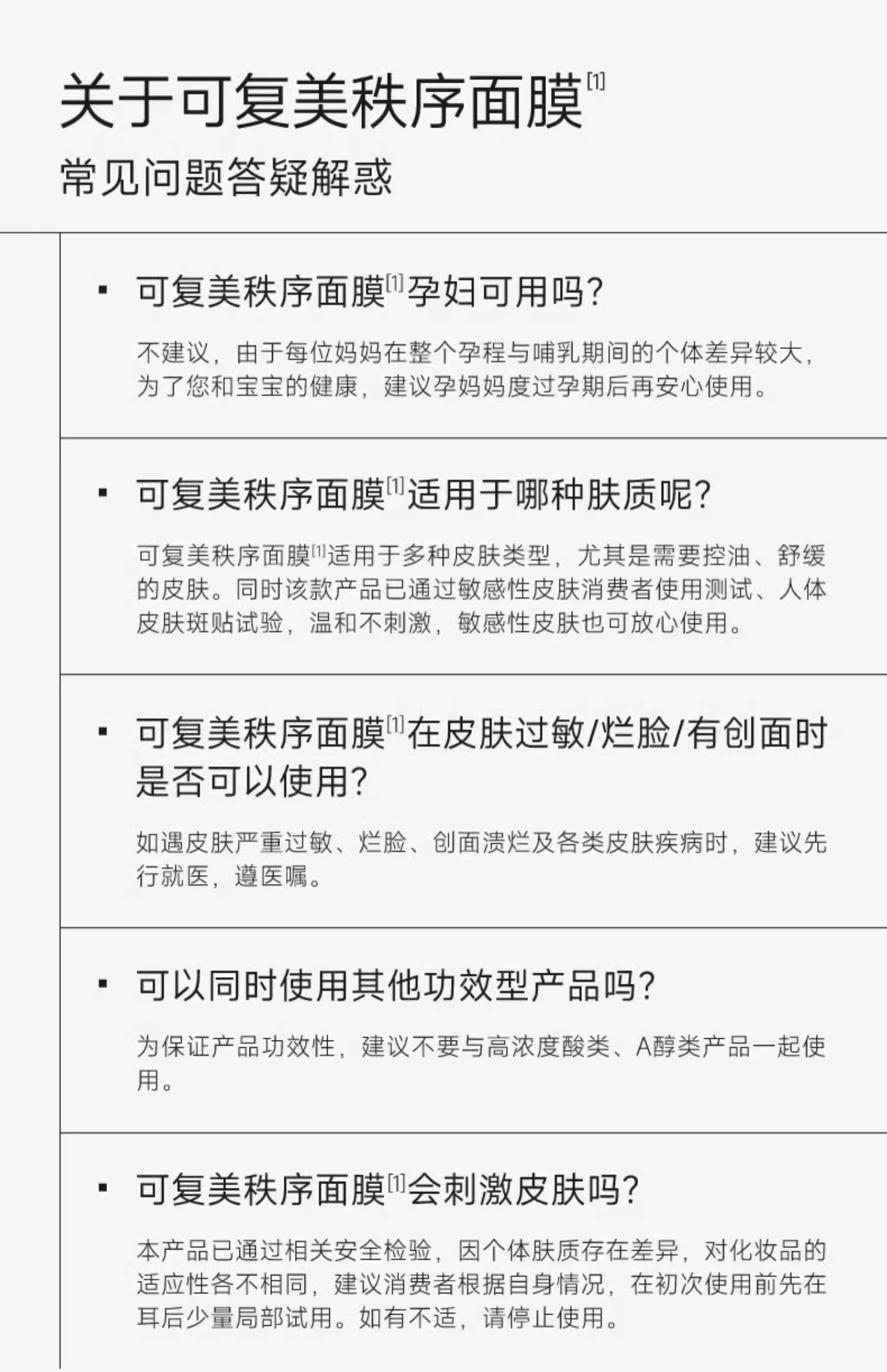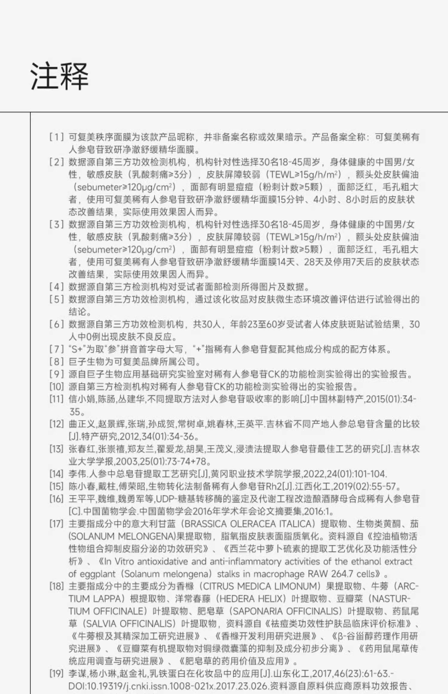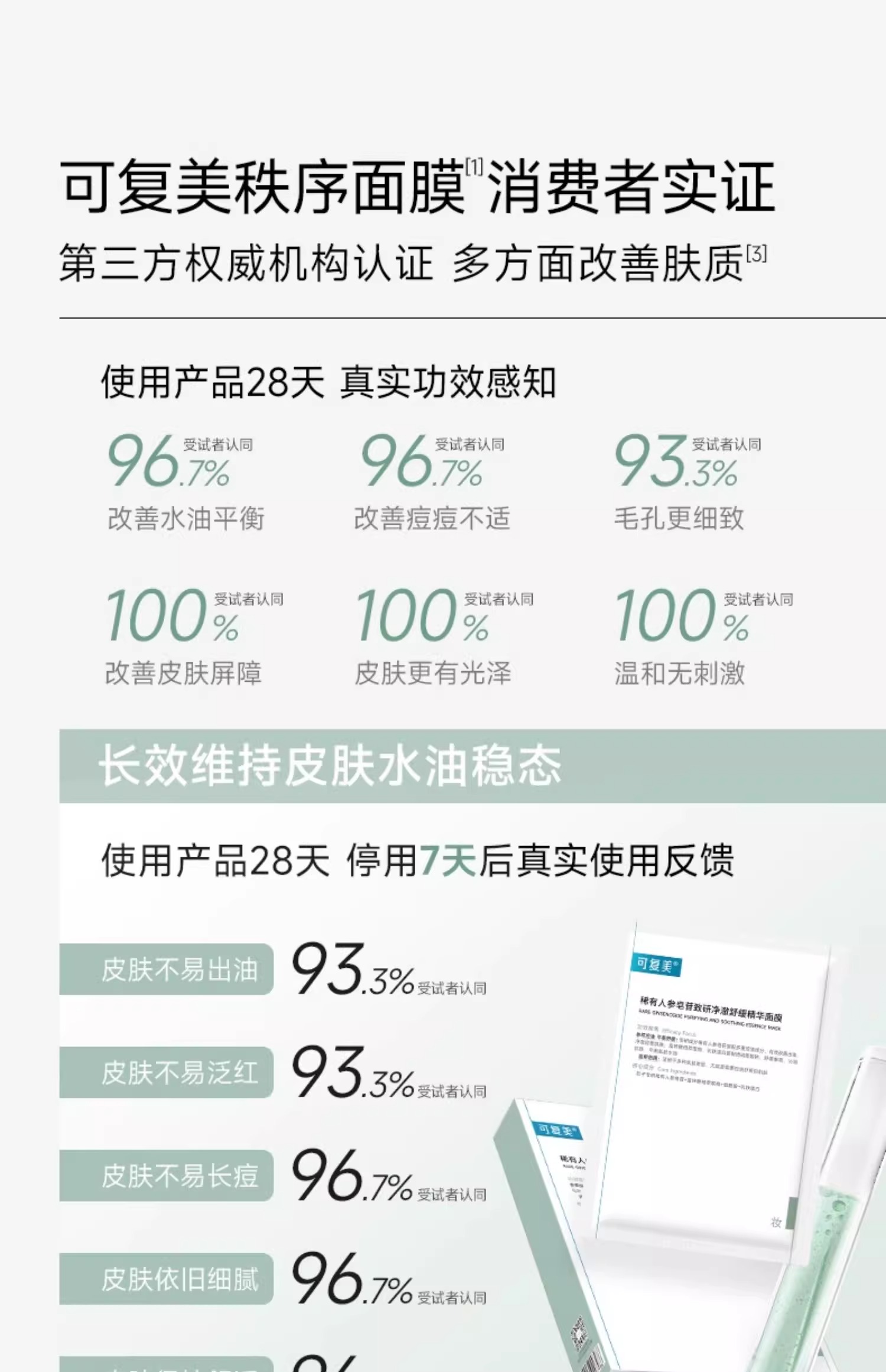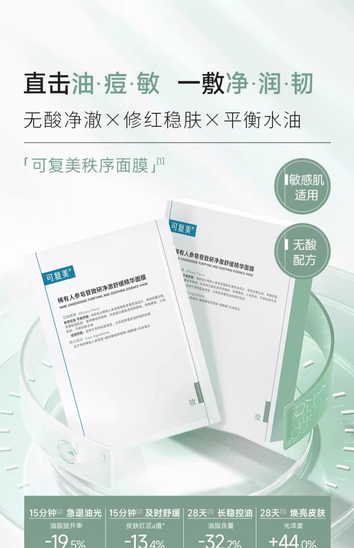 可复美秩序面膜稀有人参皂苷致研净澈舒缓控油补水精华面膜5片/盒