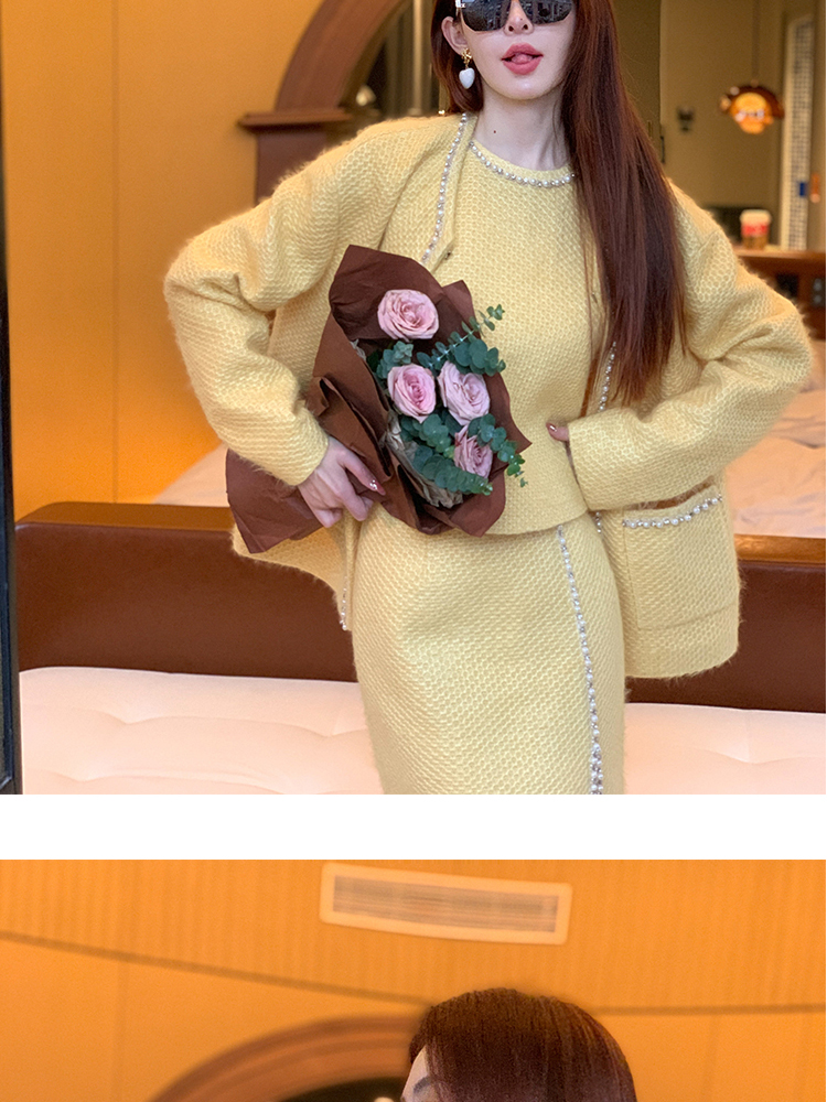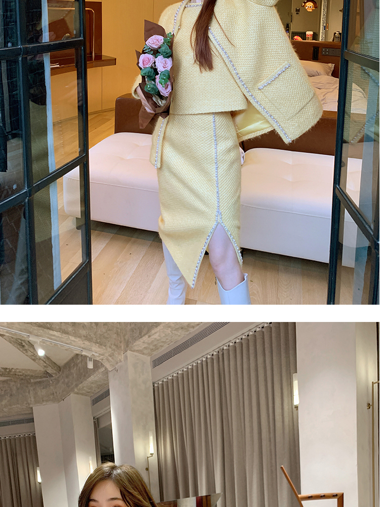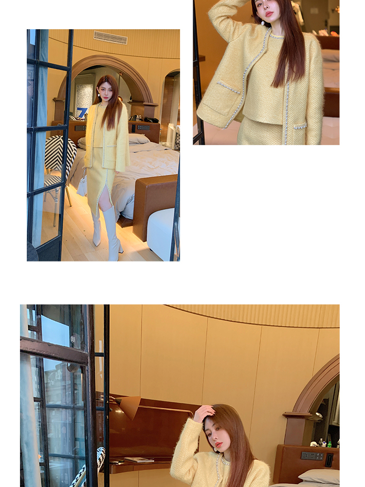 BeQueenStory【黄油女孩】气质温柔邻家软糯小香风套装