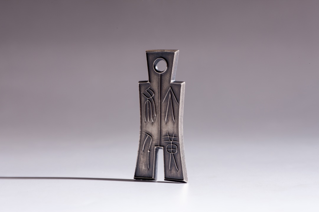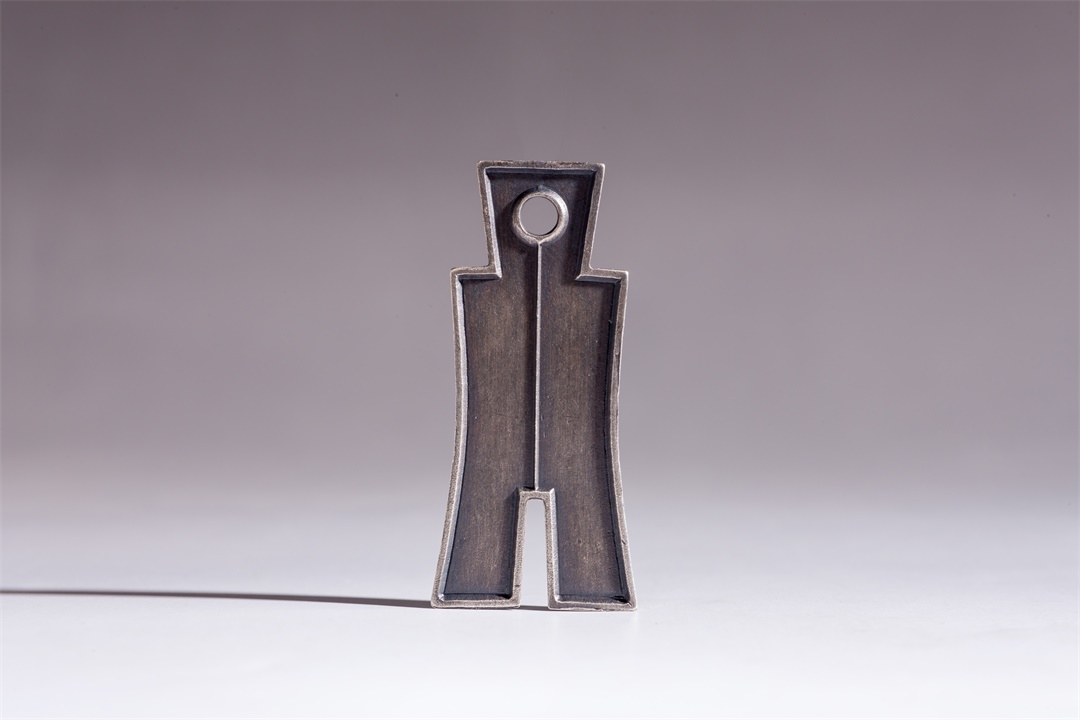 尺寸:币足最宽处约25.8毫米,厚约2.3毫米,高约55.5毫米,孔径约4.4毫米,重约10克(手工作品有少许误差)。