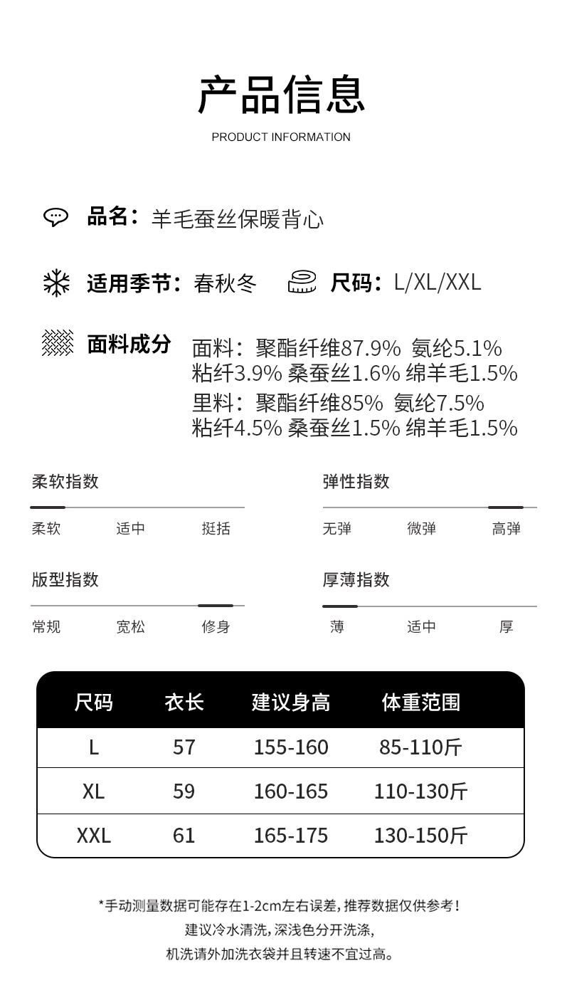新款羊毛蚕丝保暖背心秋冬防风保暖锁温绵柔舒适贴身无痕修身显瘦