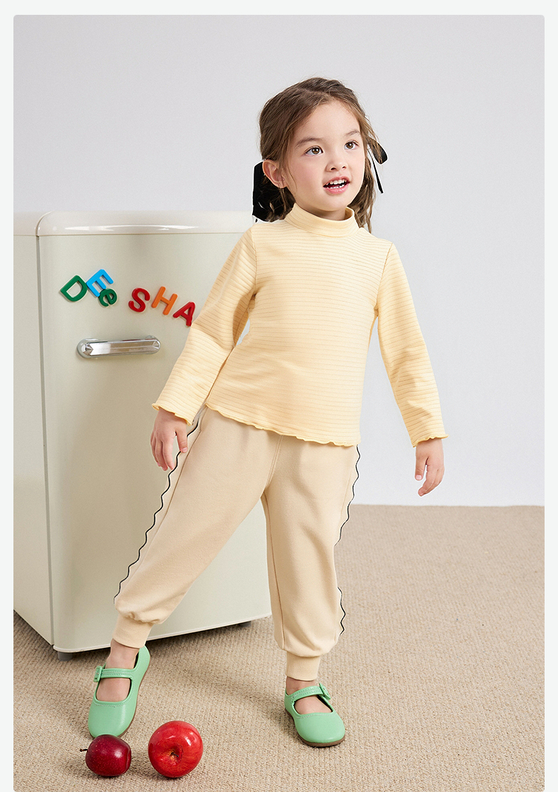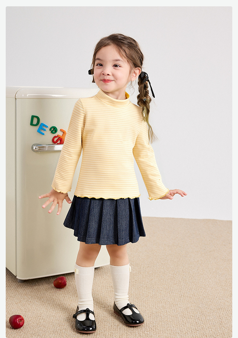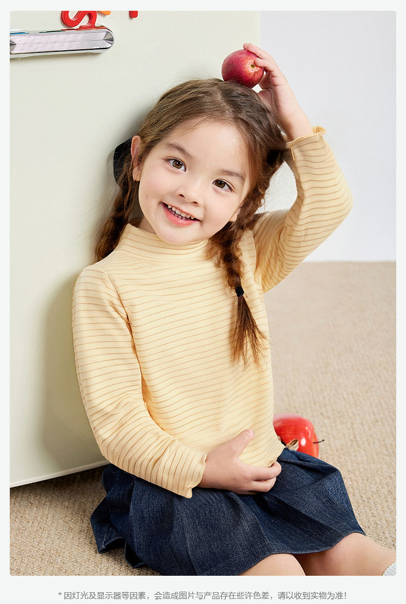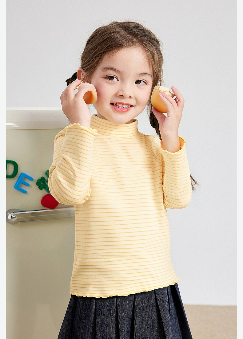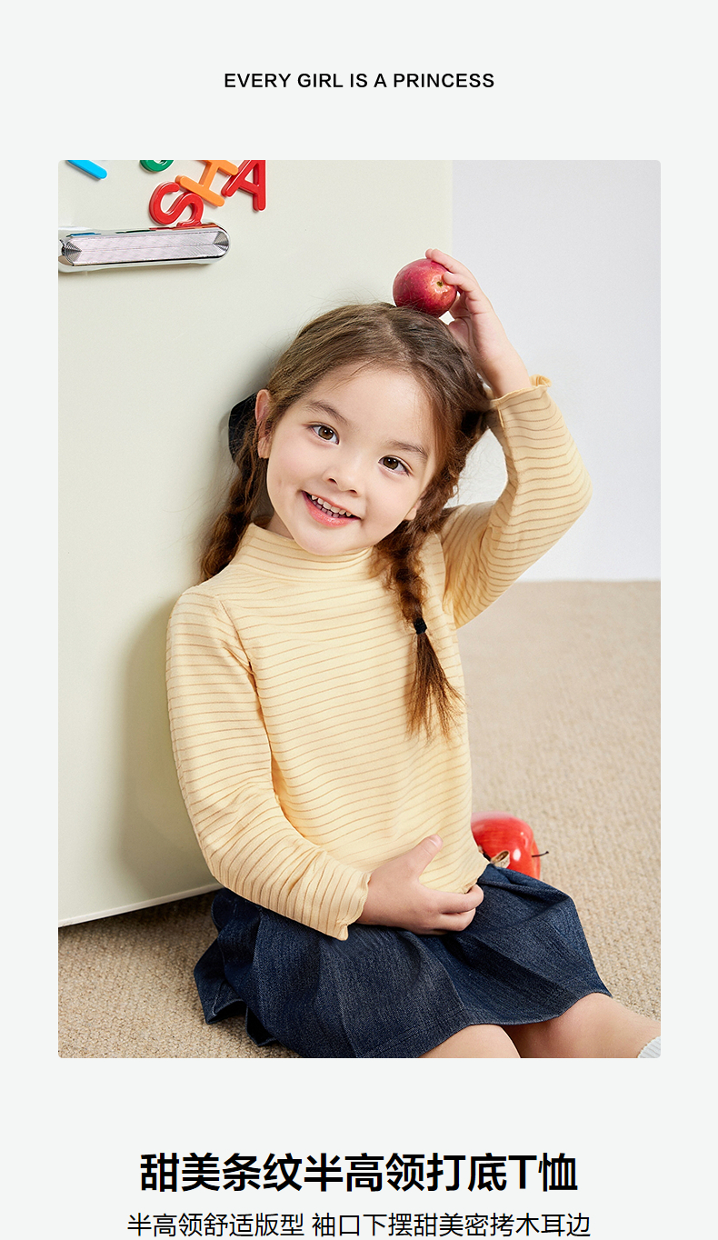 笛莎Deesha 童装女童T恤2025冬新款女童甜美条纹半高领打底T恤