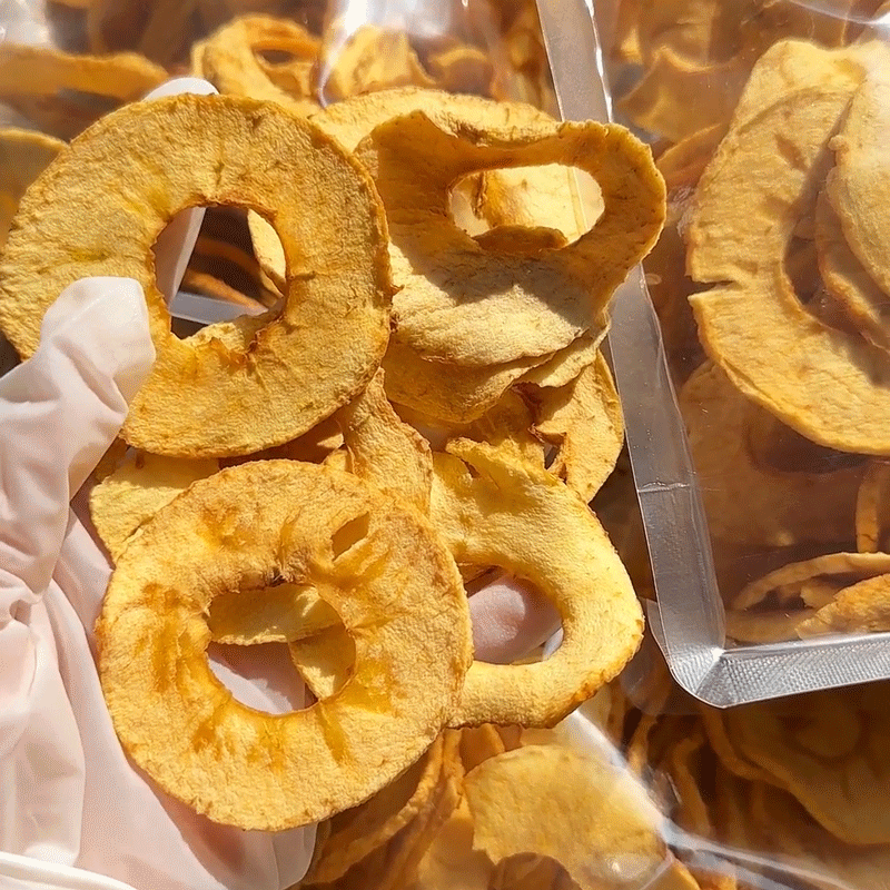 小心翼翼地蒸发水分,将苹果丰盈的汁液、芬芳的香气和纯净的糖分,极致浓缩、完整封存。这过程,如同将一段悠长的阳光岁月,折叠进一片厚实柔韧的果肉之中。