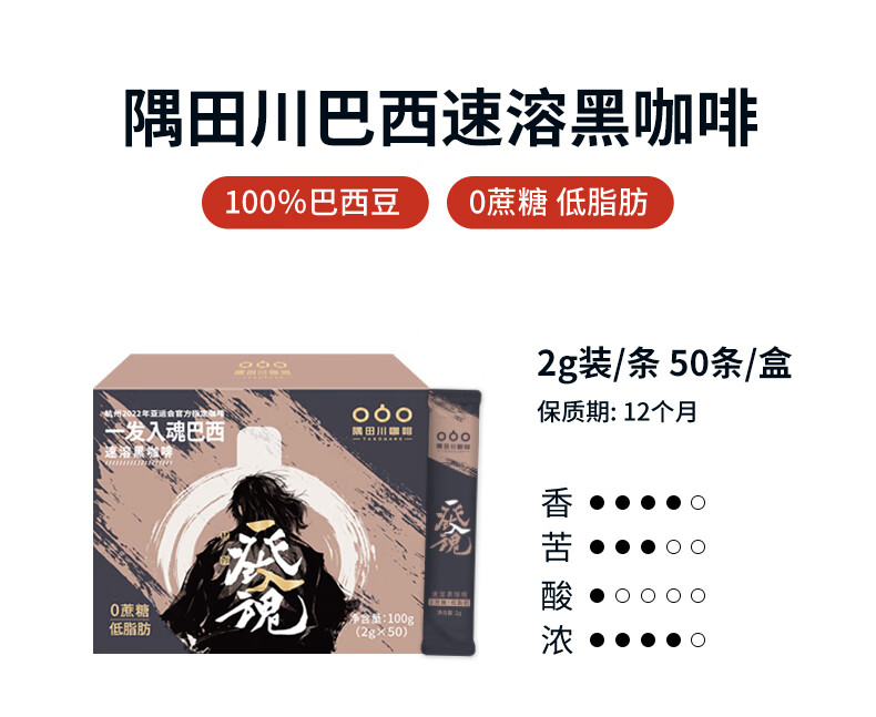 隅田川 一发入魂巴西速溶黑咖啡 100g(2g*50条)