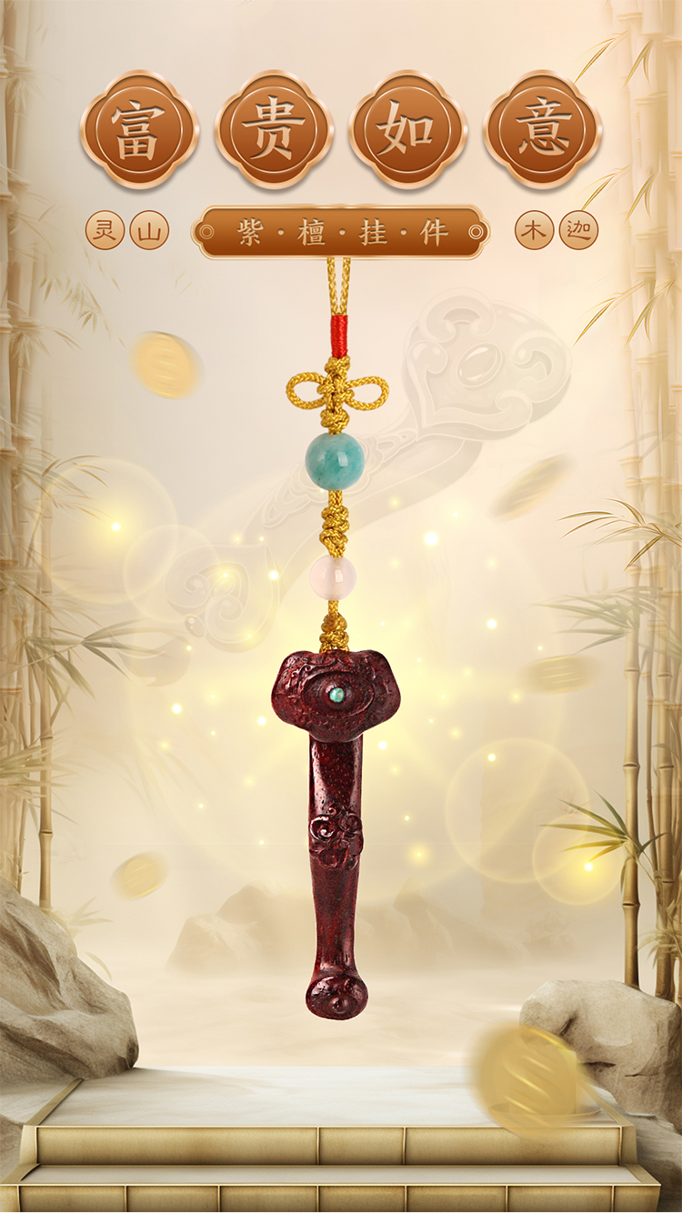 灵山木迦·富贵如意紫檀挂件
