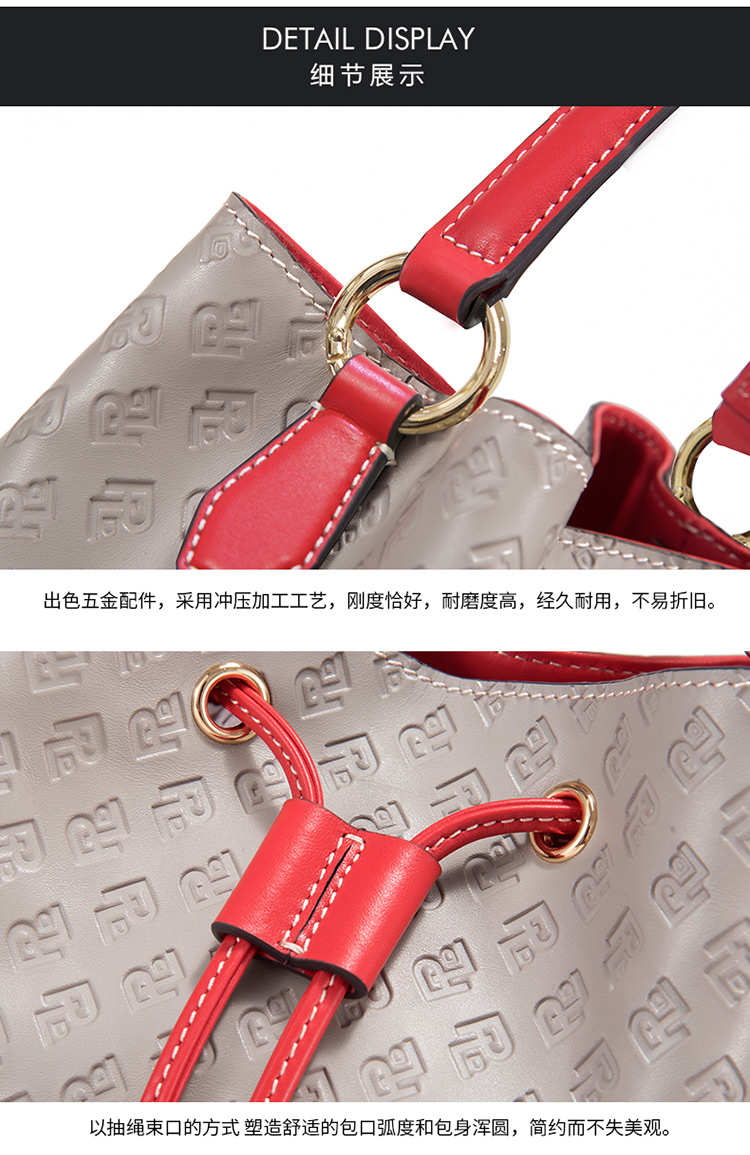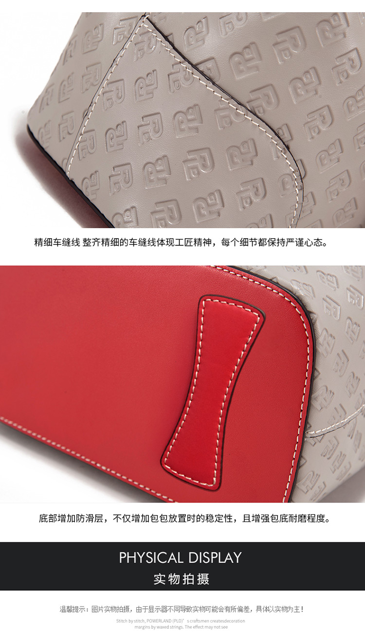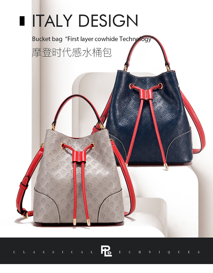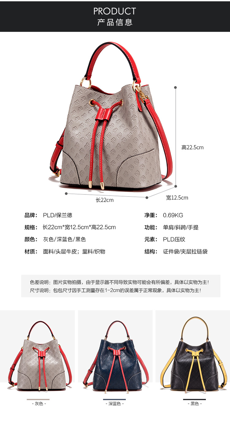 保兰德PLD东方雅奢新款45度老花压纹头层牛皮水桶包通勤必备女包