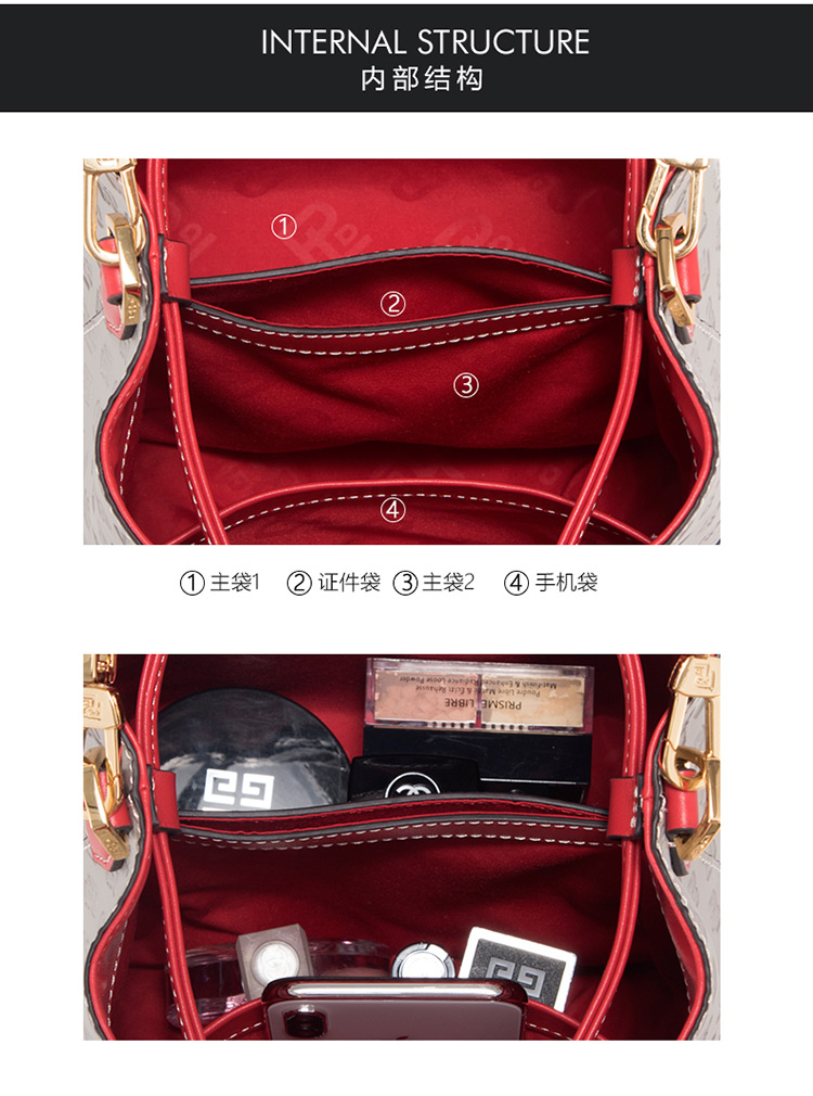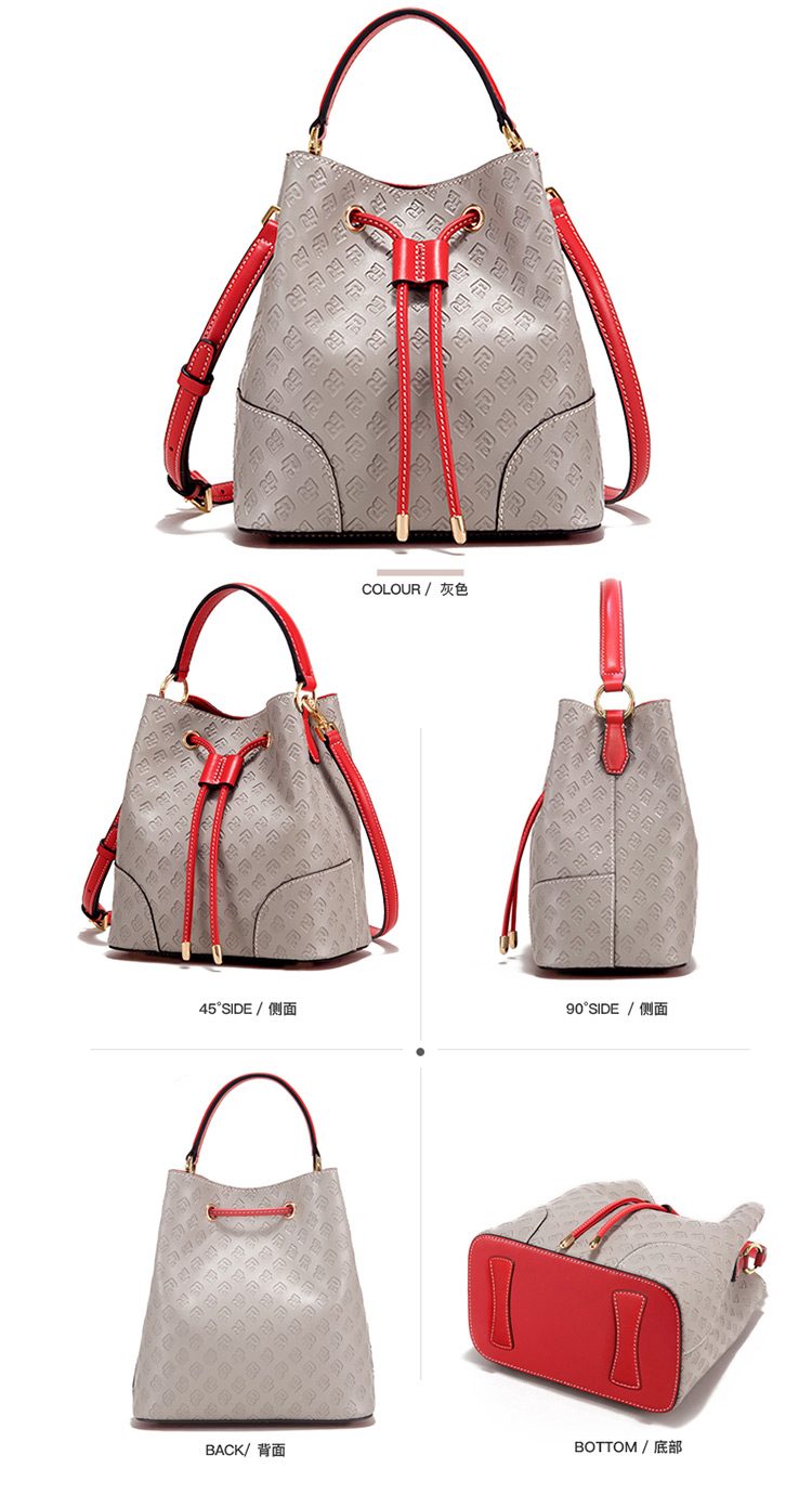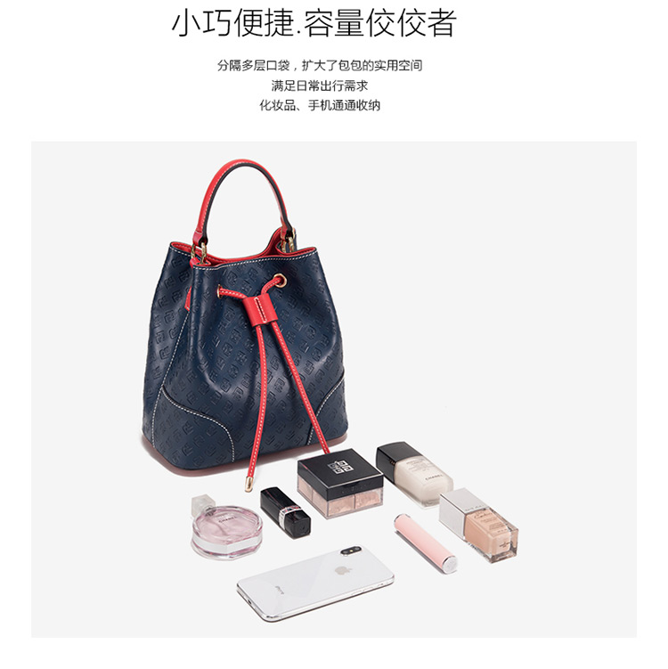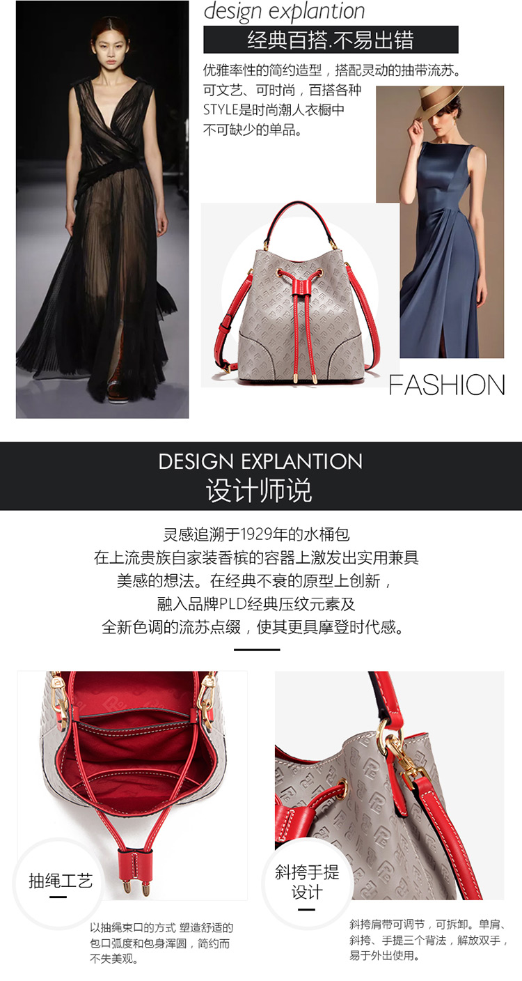 保兰德PLD东方雅奢新款45度老花压纹头层牛皮水桶包通勤必备女包