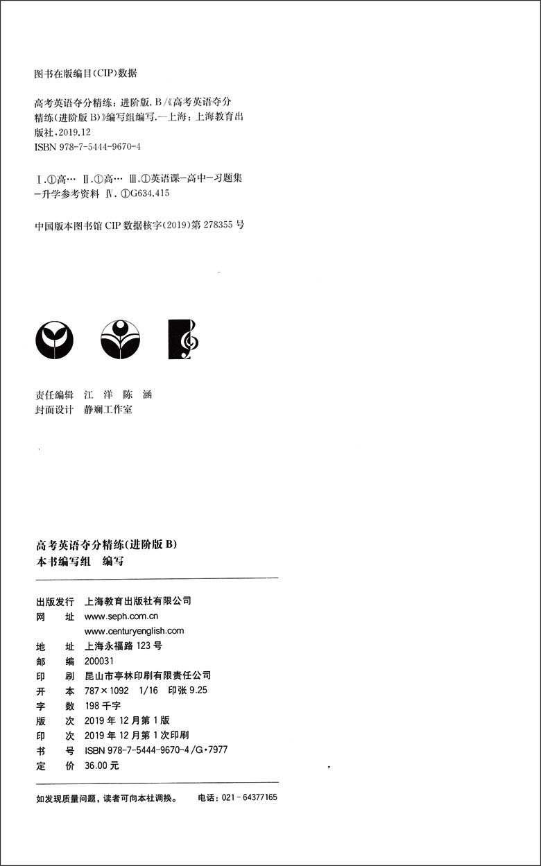 高考英语夺分精练 进阶版B 世纪外教名师指导高考英语精练系列 上海高考英语重难点 课外复习辅导训练资料 上海教育出版社