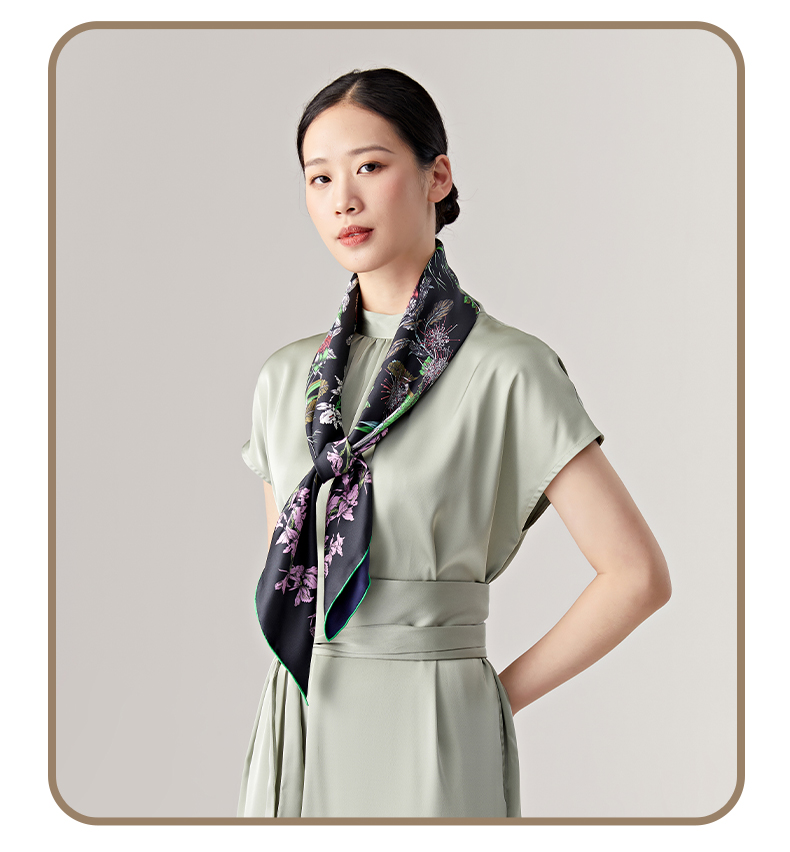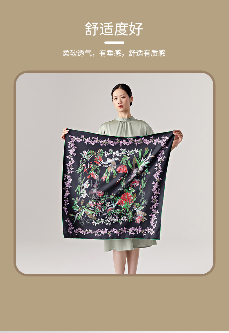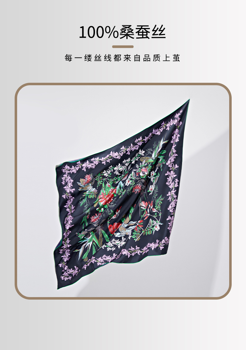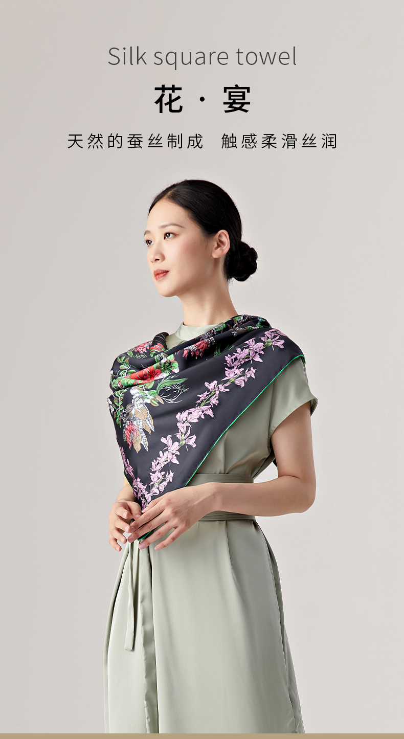 SAINTJOY/上久楷真丝方巾 双面印花真丝方巾 花宴 FJS23014