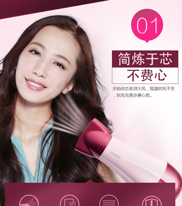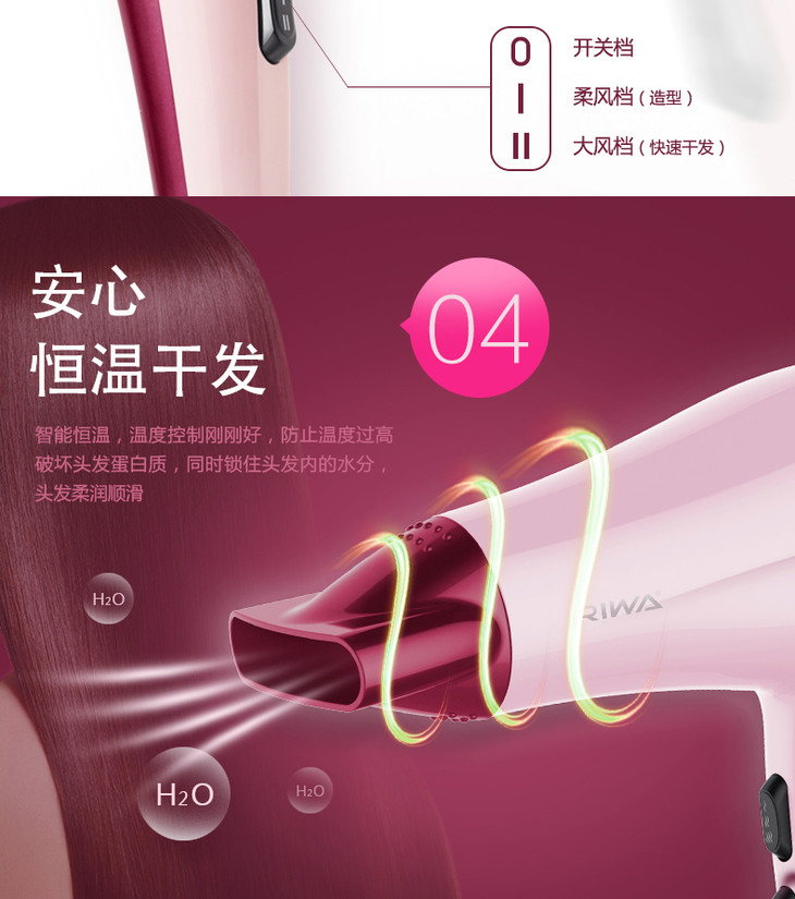 雷瓦(Riwa)电吹风2000W家用大功率吹风机速干恒温 造型风筒 RC-7133 商品图4