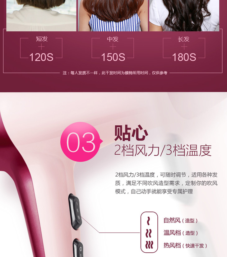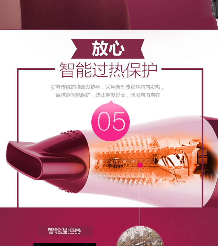 雷瓦(Riwa)电吹风2000W家用大功率吹风机速干恒温 造型风筒 RC-7133 商品图5