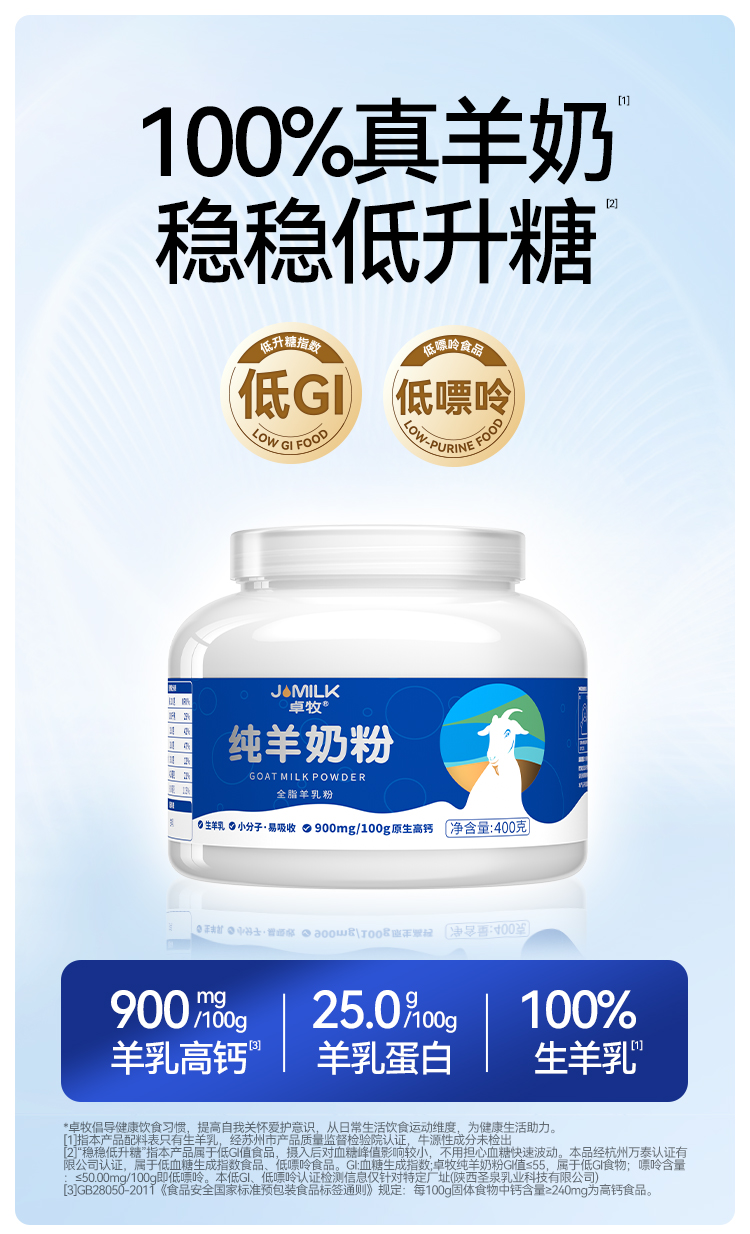 卓牧纯羊奶粉 原生高钙 小分子 易吸收 口感醇香 商品图1