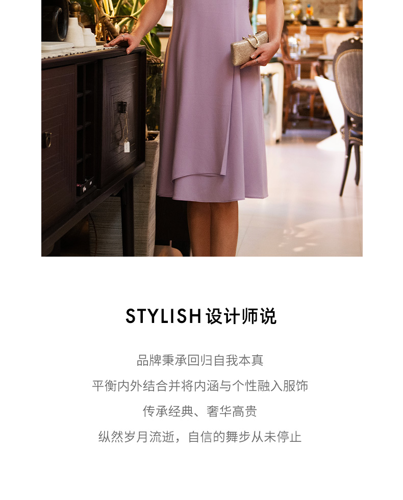 成熟、稳重、高贵典雅、大方得体 融合东方文化的含蓄和法国的浪漫 将创意的艺术性与消费需求相结合 为自信女性塑造高品质场合服装