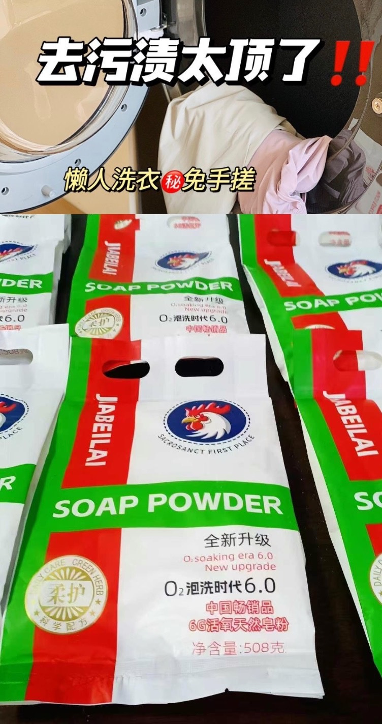 拍一发四包深层洁净衣服上的各种污渍!无磷配方【大公鸡活氧天然皂粉】