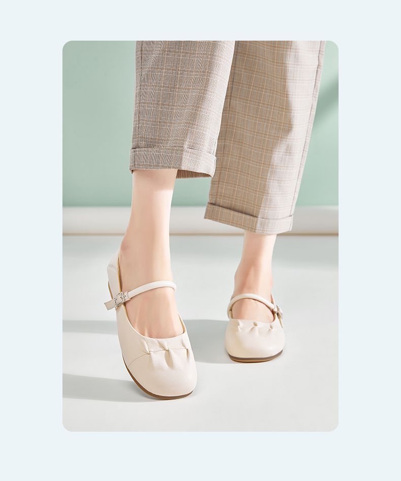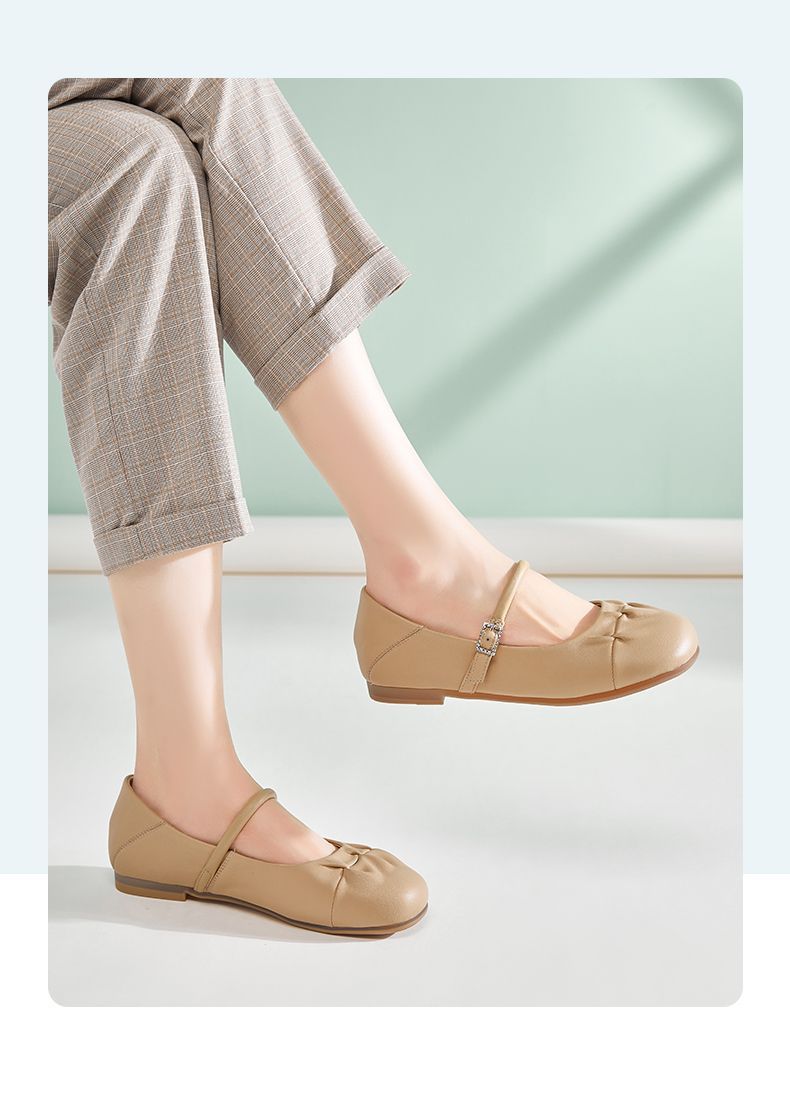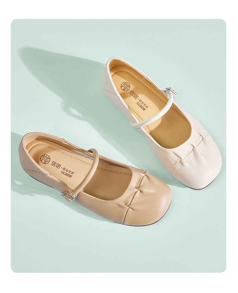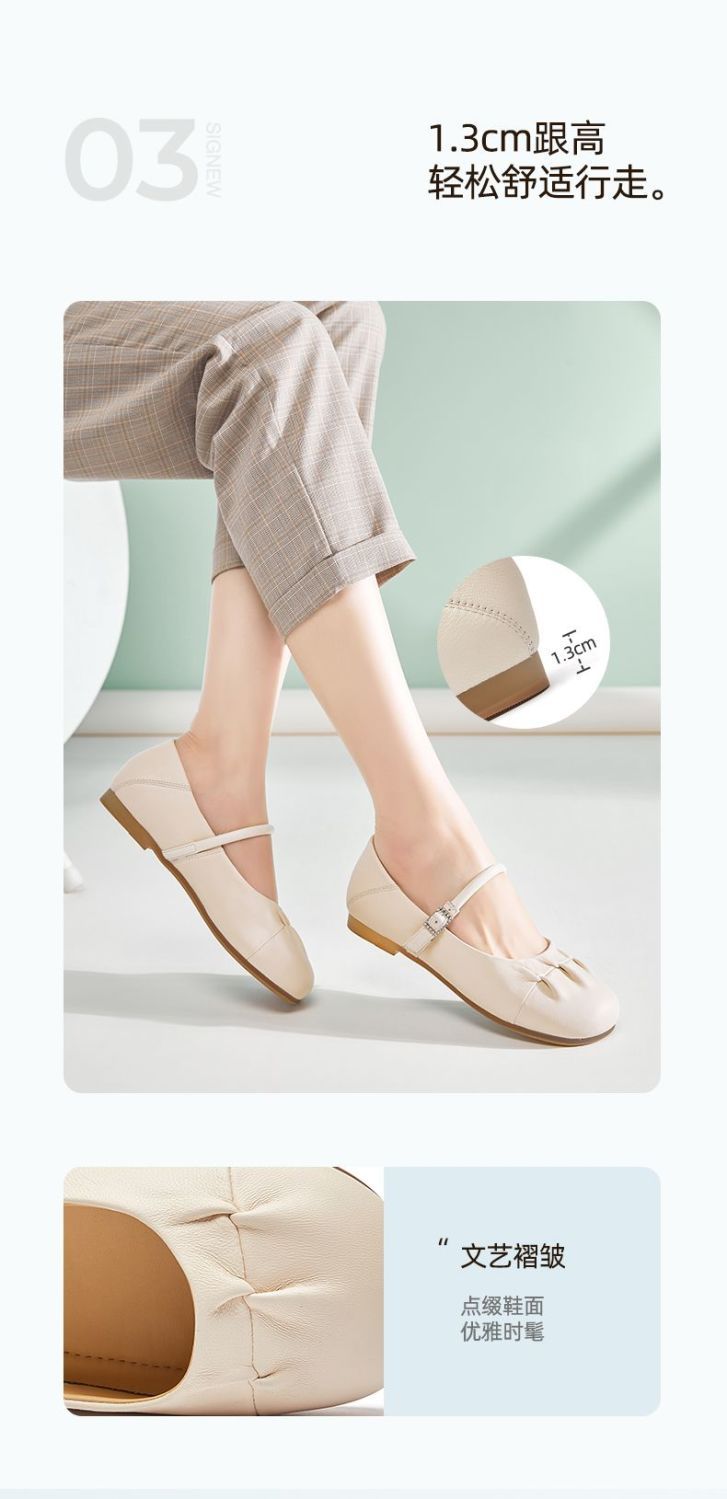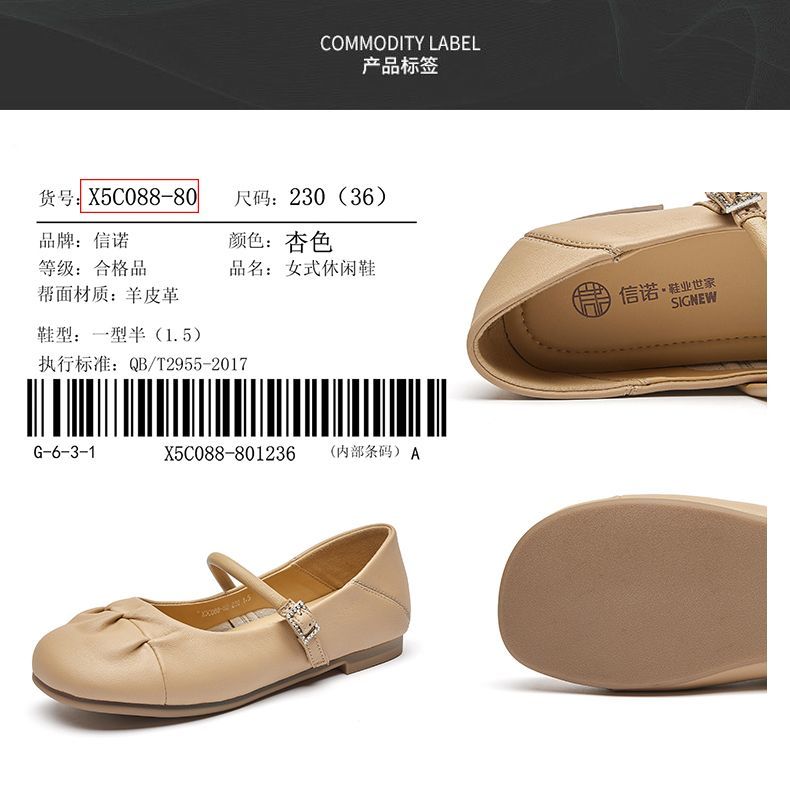 信诺羊皮低跟单鞋女2025新款春夏浅口舒适休闲鞋百搭通勤平底女鞋X5C088-80