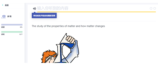 进入私学社专属班级后,学习界面包含了词义、拼写、听力以及测试等多种学习方式,帮助学员对于词汇进行全方面学习。