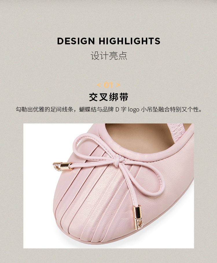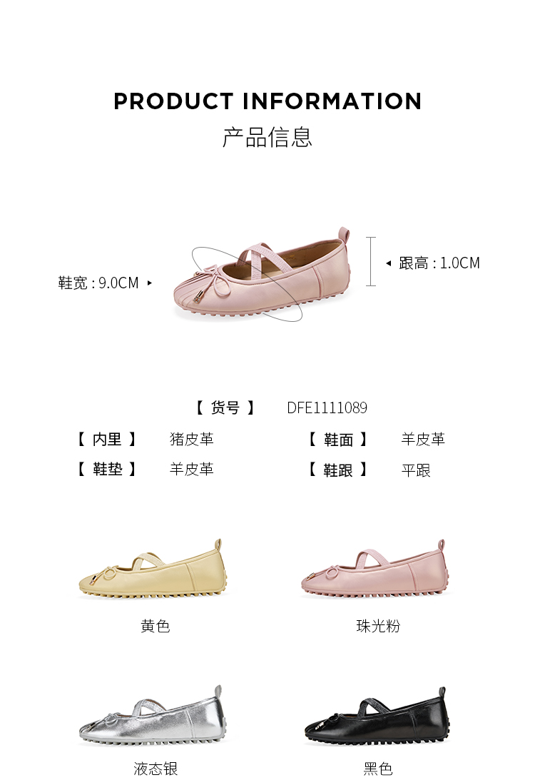 Dfuse迪芙斯2026春季新款圆头蝴蝶交叉带结芭蕾舞鞋豆豆鞋平底女鞋DFE1111089